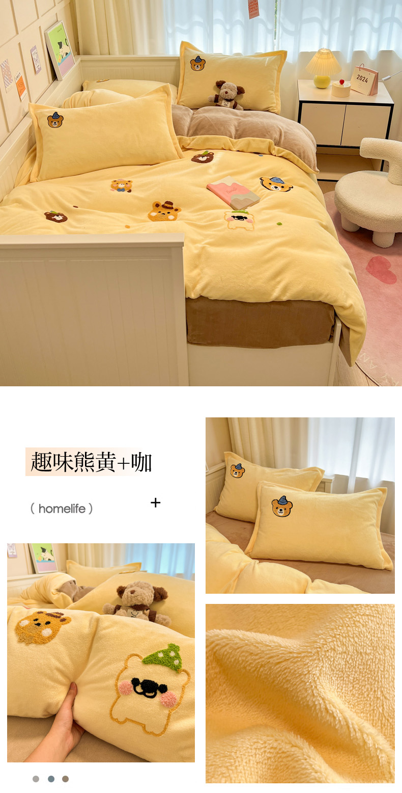 梦澜蒂 2024新款加厚牛奶绒毛巾绣四件套