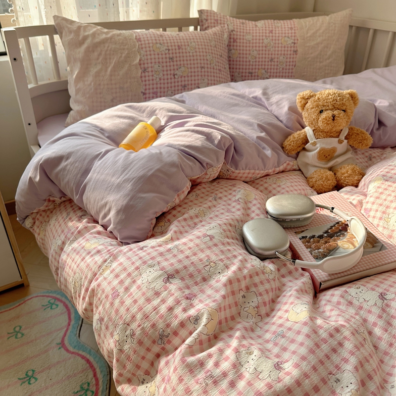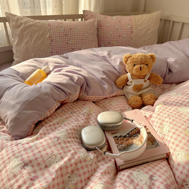 (总)顾里家纺 2026春夏新款ins韩风印花贝壳针双层纱四件套,啵啵蝴蝶结,啵啵猫咪,彩色啵啵,粉米兔,浆果梦,蓝条爱心,曲奇小熊,碎花兔熊,雾屿动物,小南瓜,星月童话,雪瑞纳仔,樱桃蝴蝶结,芋泥腊肠狗,栀夏小兔,治愈动物,治愈星星
