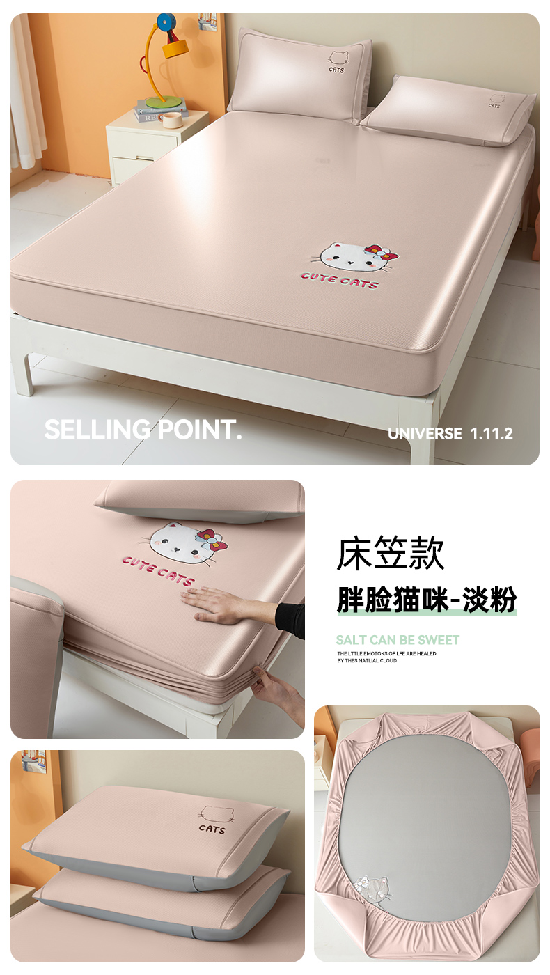 当前位置: 91家纺网 > 商品网购 > 床上用品 > 凉席 > 冰丝席 > 全季家居 2025新款5A抗菌碳光卡通贴布系列冰丝席 床笠款-胖脸猫咪-淡粉