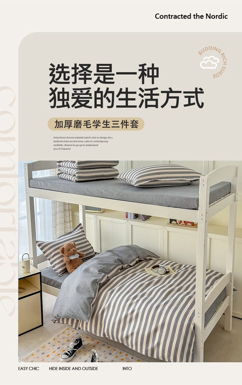 当前位置: 91家纺网 > 商品网购 > 床品套件 > 三件套 > 鑫宇 2025新款磨毛130g加厚学生宿舍三件套床单床笠款学生上下铺六件套 维恩