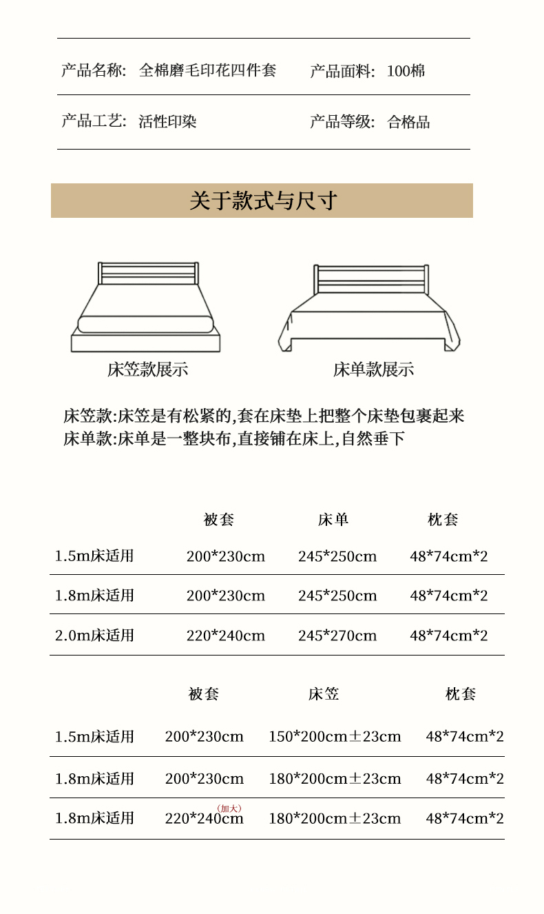 【床笠款】1.8四件套-被套200x230 | ¥155.00 |