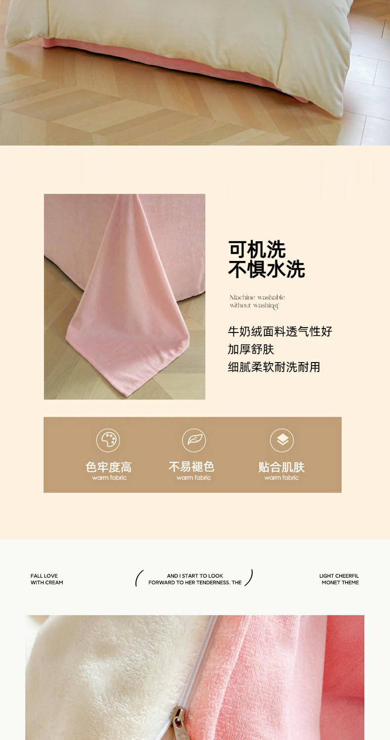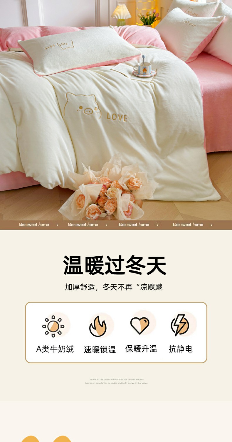 (总)梦恬佳 2025新款亲肤舒适牛奶绒刺绣四件套,杏+米咖,豆沙+太空灰,高级灰,高级灰+杏色,奶白+新芽绿,奶白+樱花粉