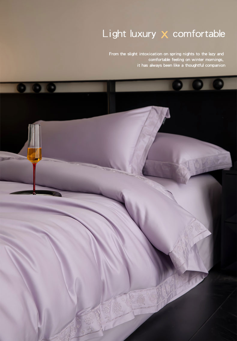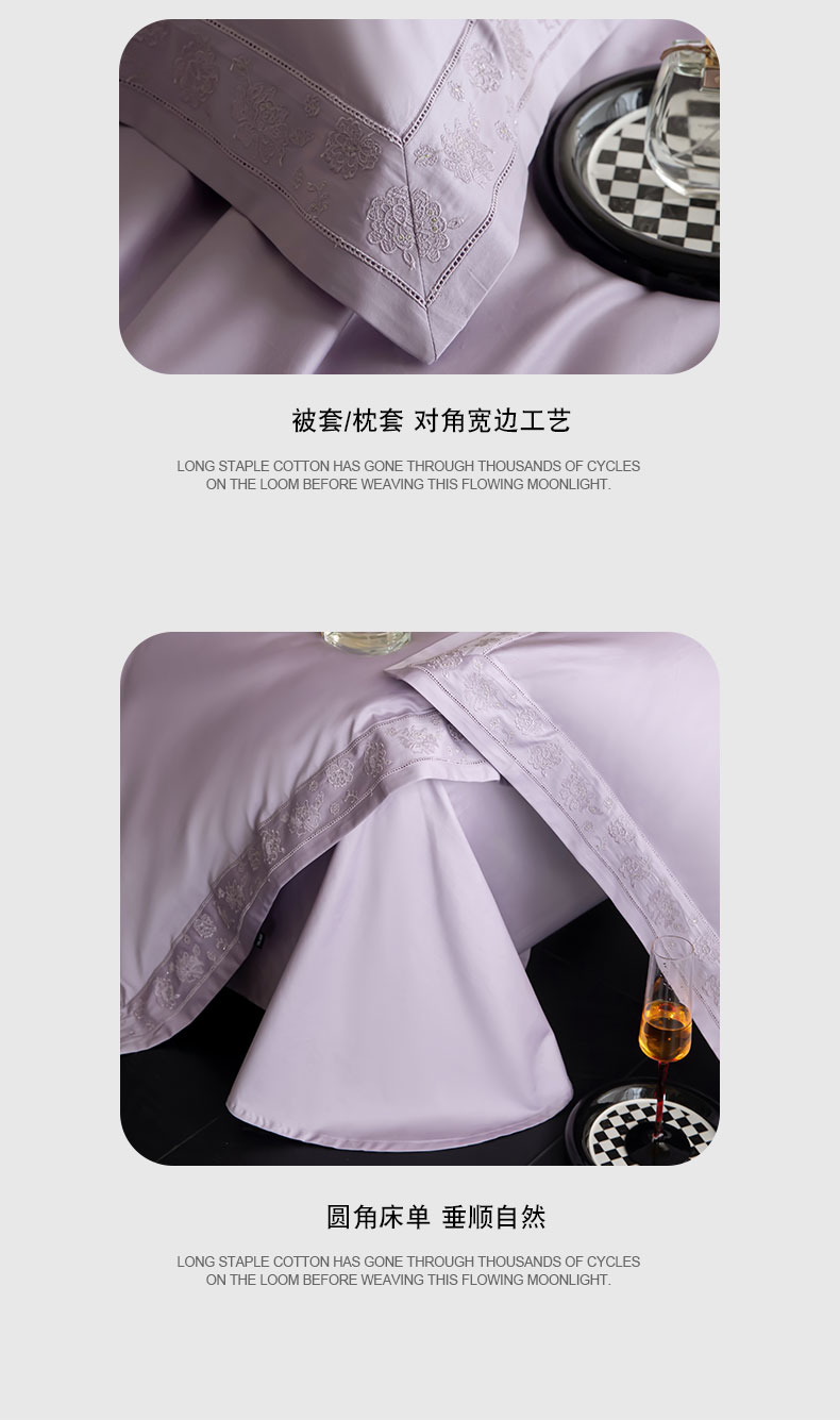 安妮家居 2025新款全棉纯棉100%丝光喷气13376镂空刺绣四件套-海瑟薇 海瑟薇-紫