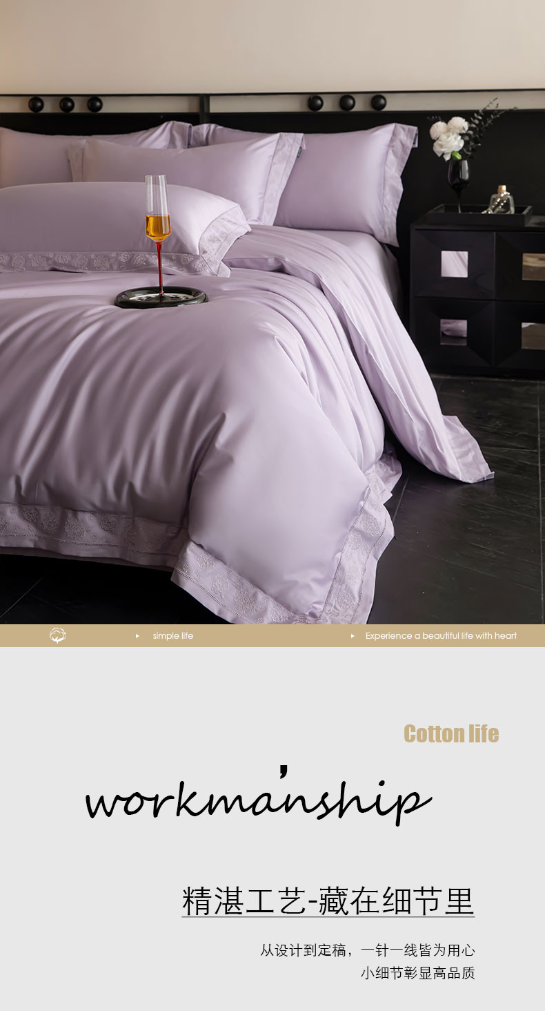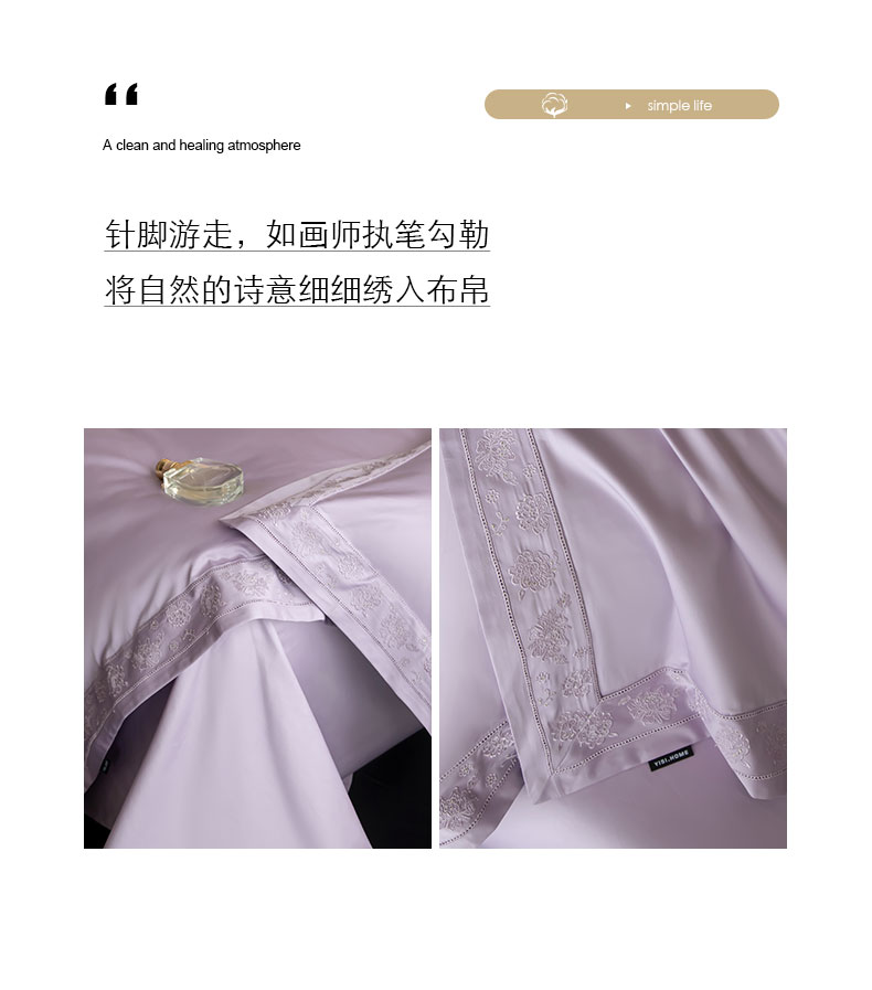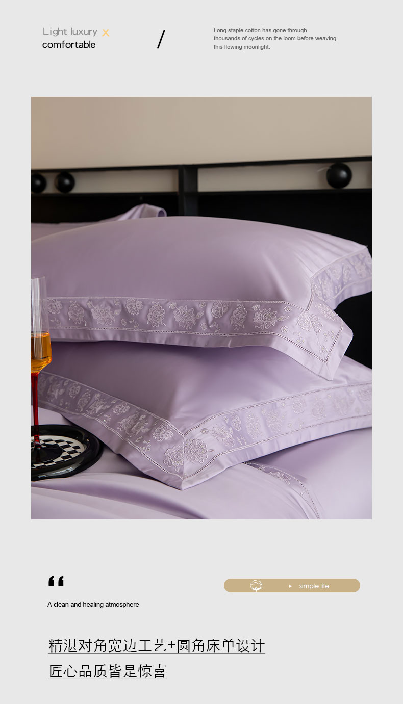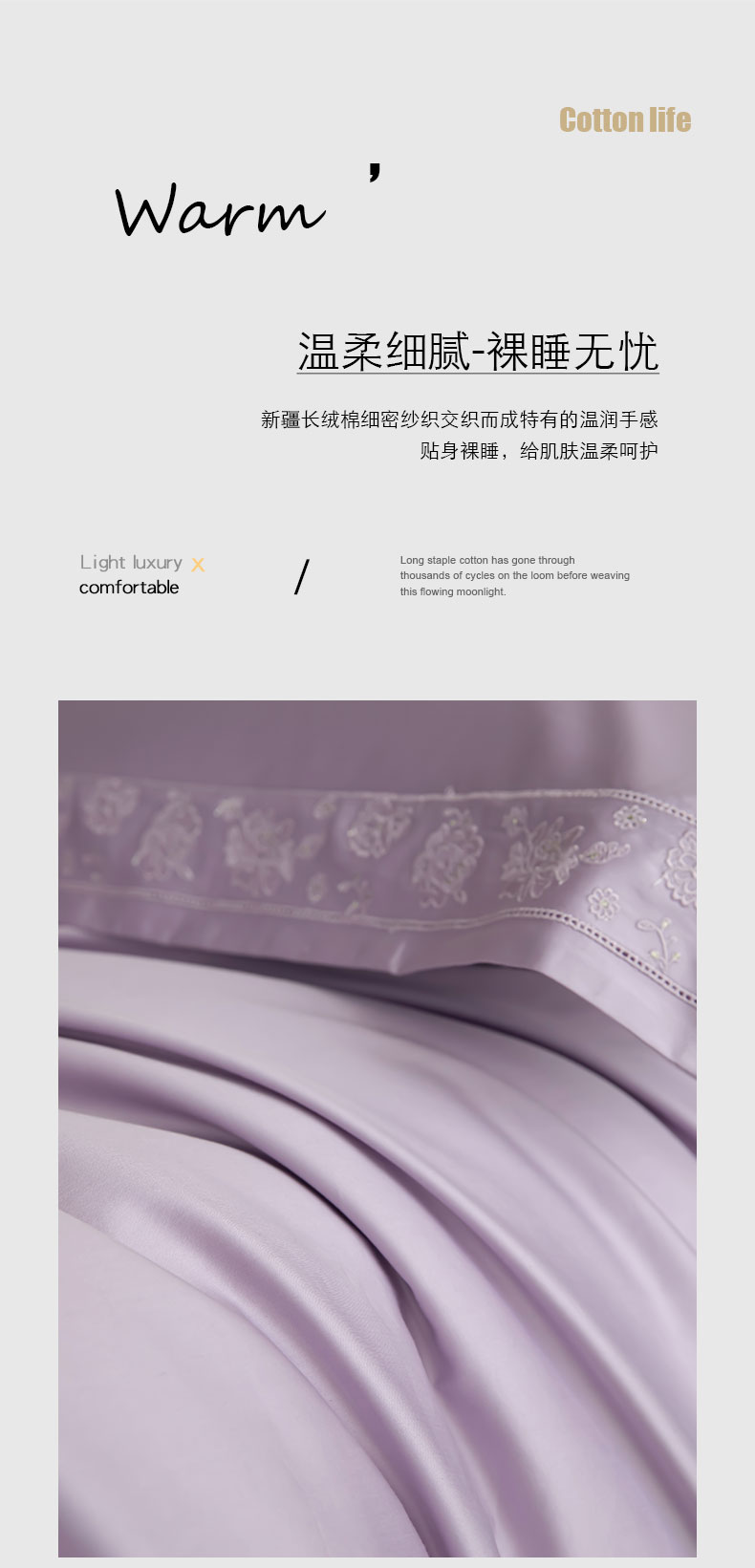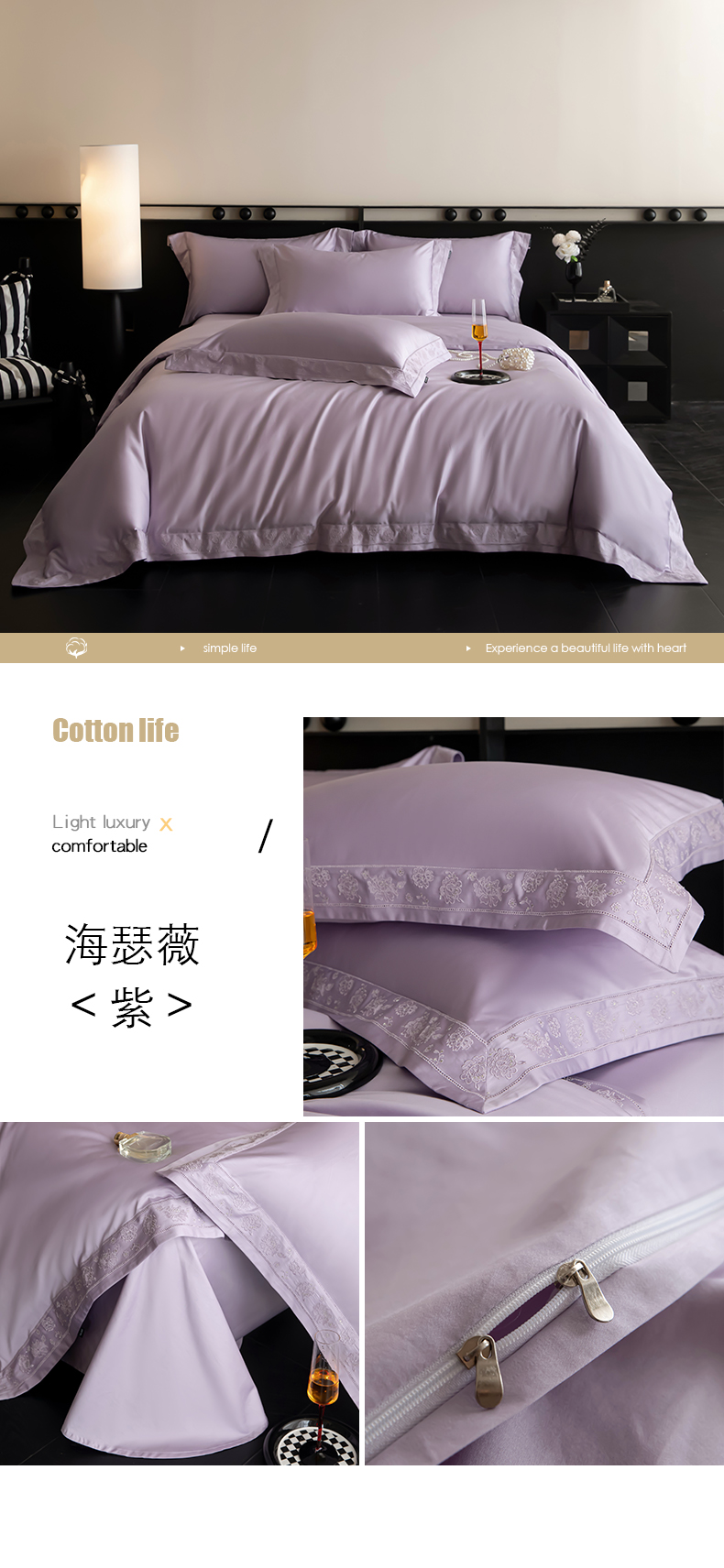 商品名称:安妮家居 2025新款全棉纯棉100%丝光喷气13376镂空刺绣四件套-海瑟薇 海瑟薇-紫
