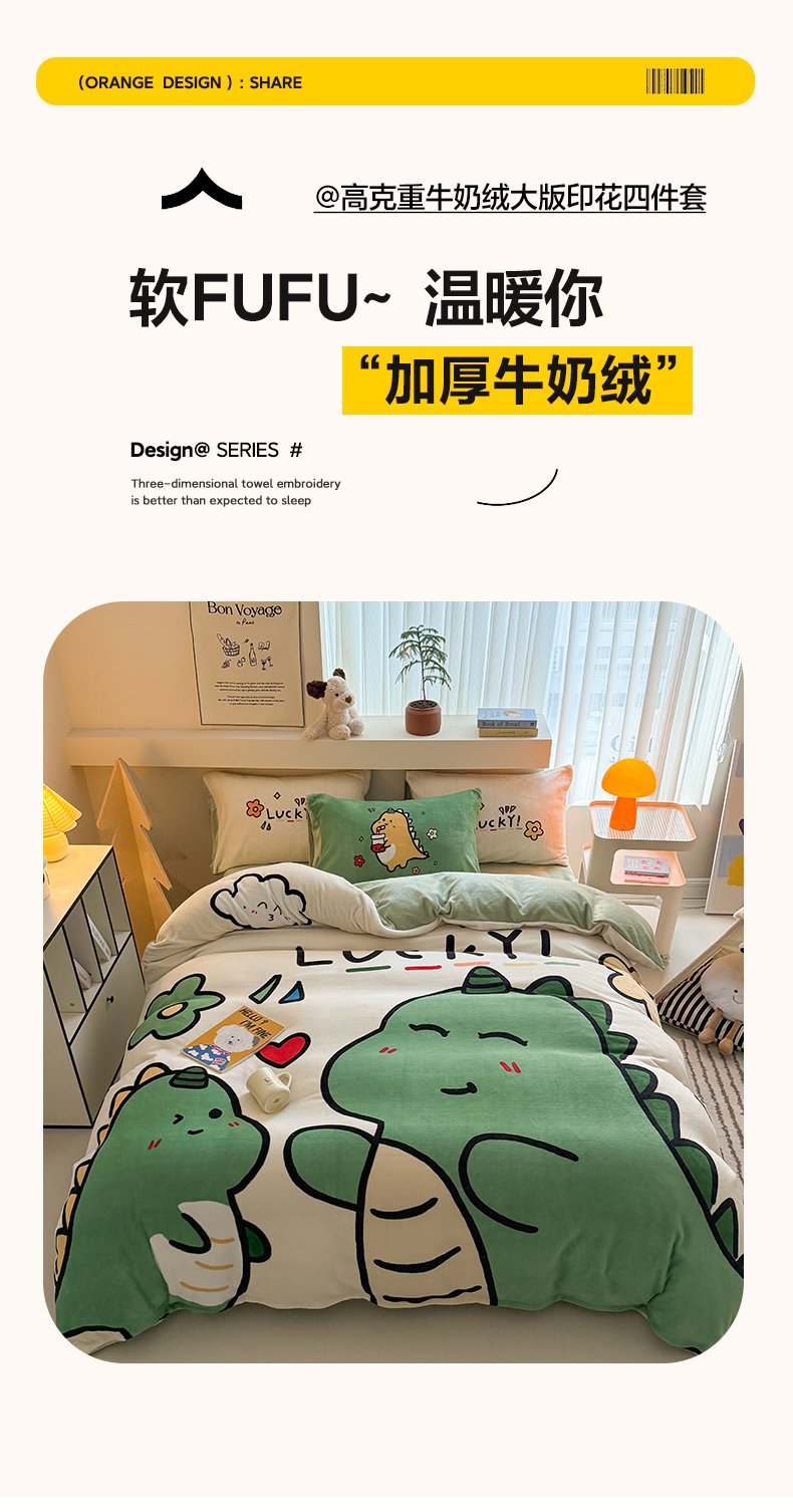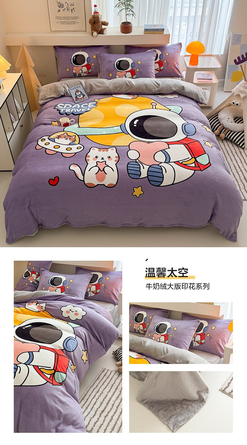 潮邦创意家居 2025新款大版卡通牛奶绒四件套 温馨太空