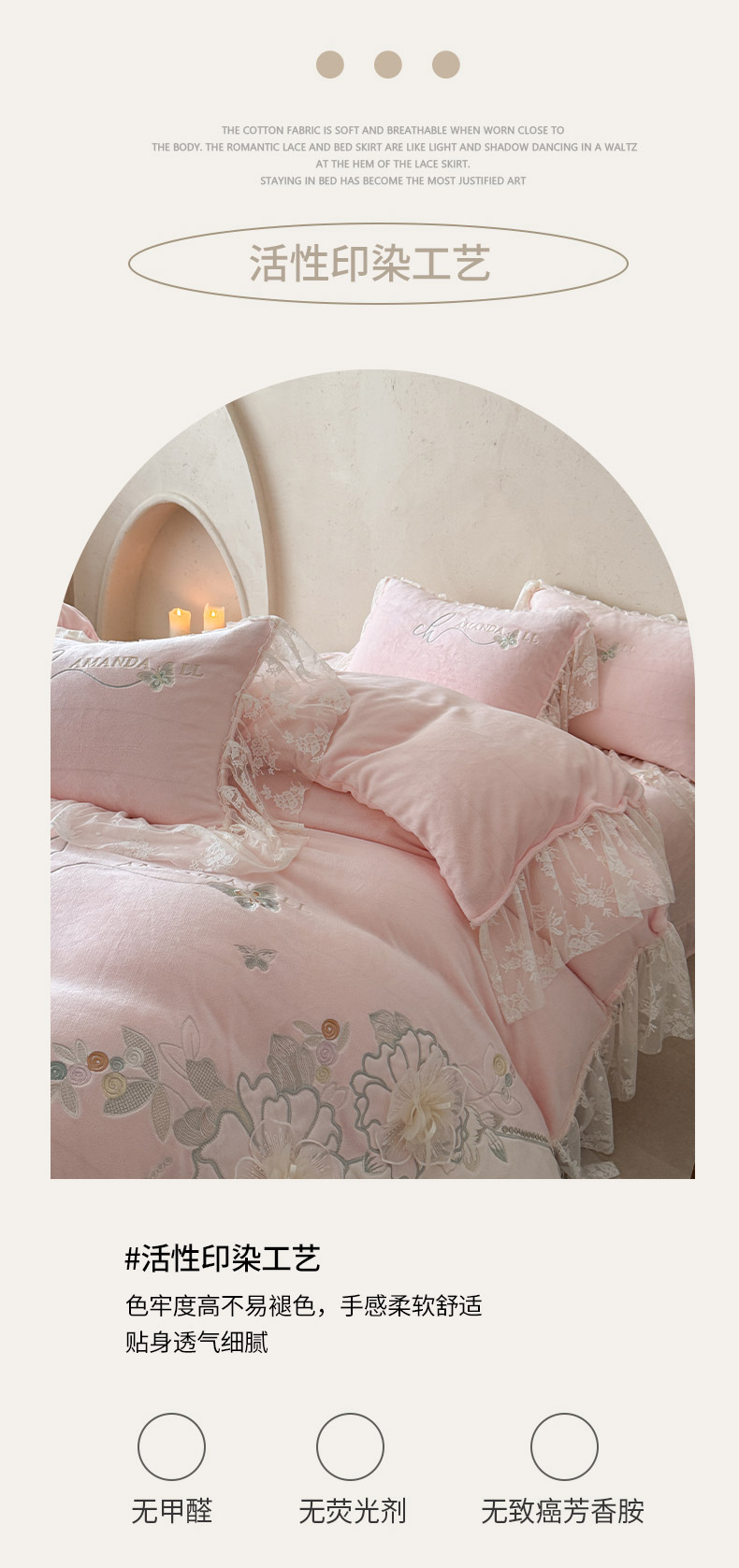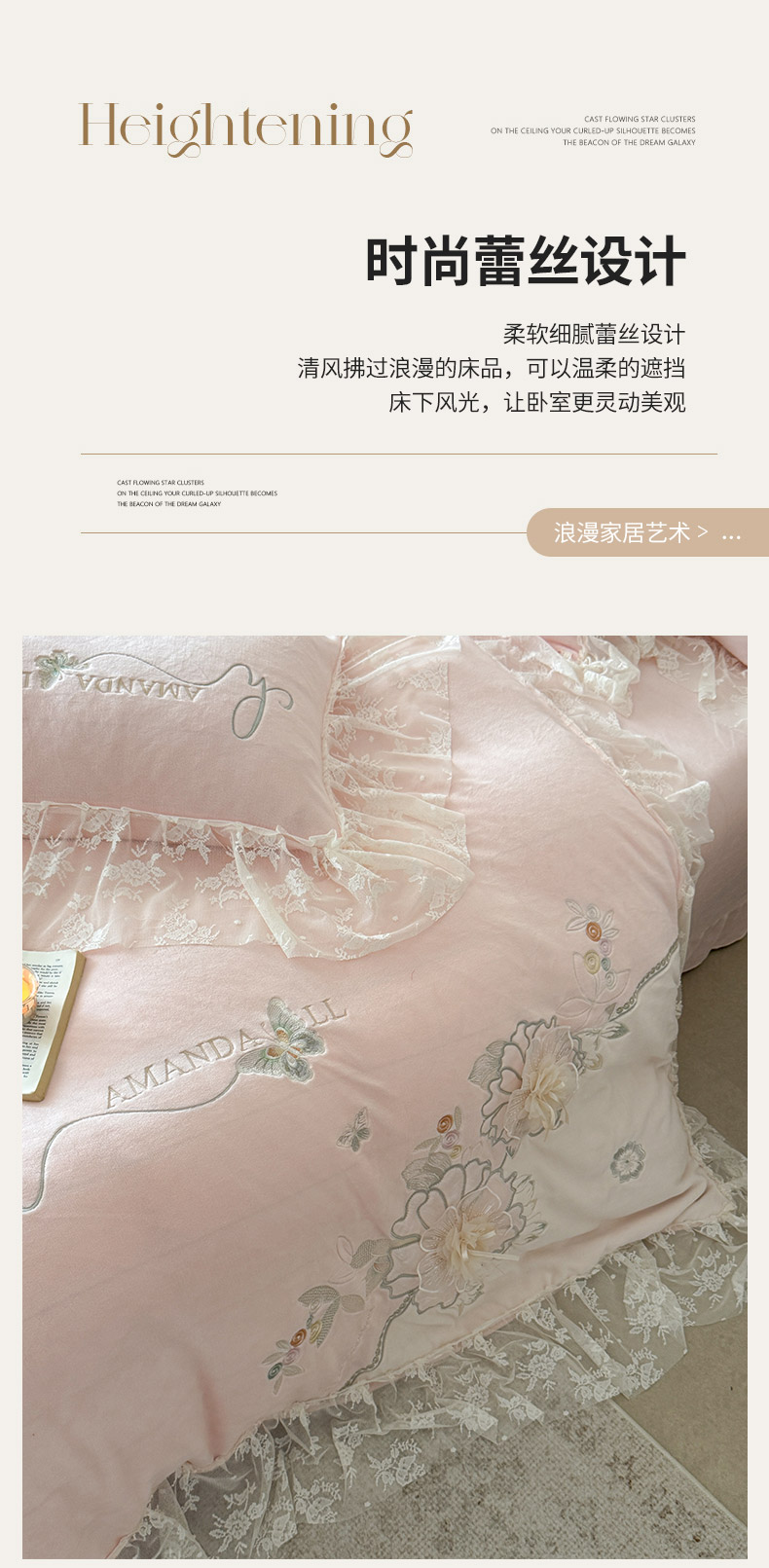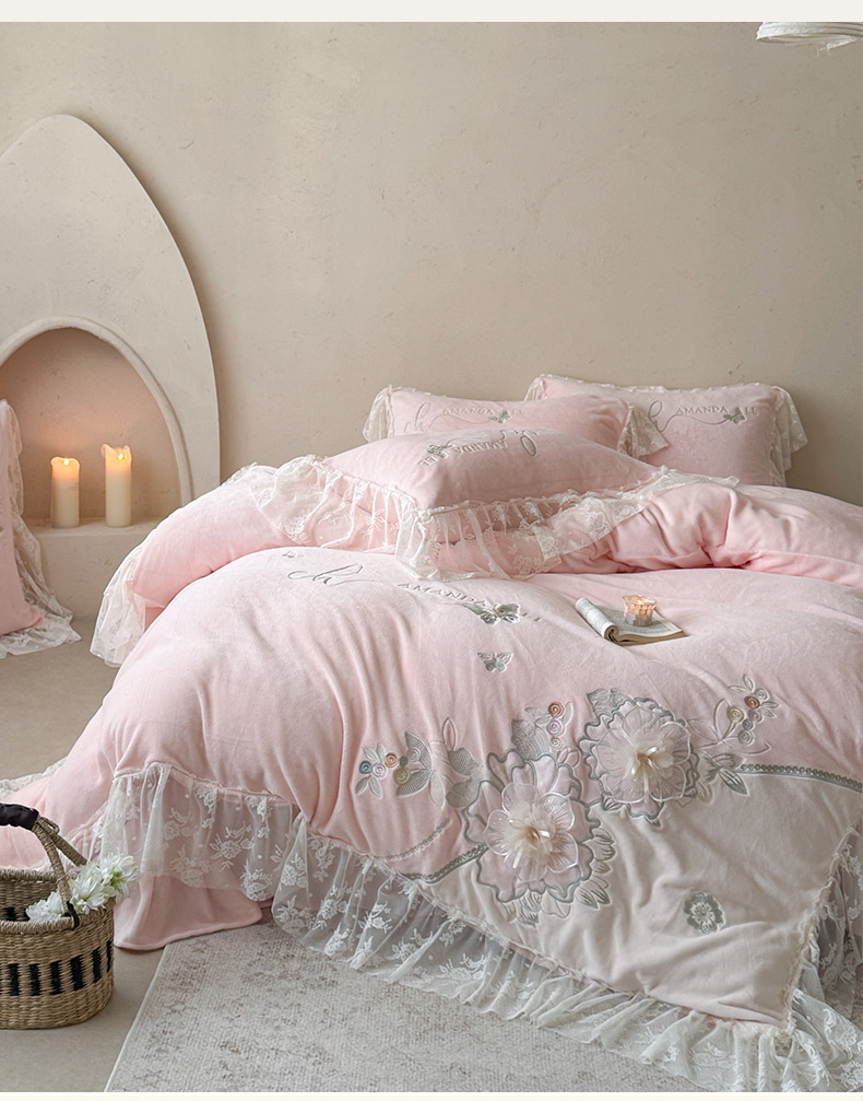 (总)可以家居 2025新款澳棉韩版绣花花边款四件套-小甜心,小甜心-公主粉,小甜心-奶油黄