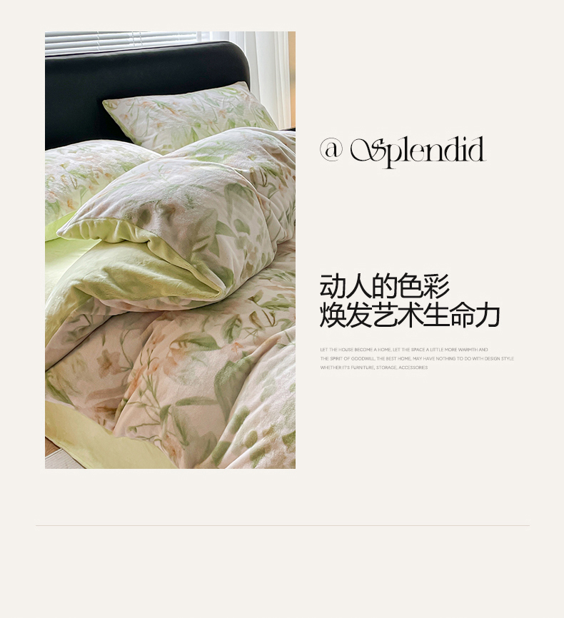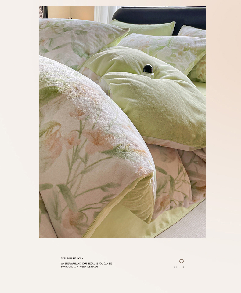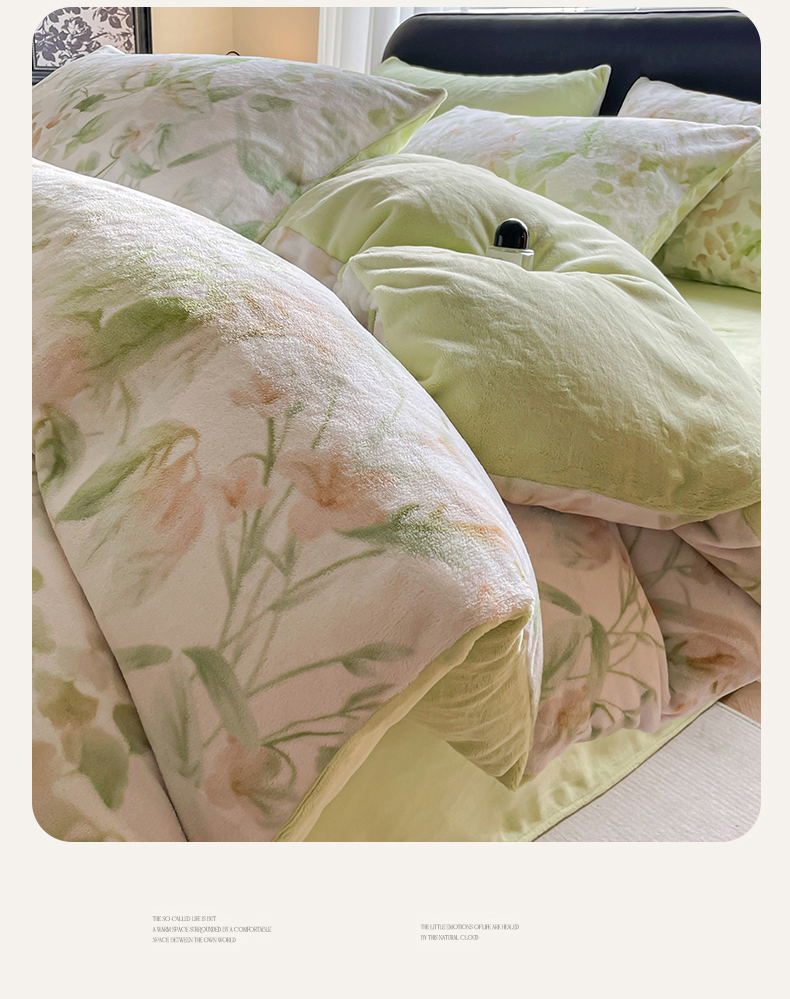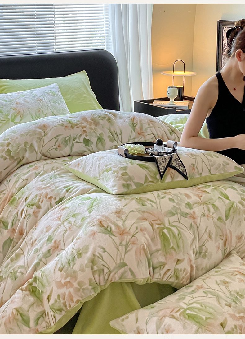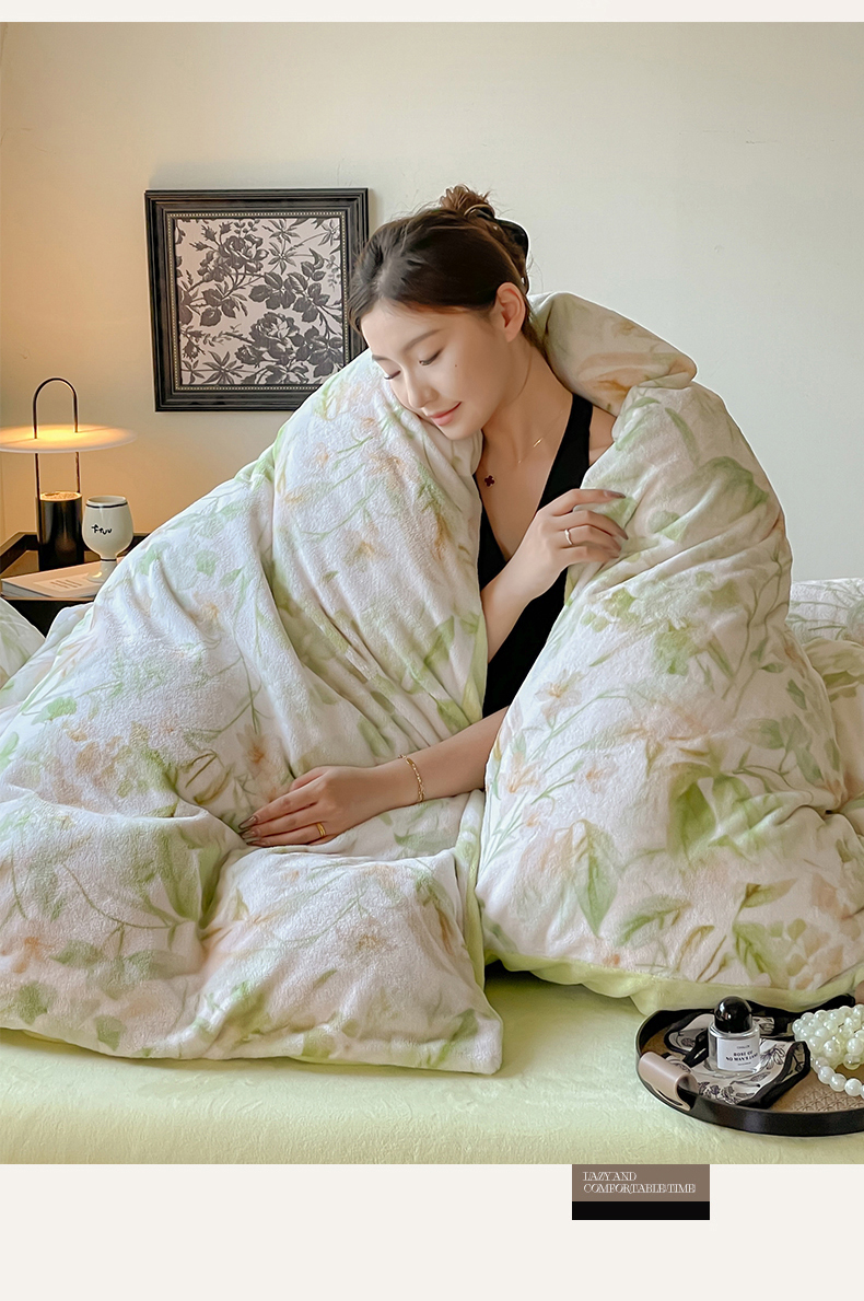 商品名称:本制 2025秋冬新款牛奶绒印花四件套 秘境(绿)-桉树绿
