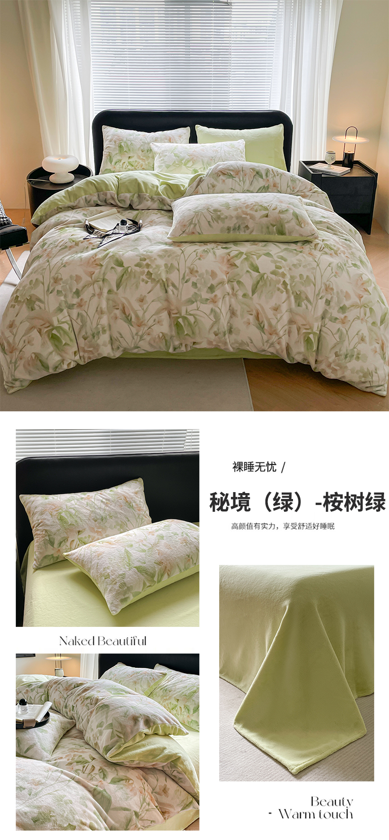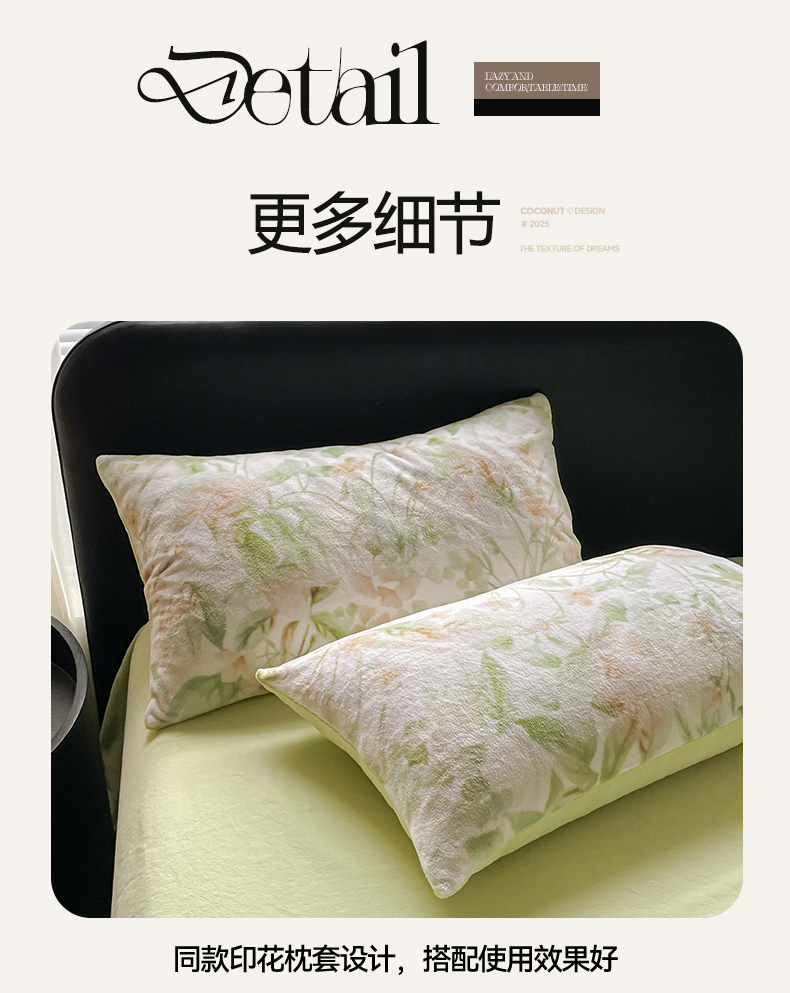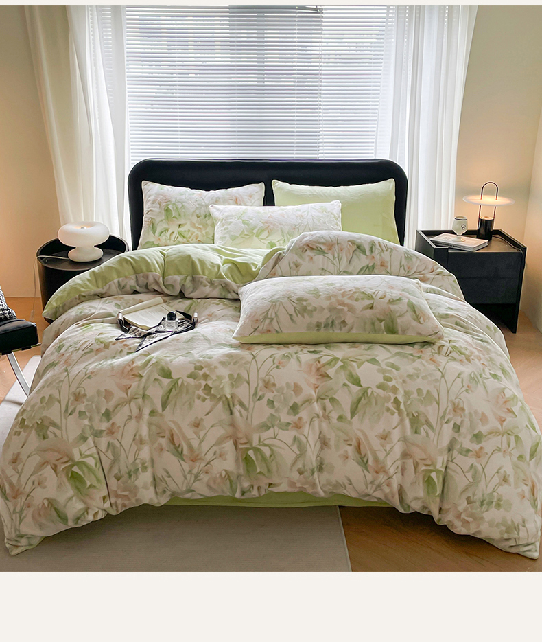本制 2025秋冬新款牛奶绒印花四件套 秘境(绿)-桉树绿