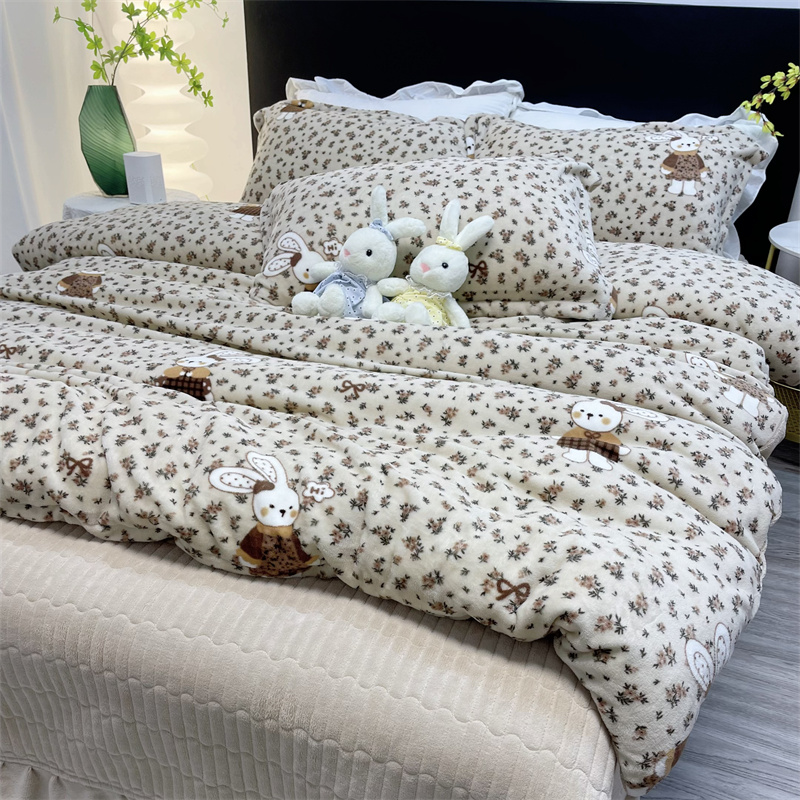 富缦庭 2024新款直播爆款小清新印花牛奶绒床盖四件套 萌萌兔
