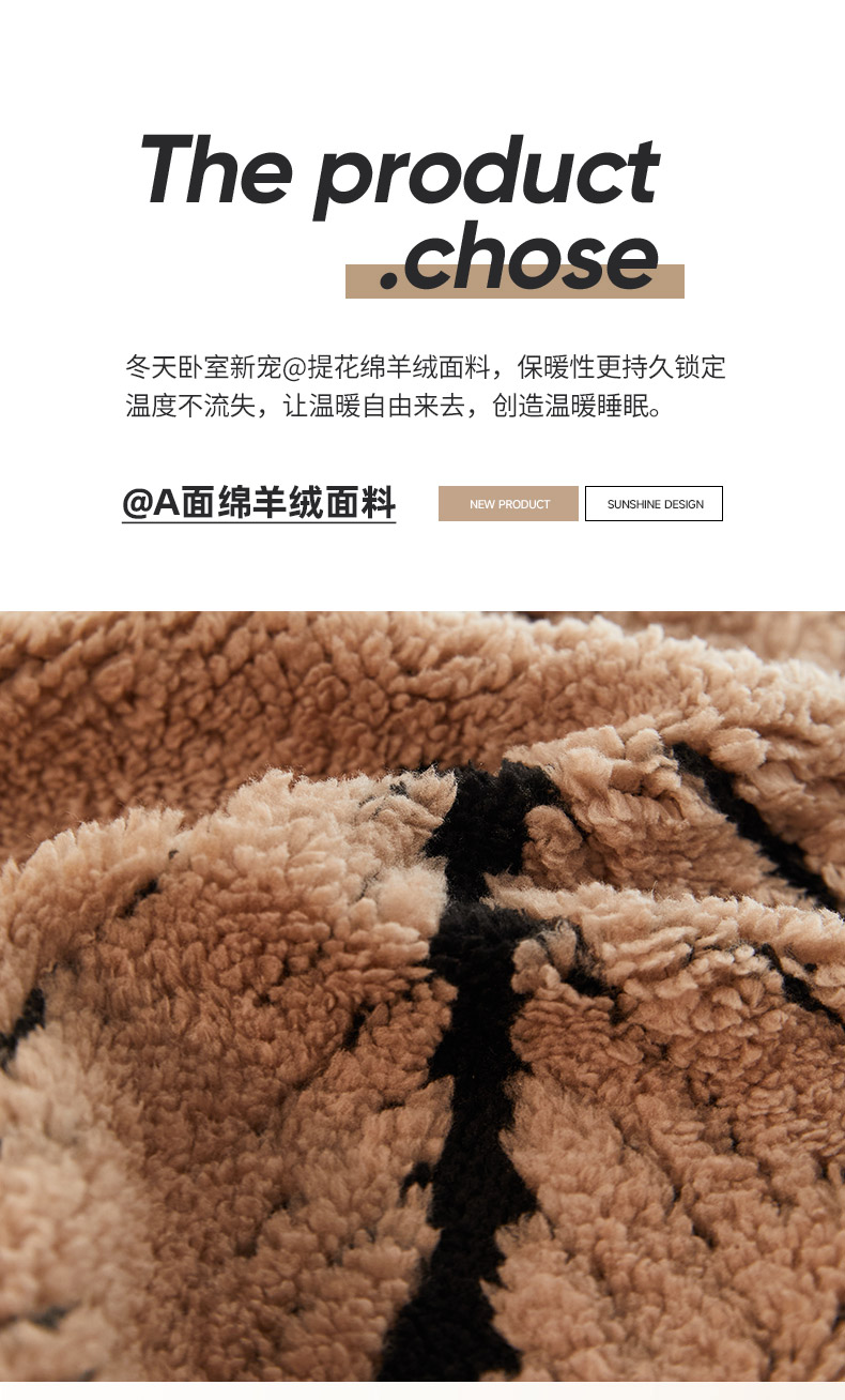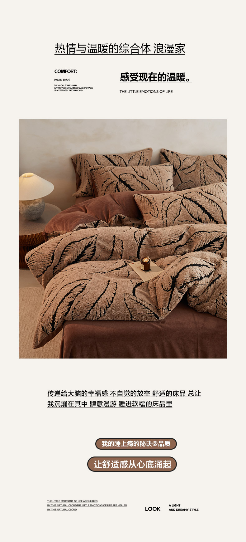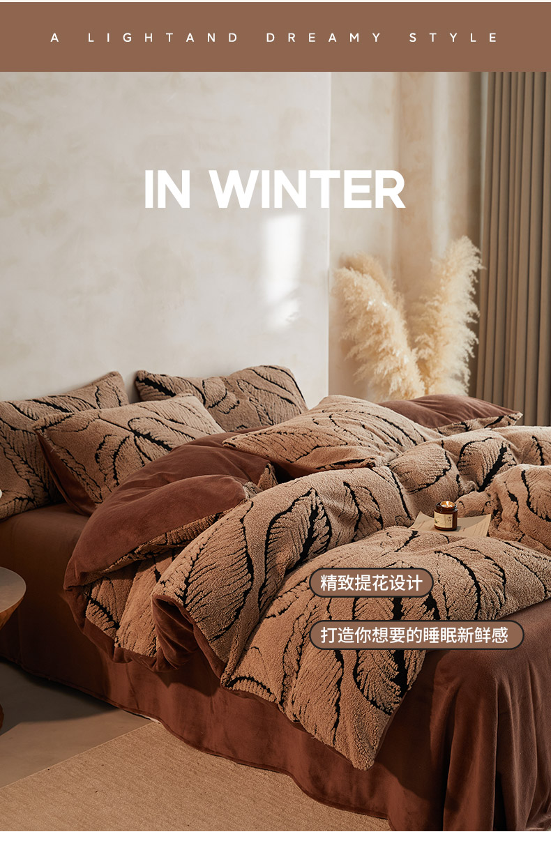 商品名称:吾秀家居 2025新款牛奶绒提花绵羊绒四件套-羊绒系列 树叶咖