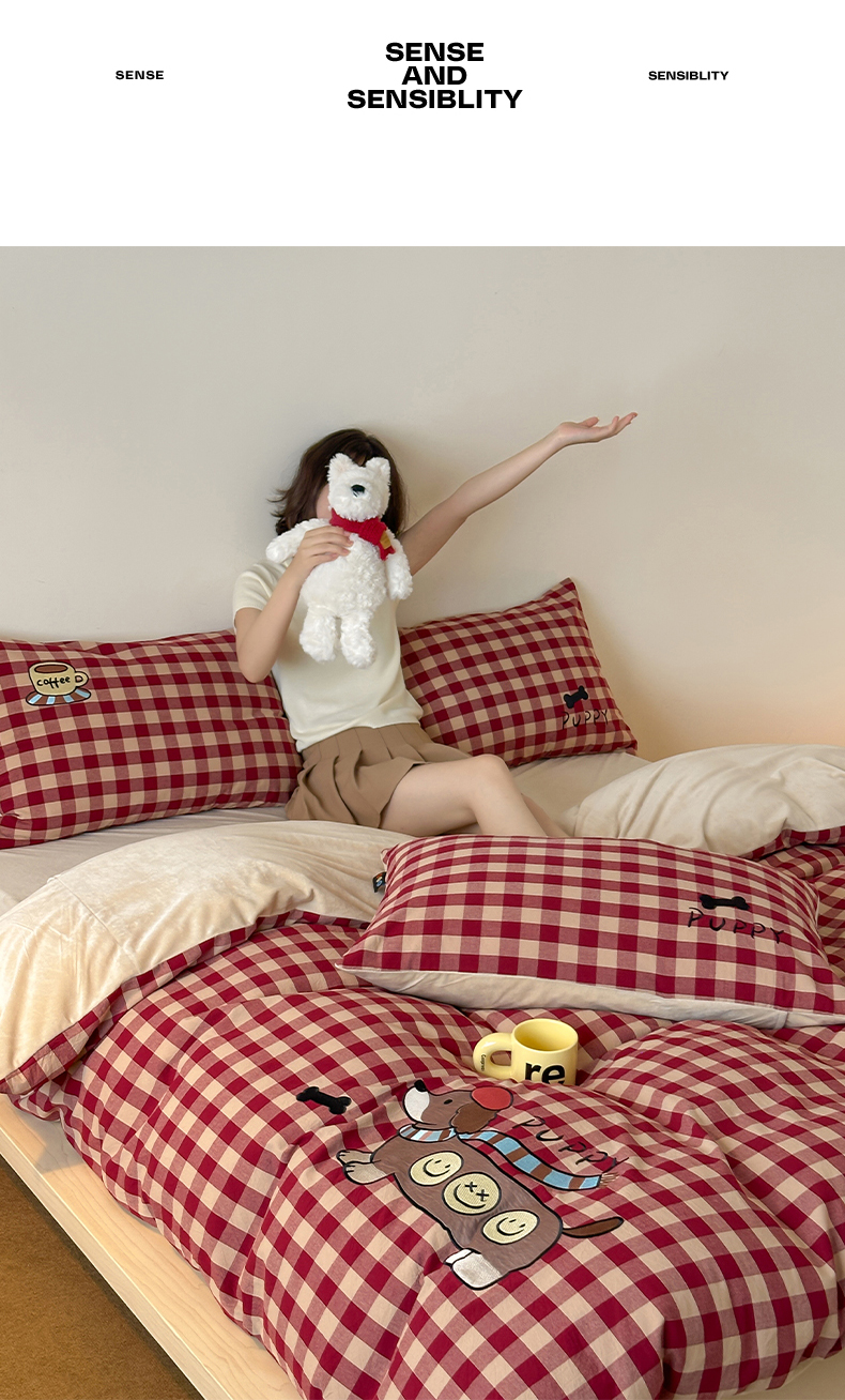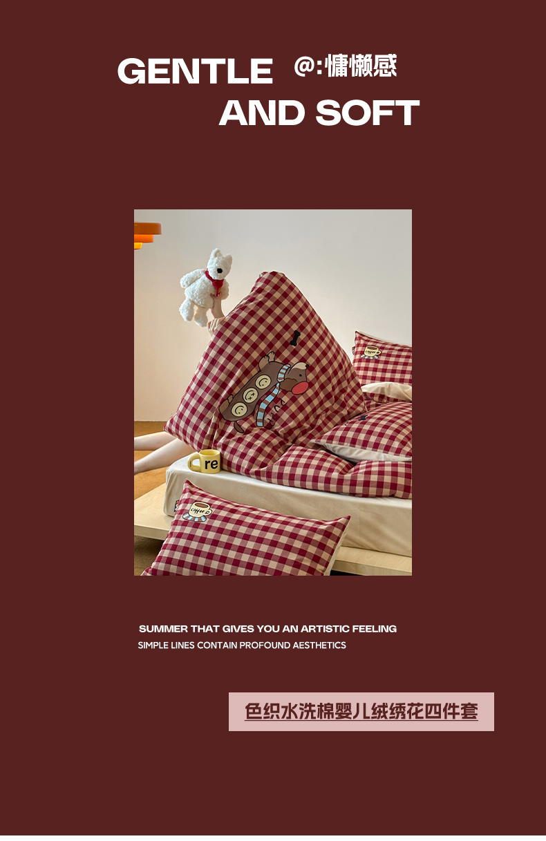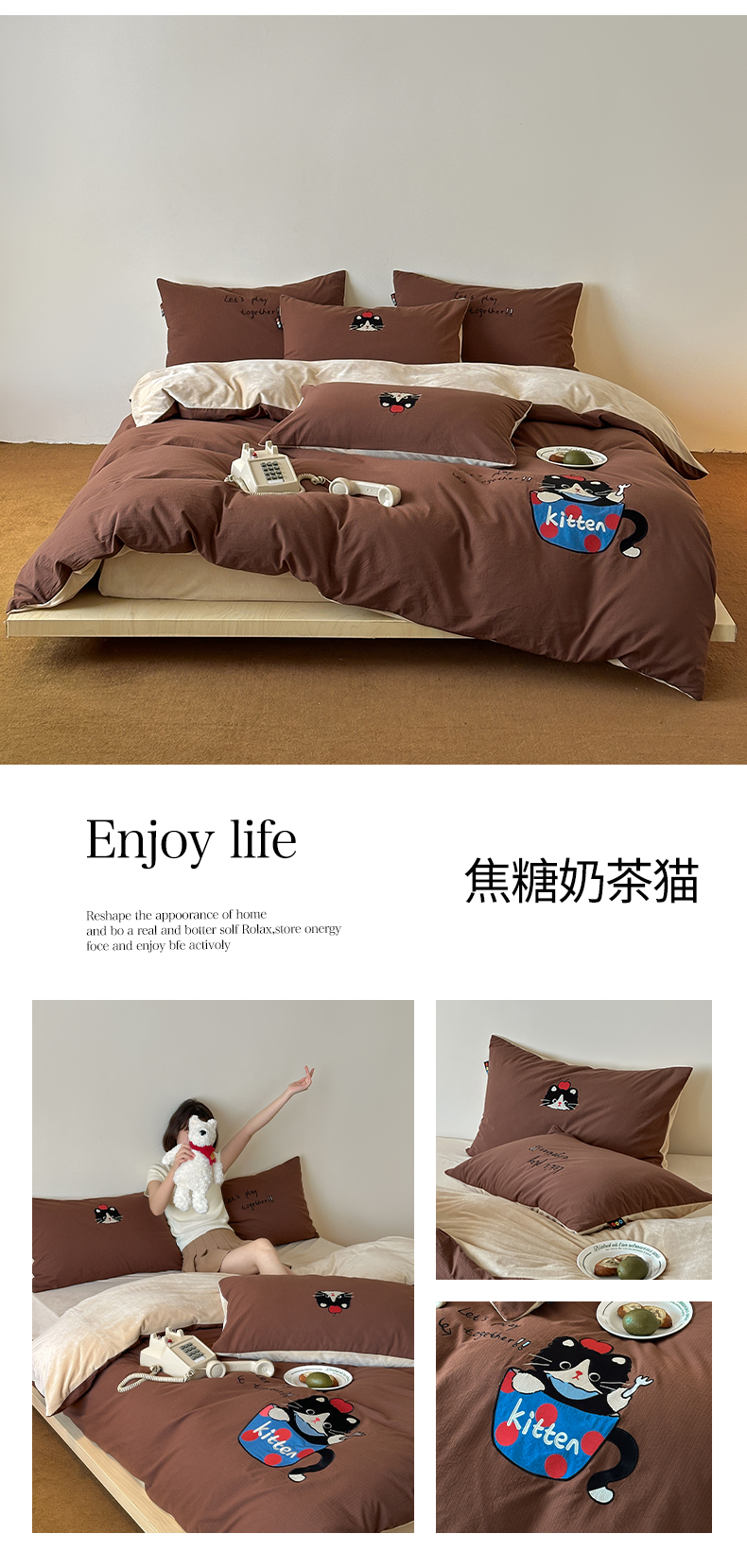 当前位置: 91家纺网 > 商品网购 > 床品套件 > 四件套 > 水洗棉四件套 > RYB红黄兰 2025新款设计师原创A面全棉色织水洗棉+B面婴儿绒贴布绣四件套 墨绿奶茶猫