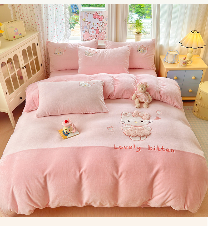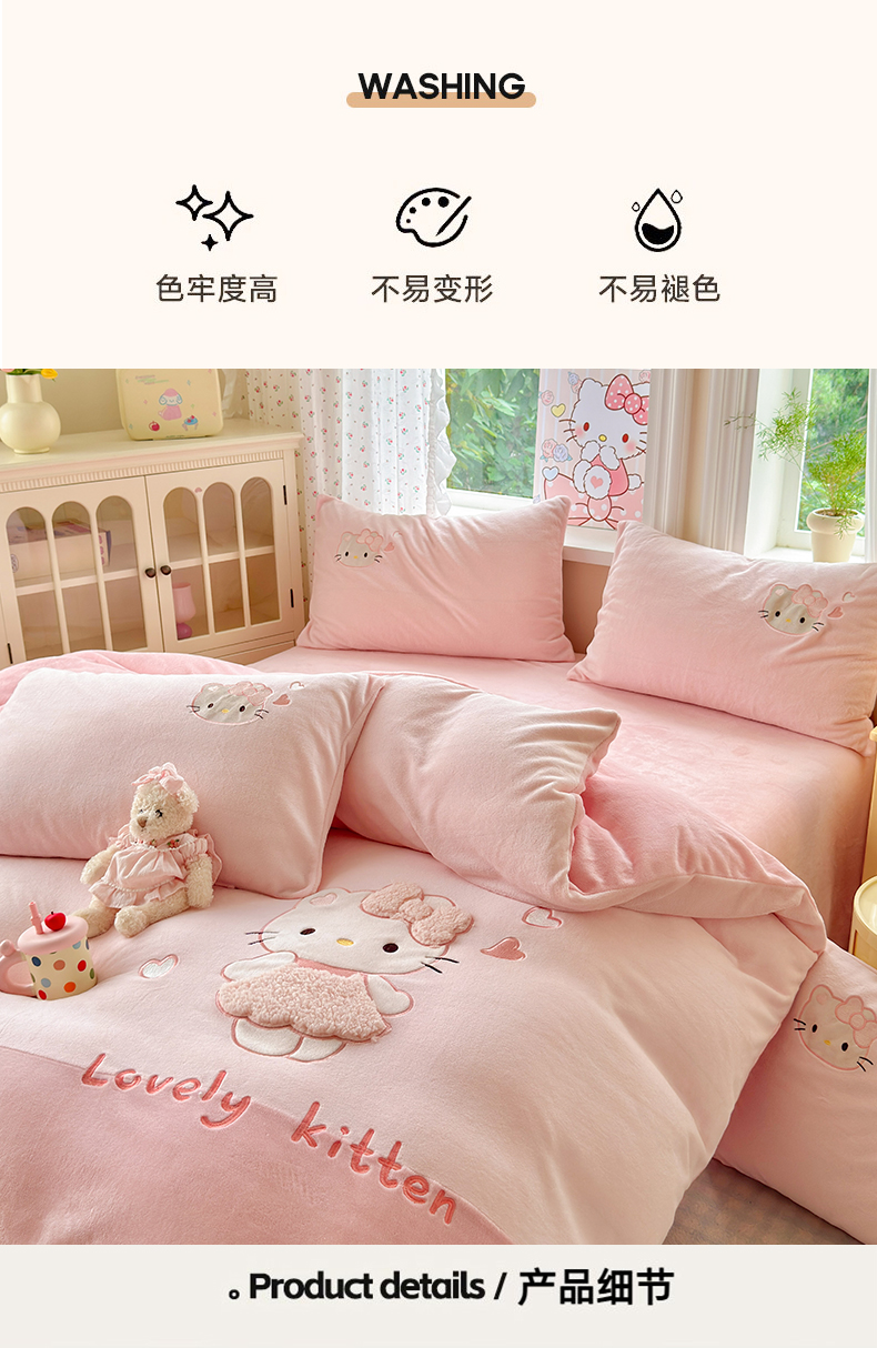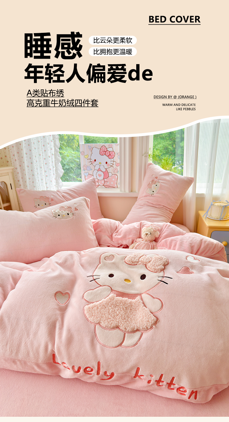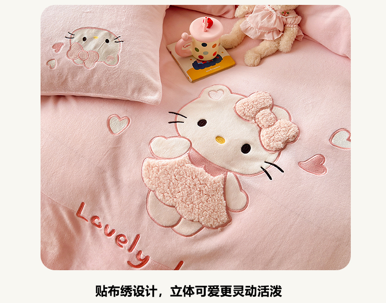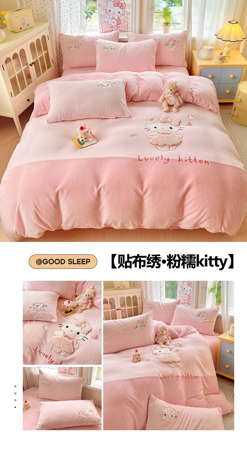 商品名称:卡诗兰 2025新款贴布绣牛奶绒四件套 粉糯kitty