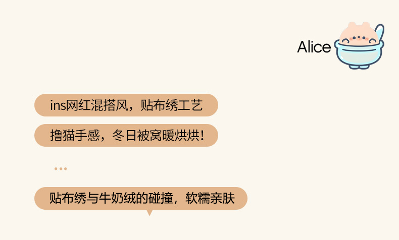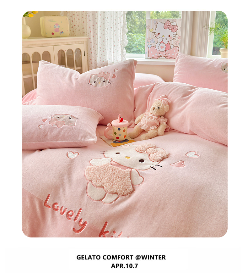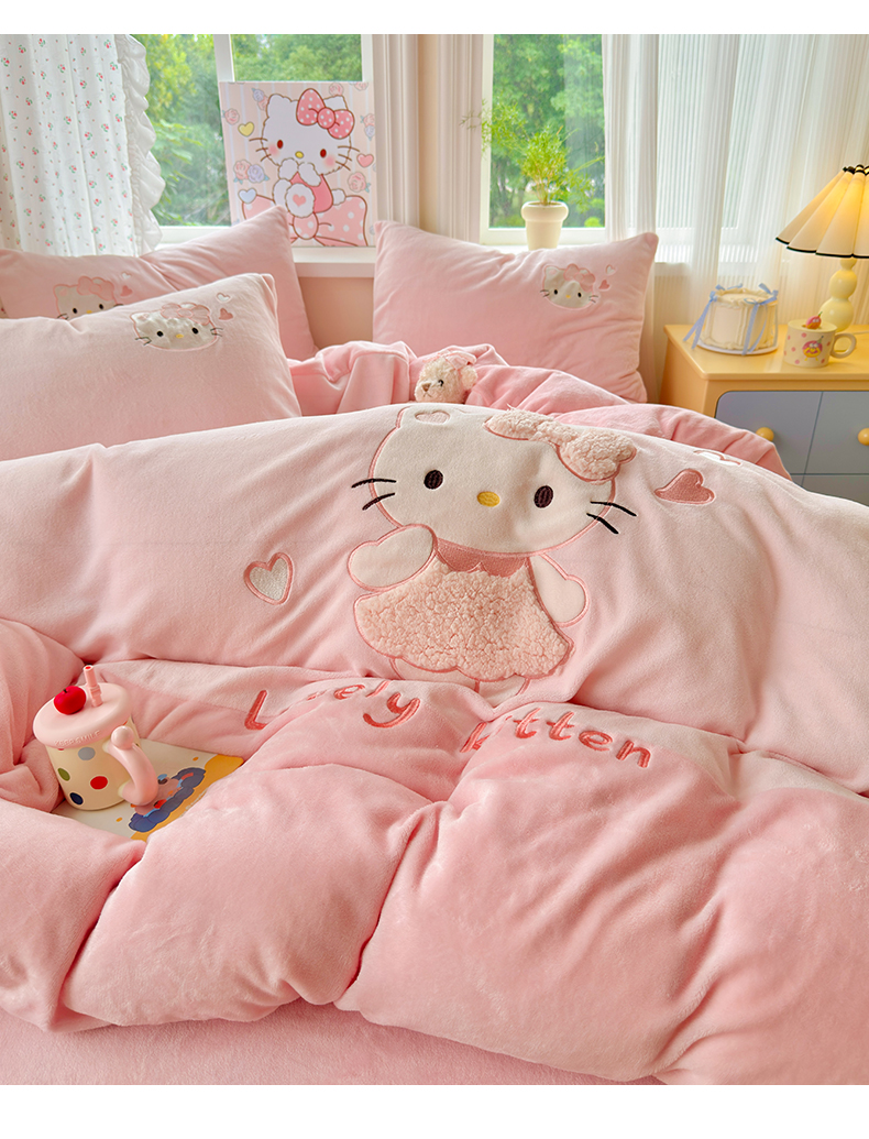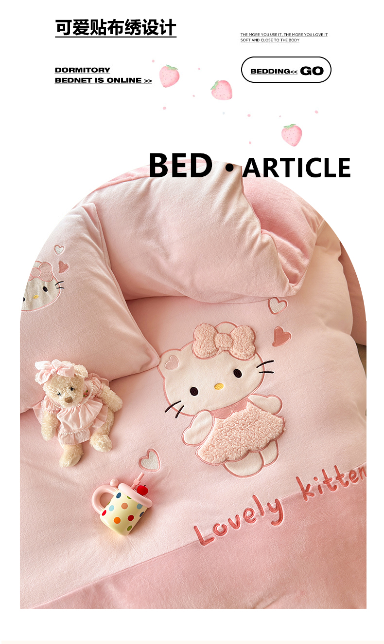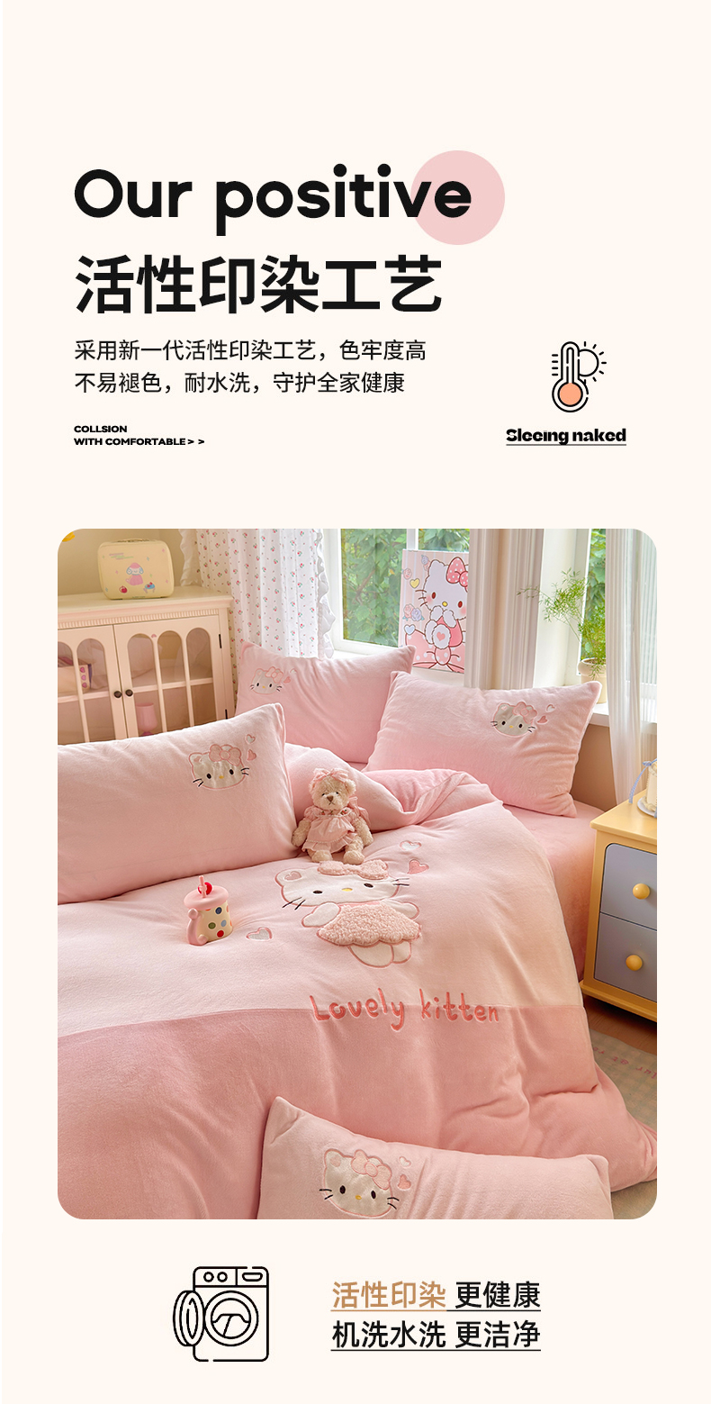 商品名称:卡诗兰 2025新款贴布绣牛奶绒四件套 粉糯kitty