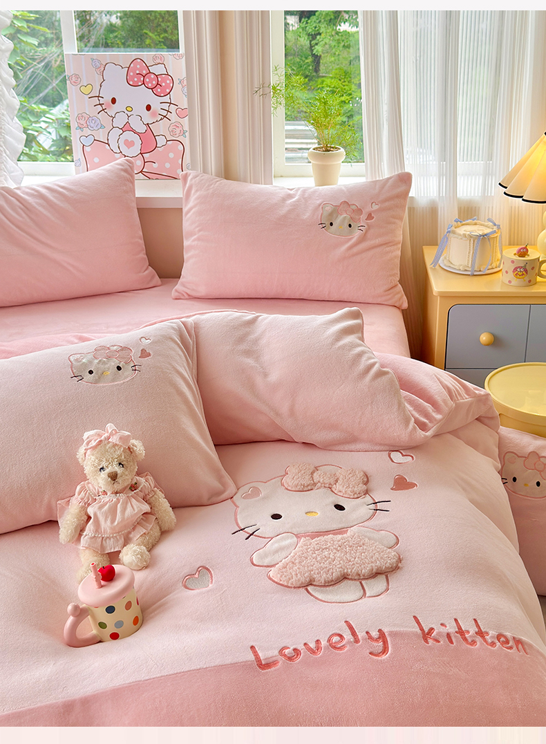 卡诗兰 2025新款贴布绣牛奶绒四件套 粉糯kitty