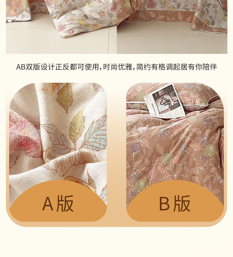 商品名称:春皖家纺 2026春夏新款(正反两用)A类提花双层纱单被套 稔秋