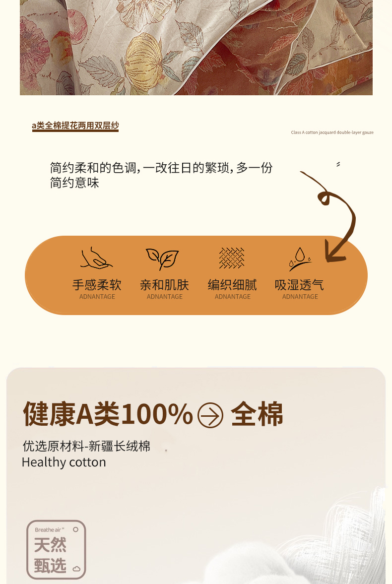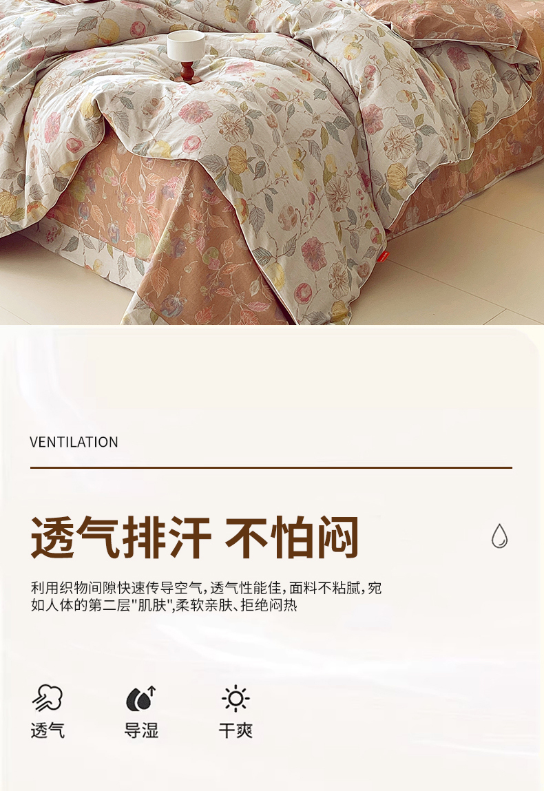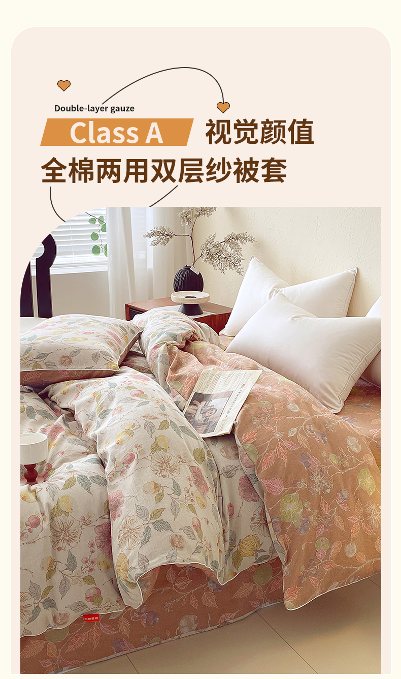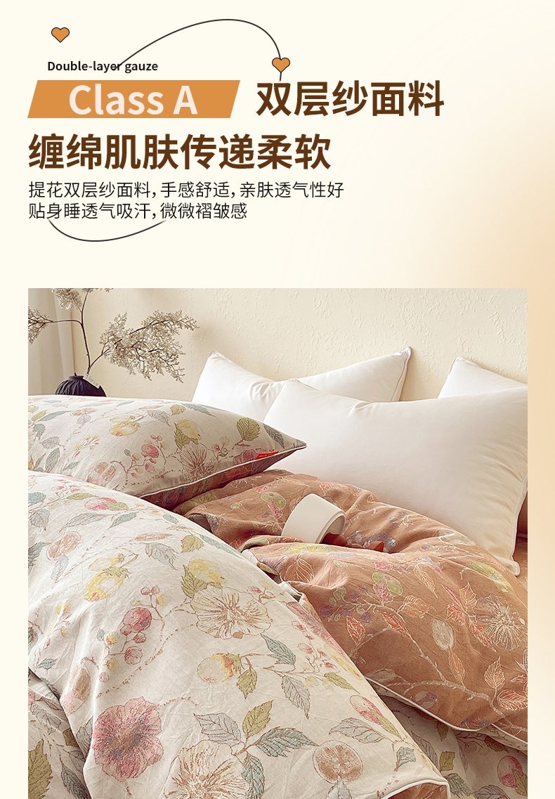 春皖家纺 2026春夏新款(正反两用)A类提花双层纱单被套 稔秋