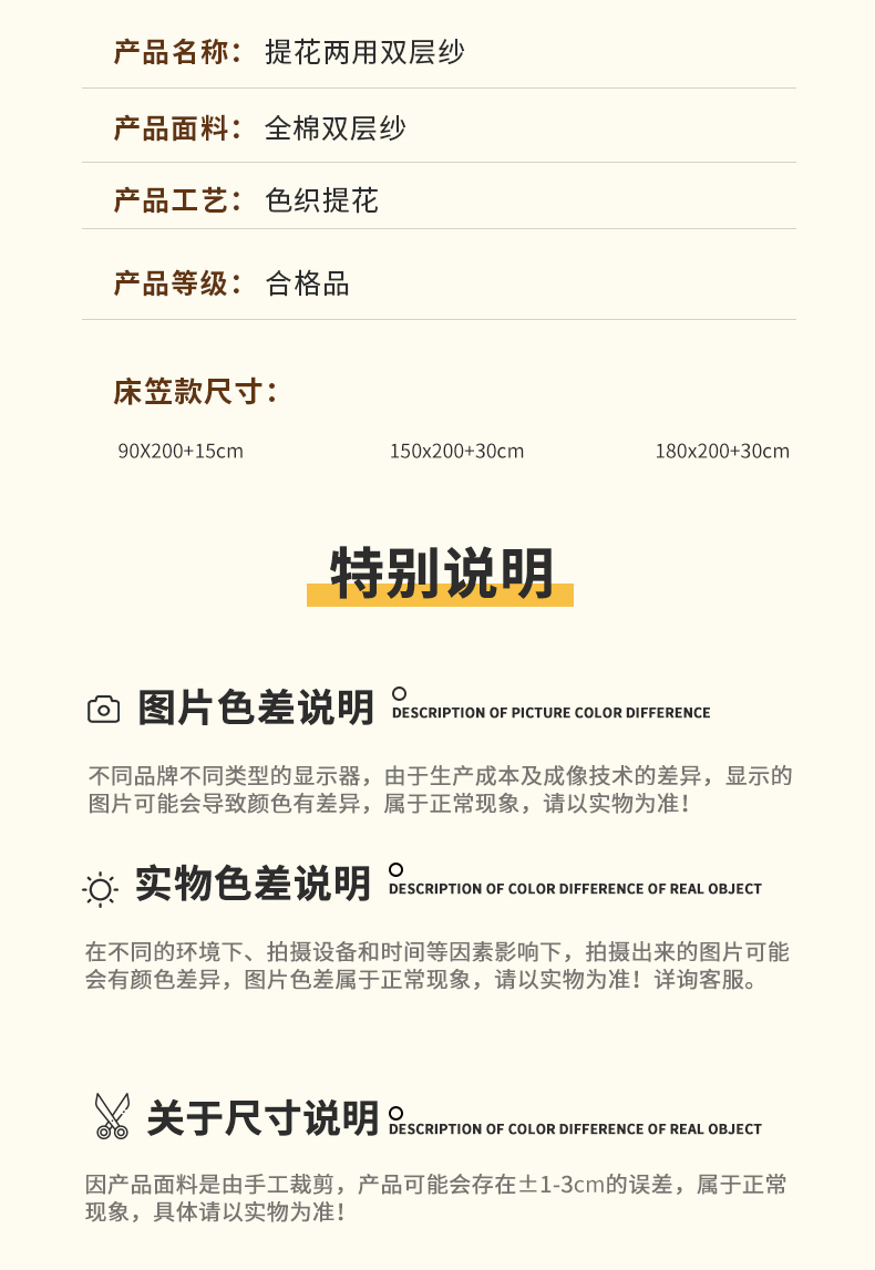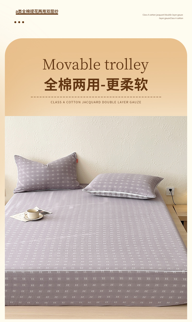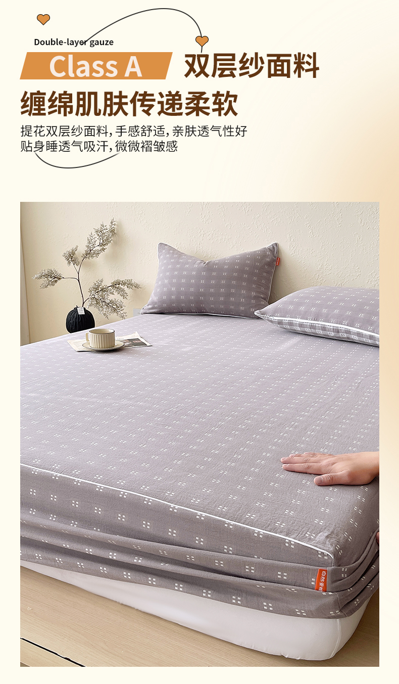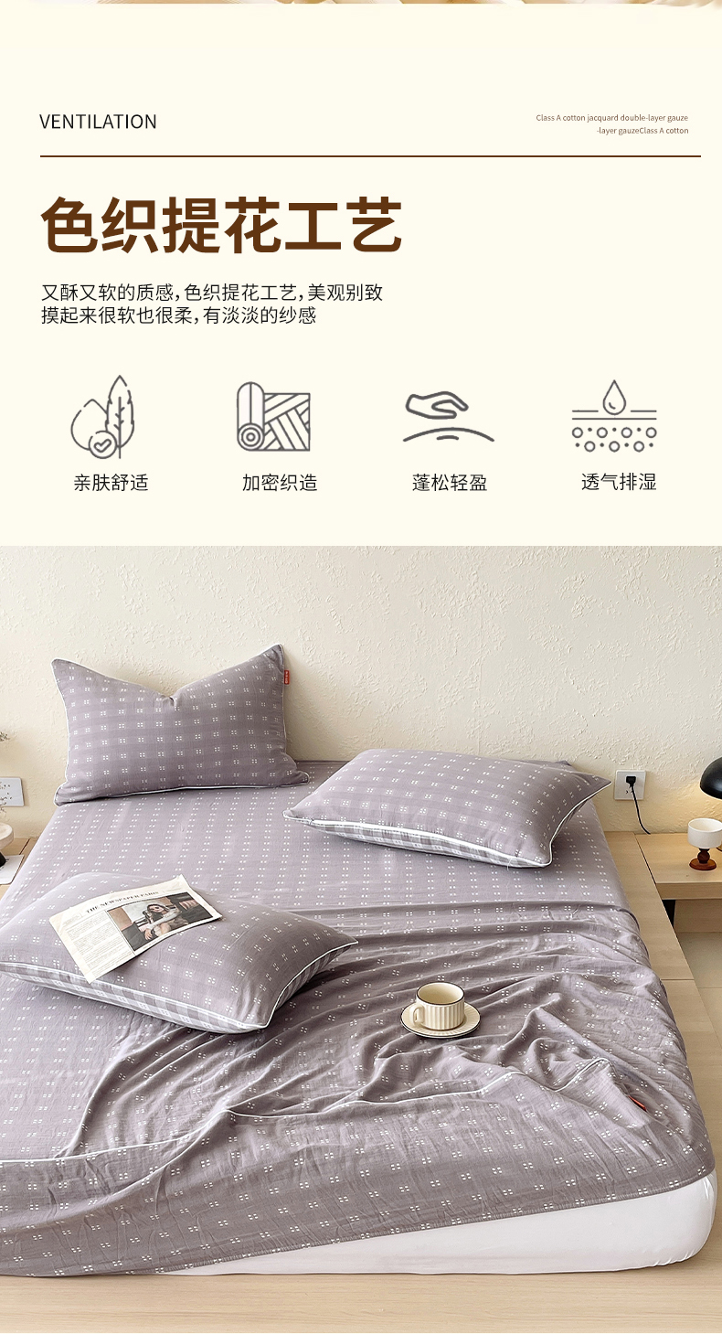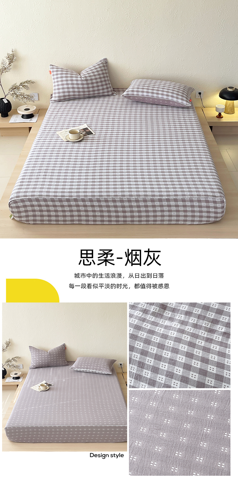 商品名称:春皖家纺 2026春夏新款(正反两用)A类提花双层纱单床笠 思柔-烟灰