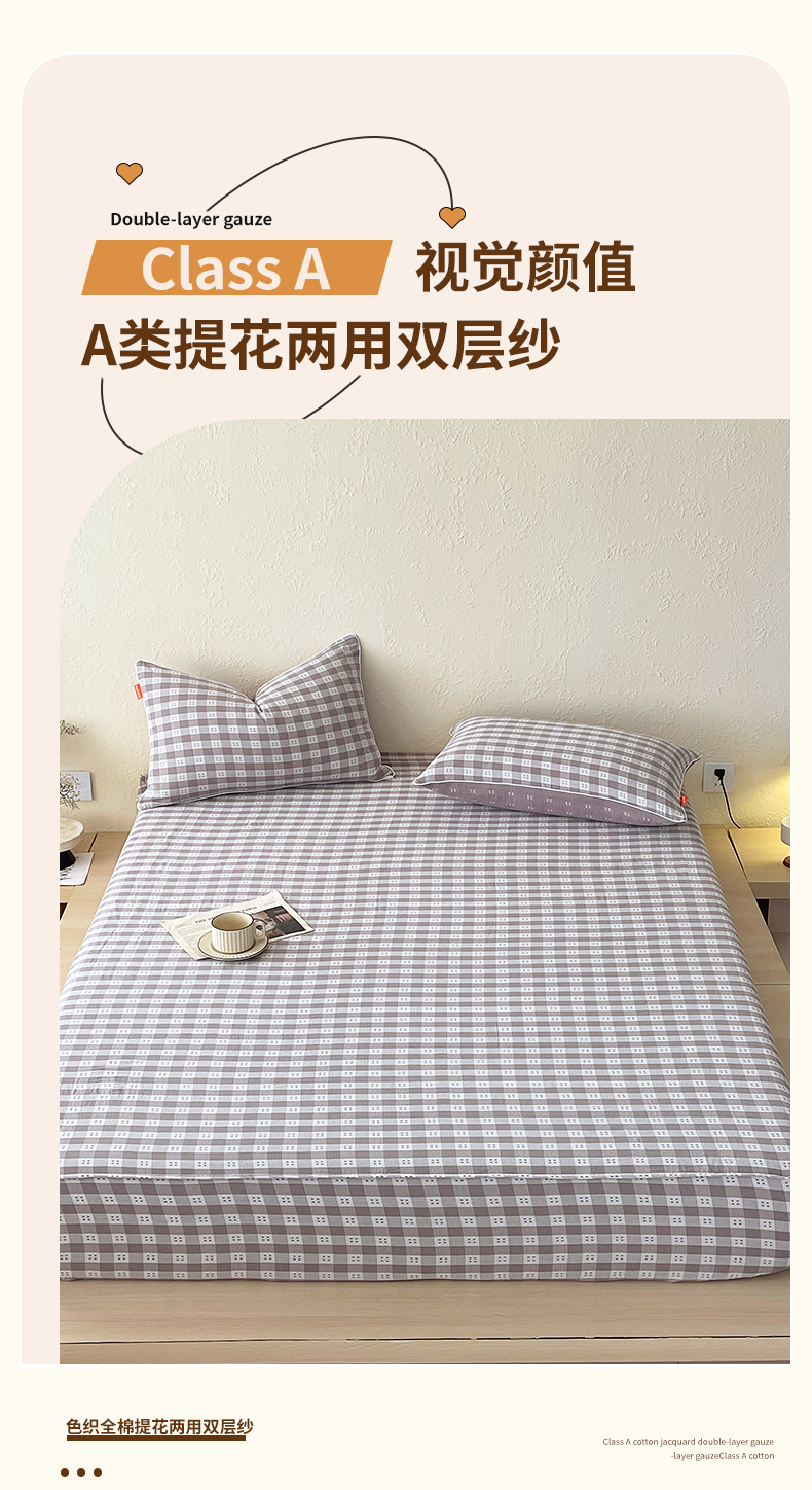 春皖家纺 2026春夏新款(正反两用)A类提花双层纱单床笠 思柔-烟灰