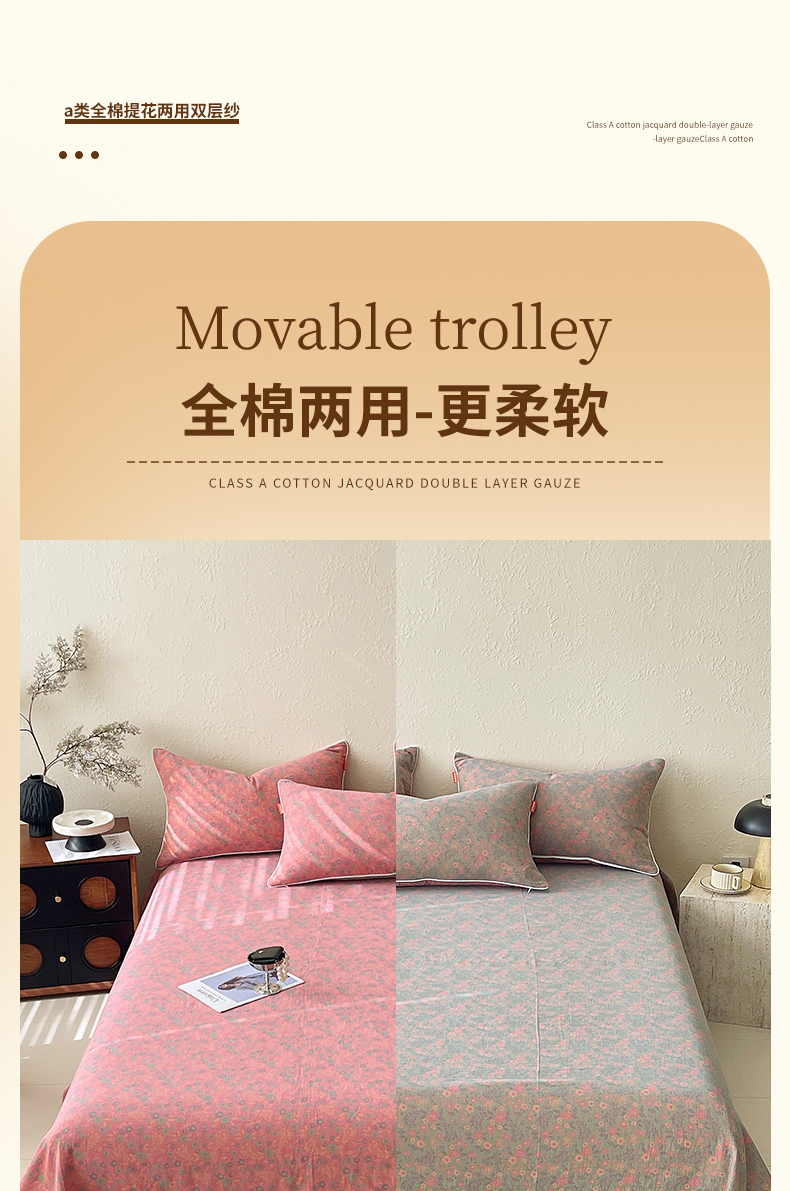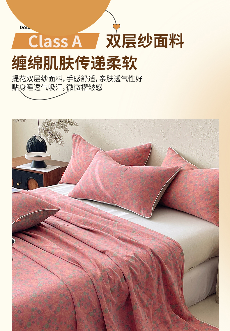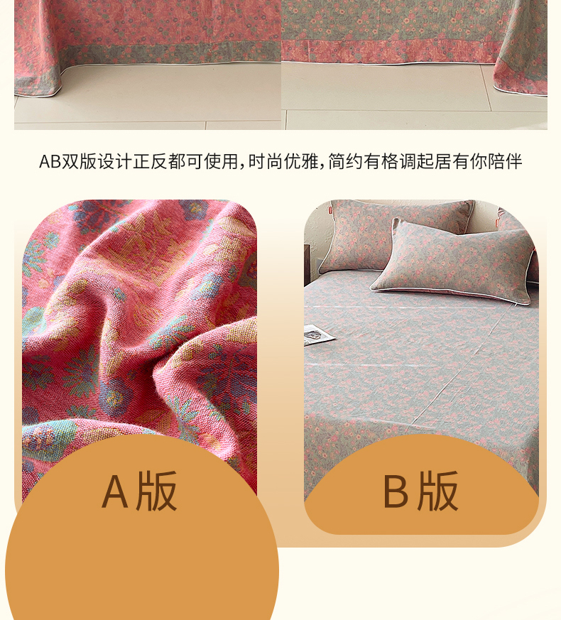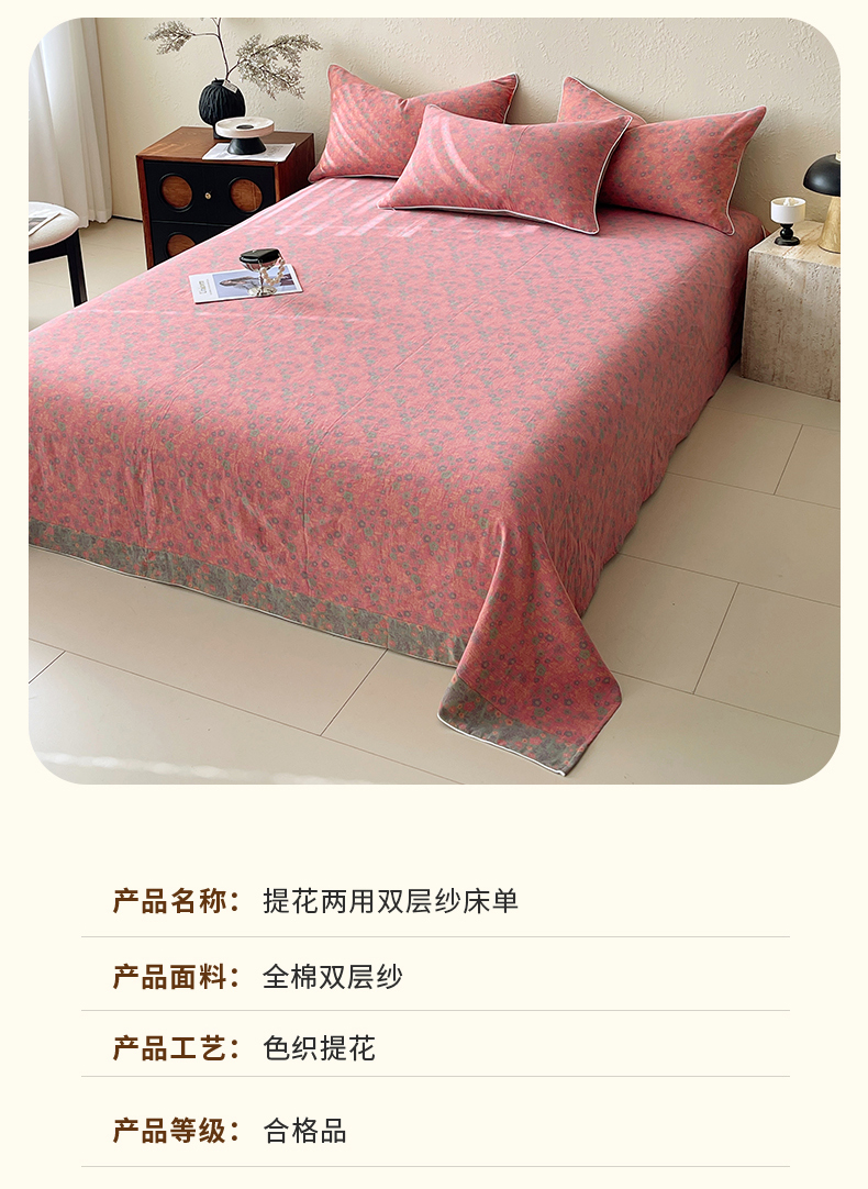 商品名称:春皖家纺 2026春夏新款(正反两用)A类提花双层纱单床单 惜梦-绿粉