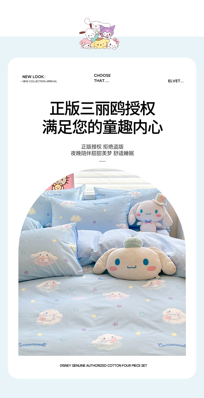当前位置: 91家纺网 > 商品网购 > 床品套件 > 四件套 > 全棉普通四件套 > 暮思家居 2026新款正版授权三丽鸥全棉纯棉四件套系列-第二批 星空玉桂狗