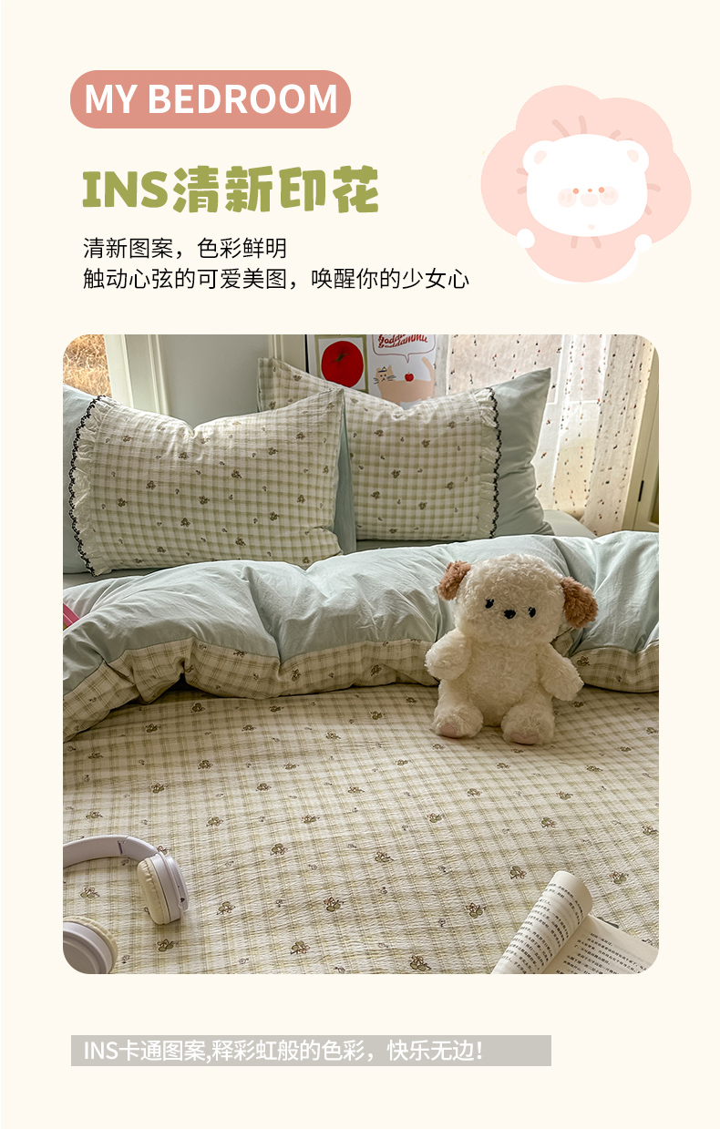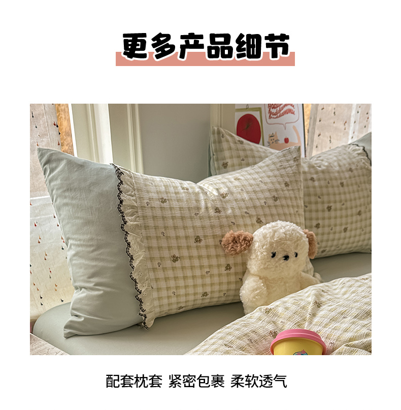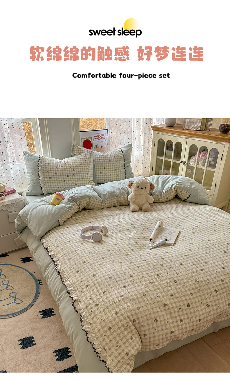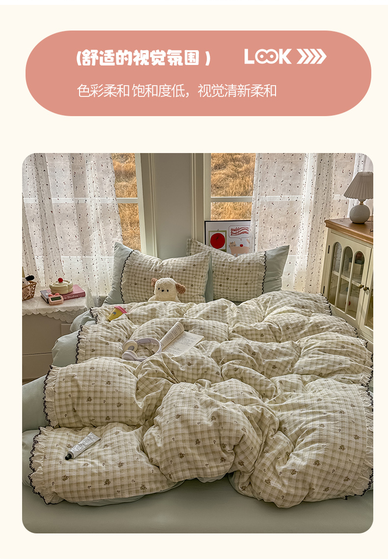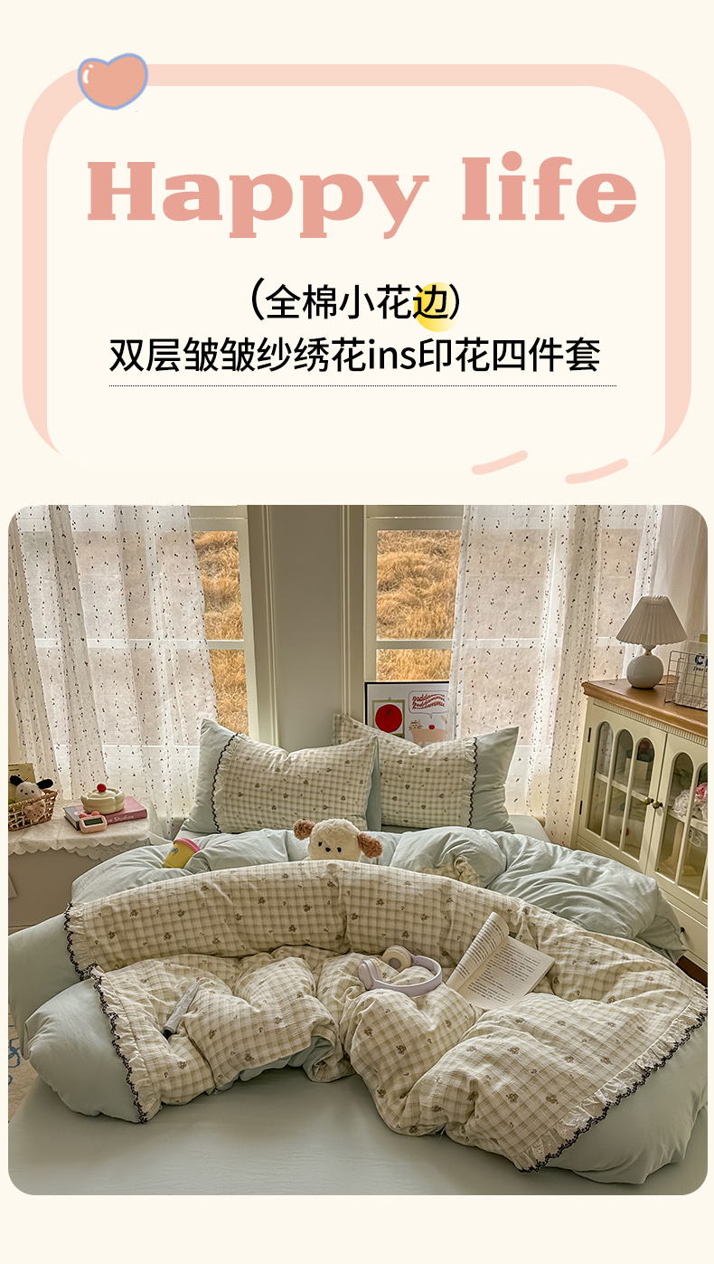 当前位置: 91家纺网 > 商品网购 > 床品套件 > 四件套 > 水洗棉四件套 > 贝凯瑞 2026新款小花边水洗棉绣花ins小清新床单床裙床笠四件套 佐伊