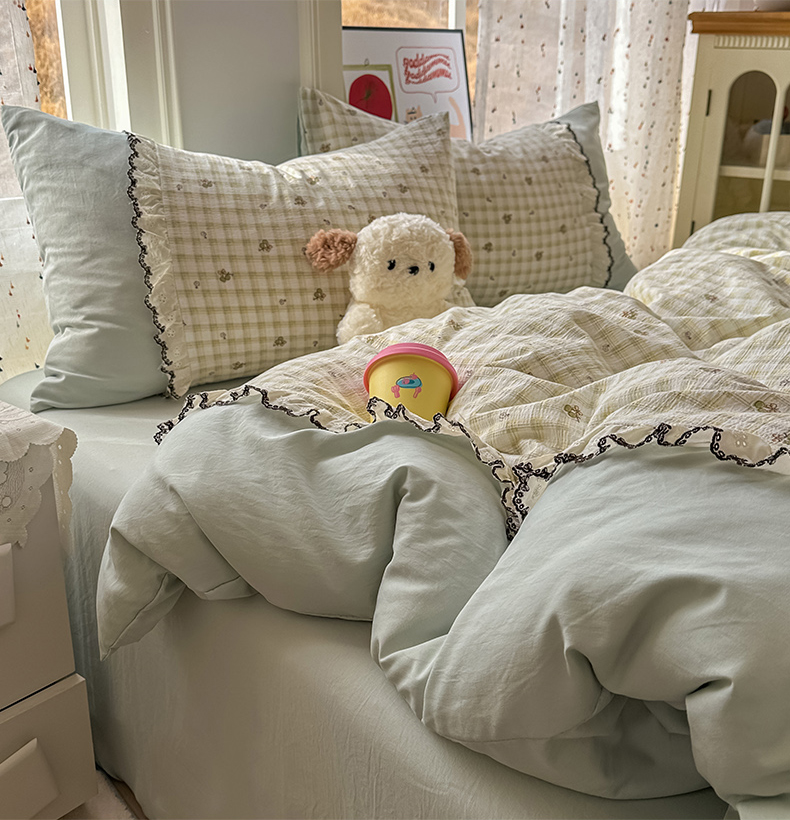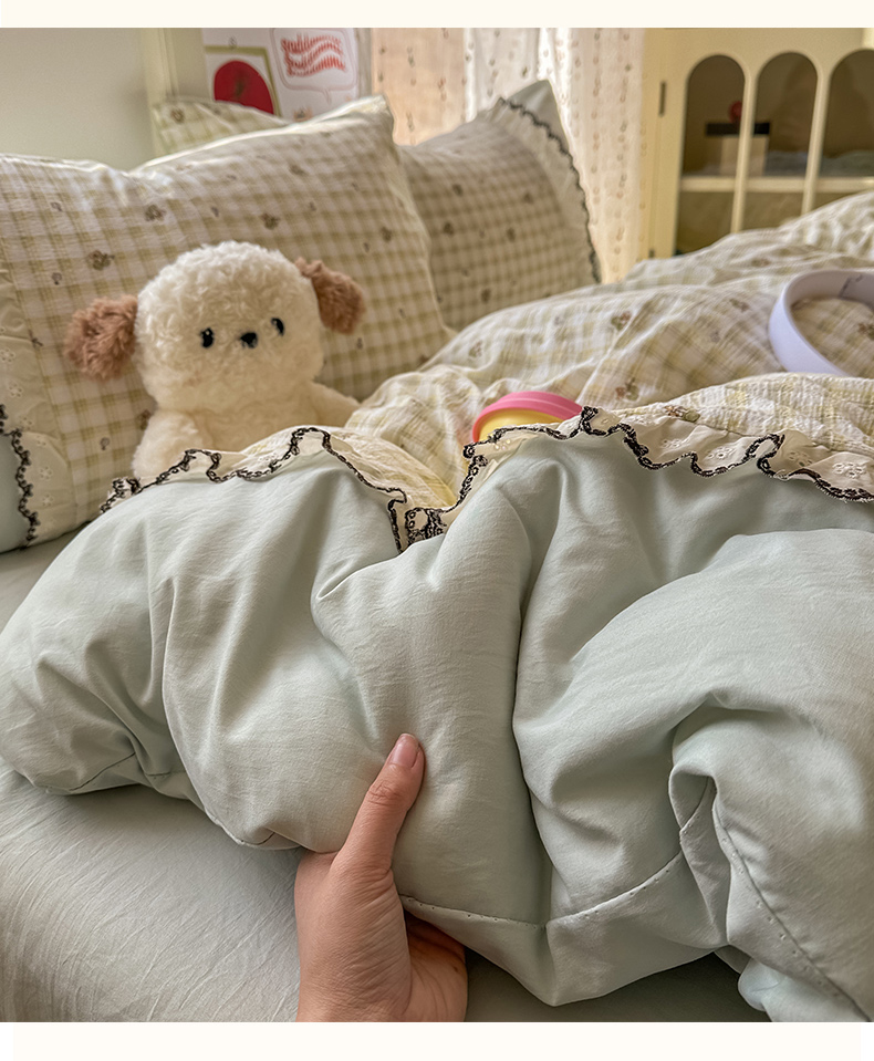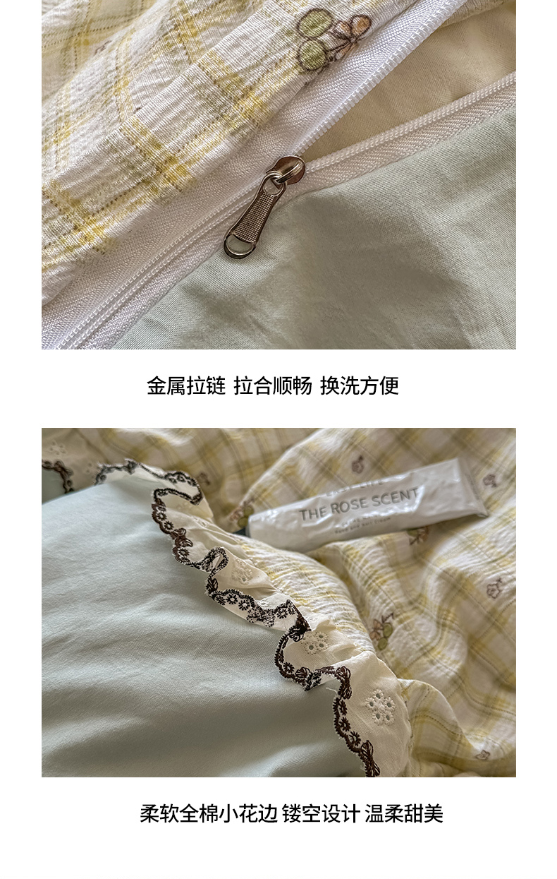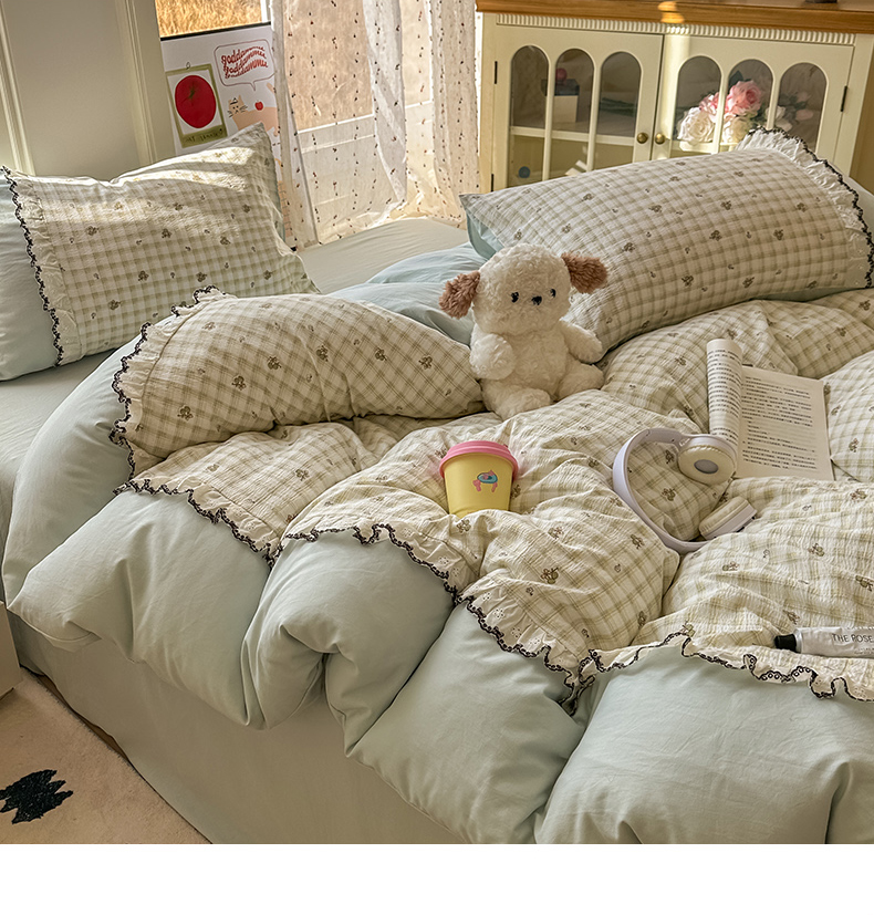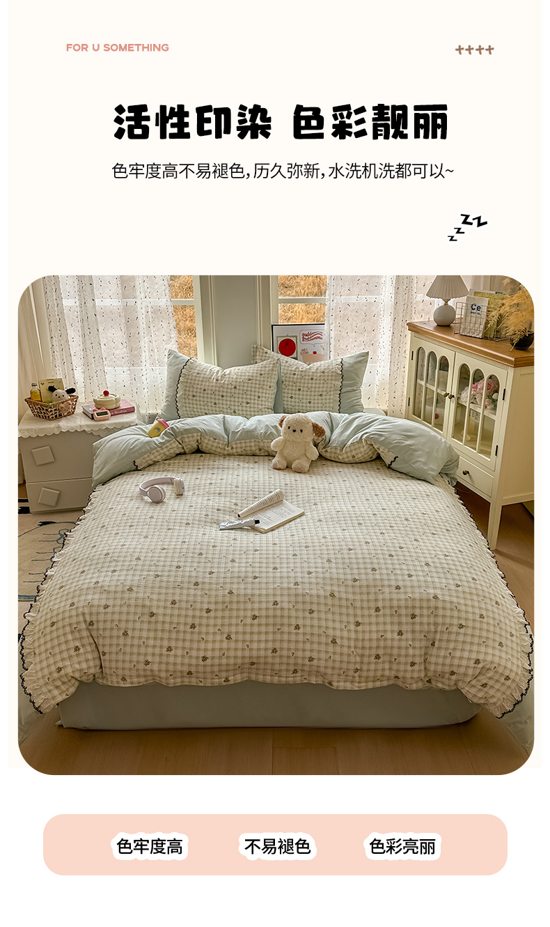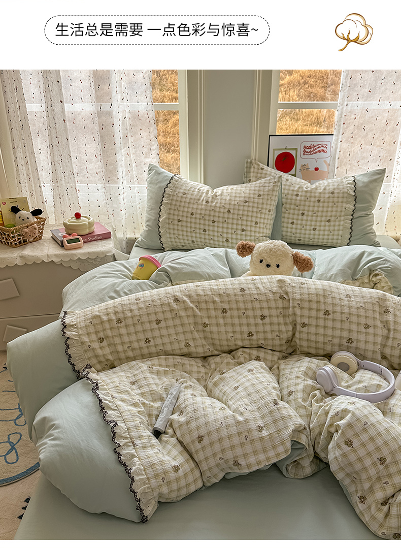 当前位置: 91家纺网 > 商品网购 > 床品套件 > 四件套 > 水洗棉四件套 > 贝凯瑞 2026新款小花边水洗棉绣花ins小清新床单床裙床笠四件套 佐伊