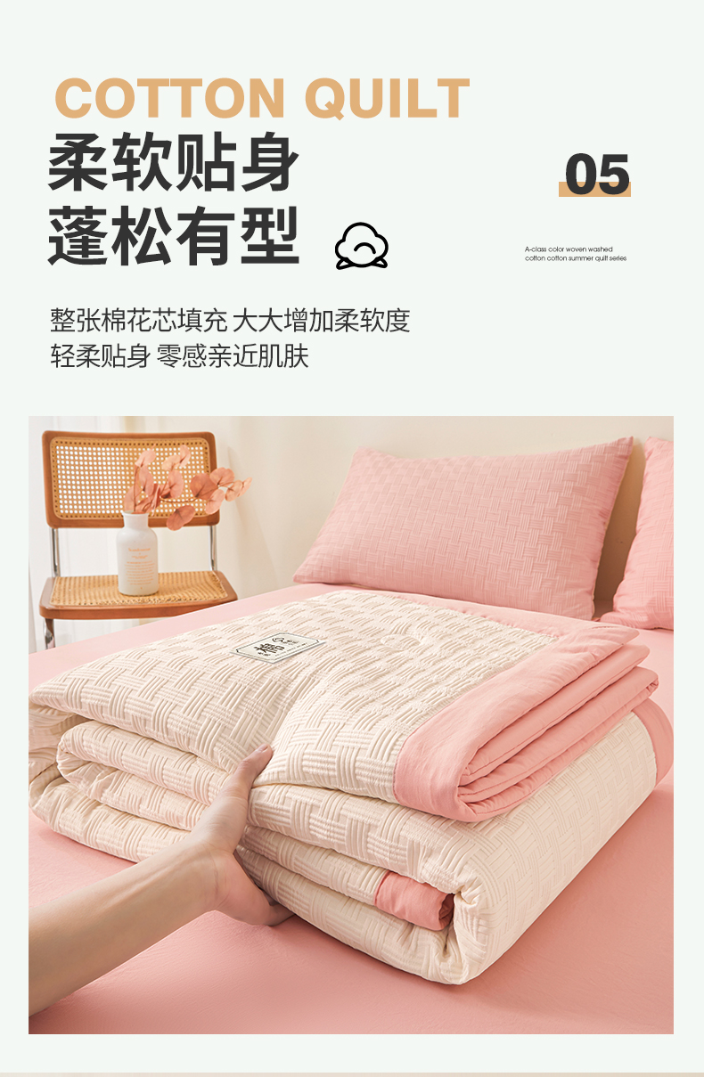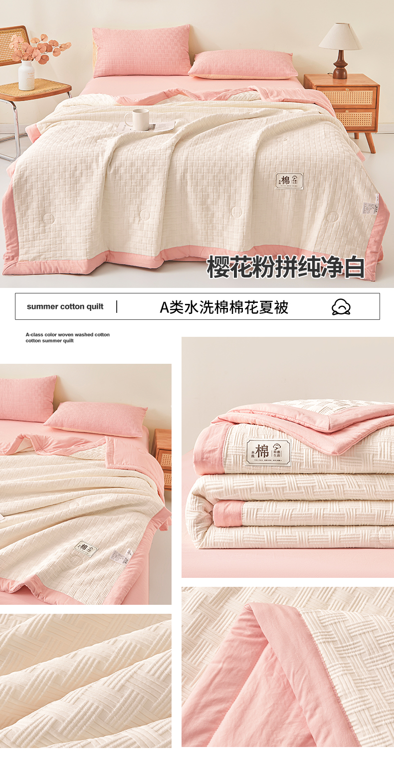商品名称:好睡棉 2026新款华夫格双拼夏被夏凉被空调被新疆棉花被子 白拼粉