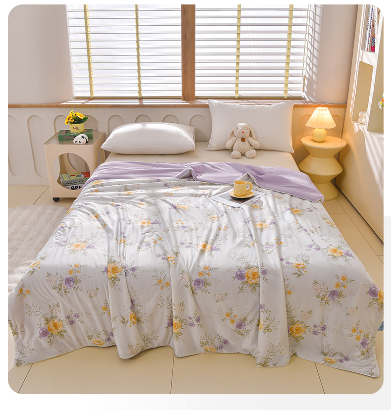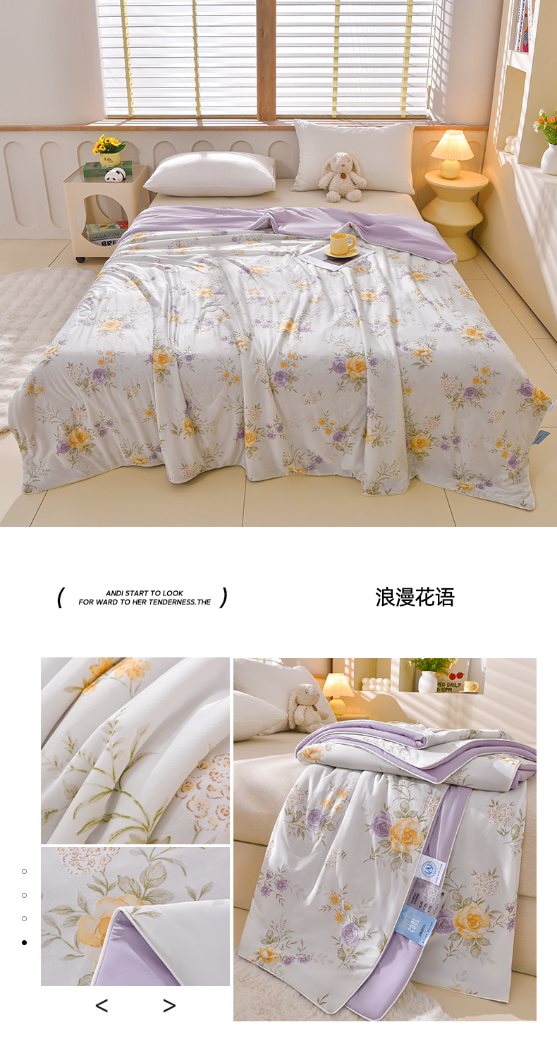 叠派家纺 2026新款A类氨纶凉感丝夏被印花空调被西瓜夏凉被直播 浪漫花语