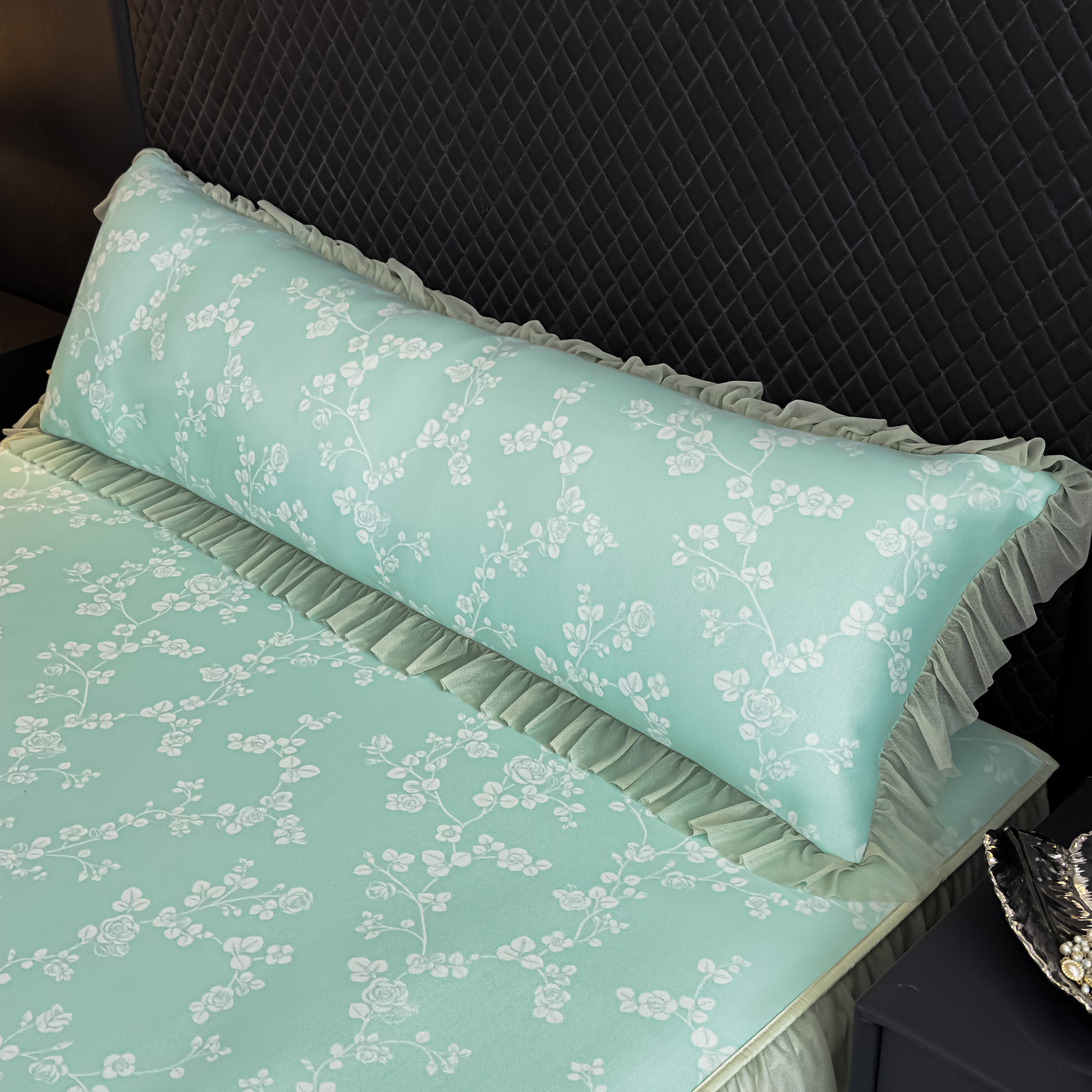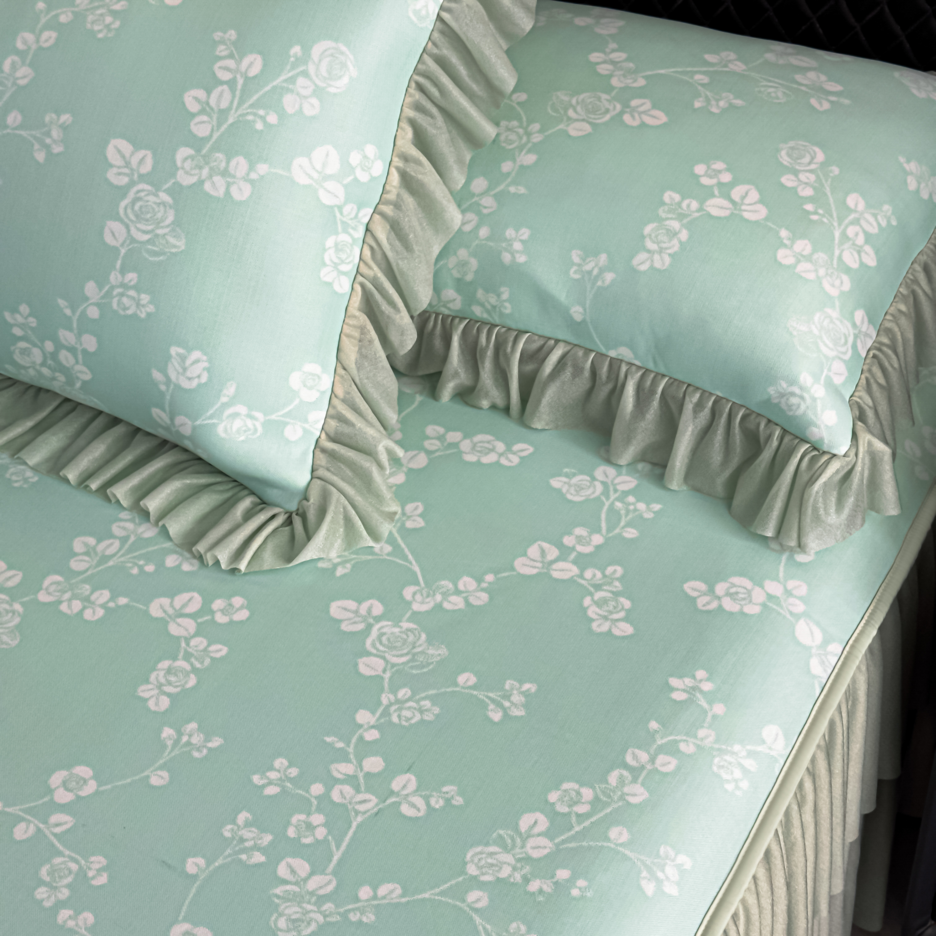 (总)家之硕家纺 2025新款雕花牛奶绒床裙款三件套,繁枝,黑玫瑰,蔓延之境 -咖,蔓延之境-黑,梦蝶,一支玫