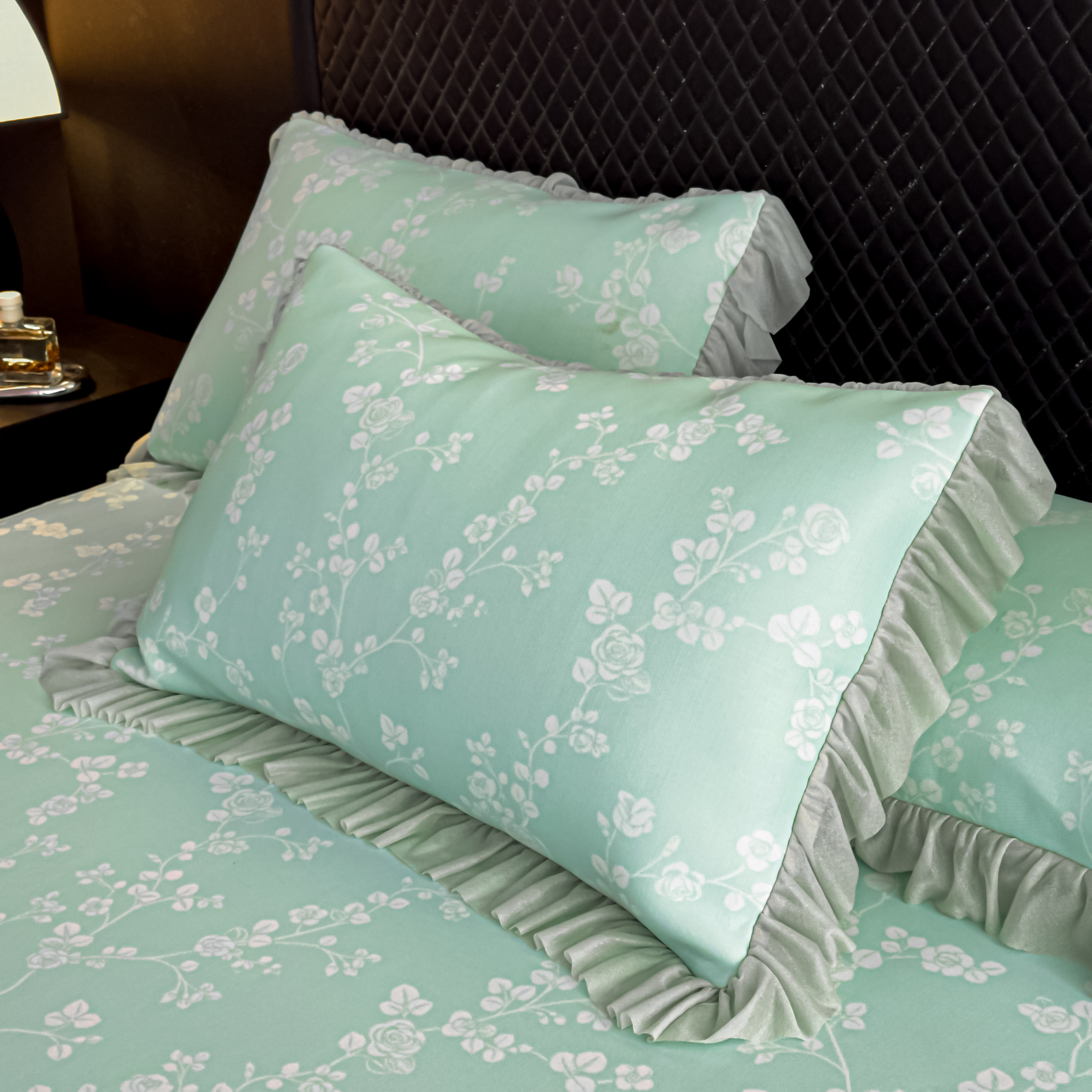 商品名称:家之硕 2026新款冰丝凉席枕套 蔷薇玫瑰--绿