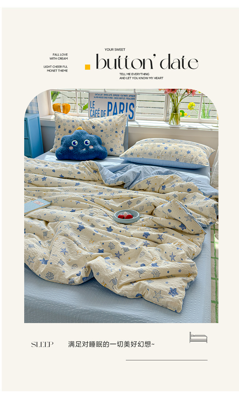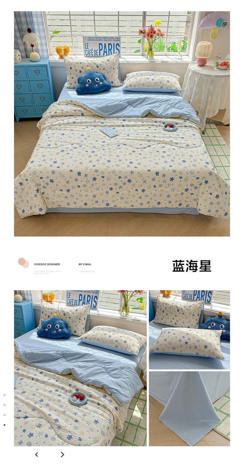 (总)玉海棠家纺 2026新款A类云感双层纱7A抗菌夏被夏凉被空调被四件套,灿烂花开,繁华里,粉波点,花园女孩,咖色烤肠狗,蓝波点,蓝色星星,蓝屿花室,萌宠集合,慕斯,扑蝴蝶,童话故事,童年木马,兔兔花园,兔先生,小猫咪,杏花灿烂,紫葡萄,紫韵花信
