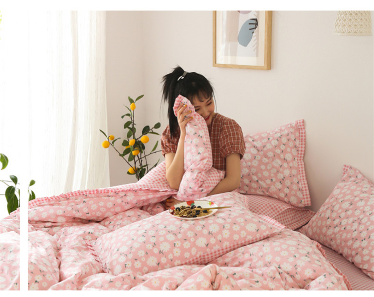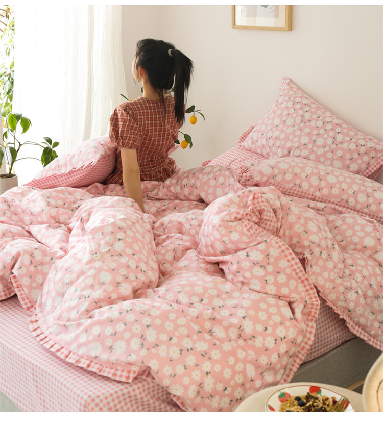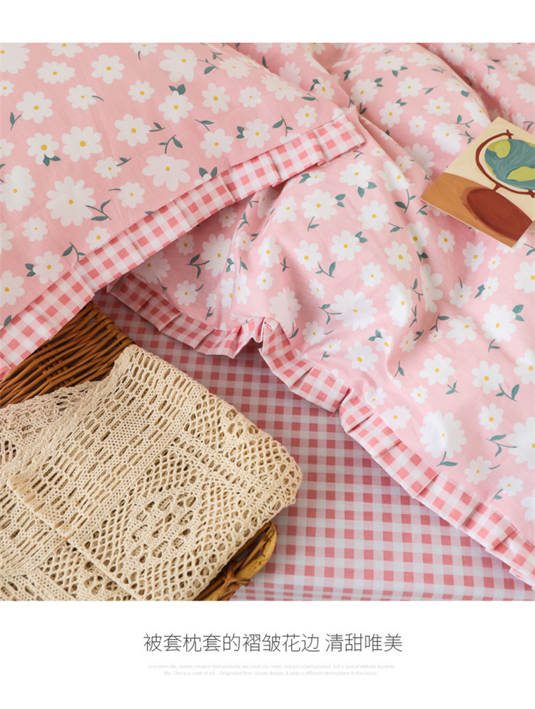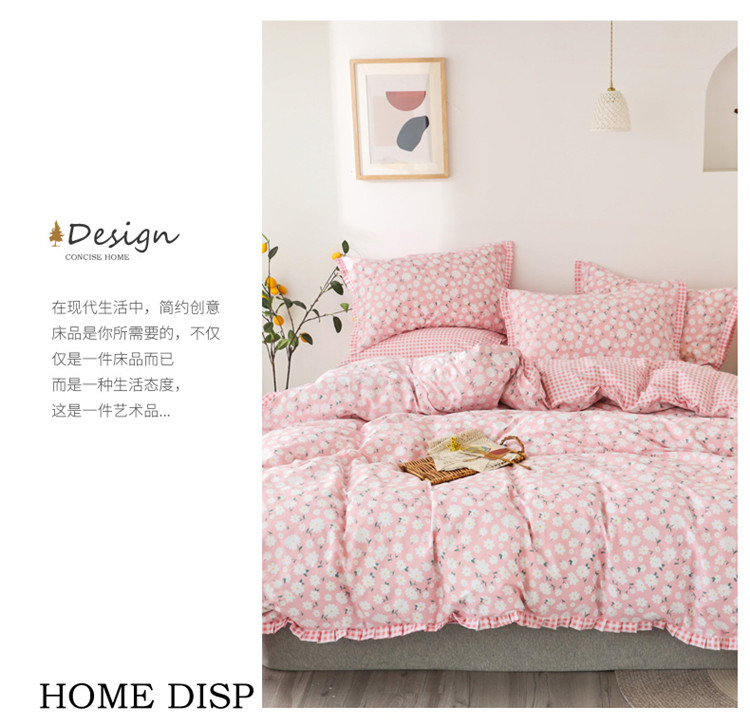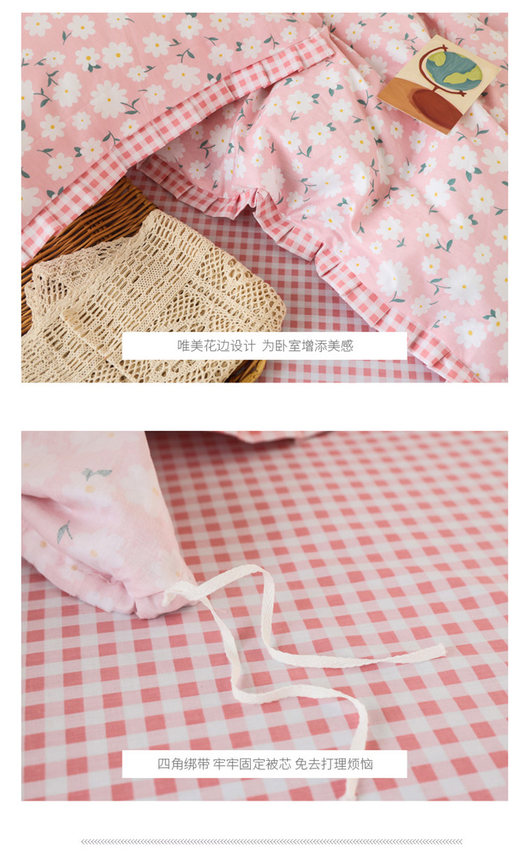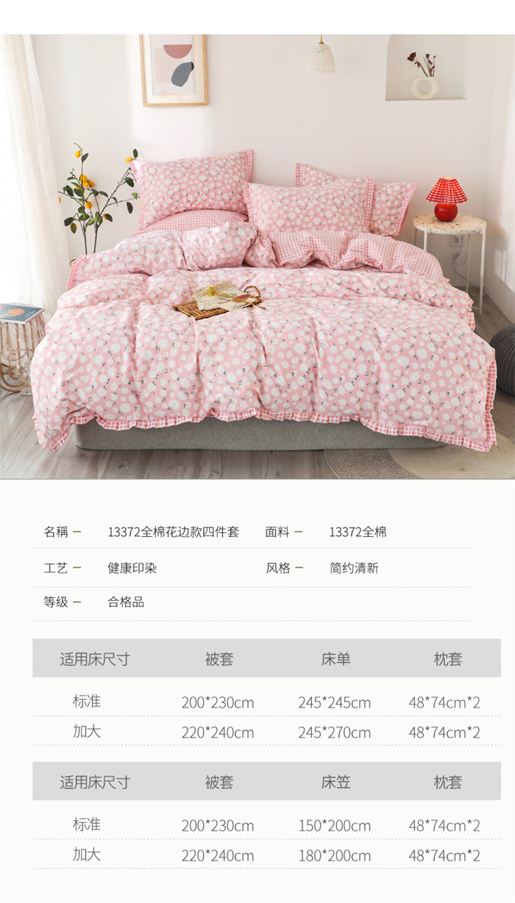 商品名称:澳萝拉 2020新款13372全棉花边碎花款四件套 粉黛