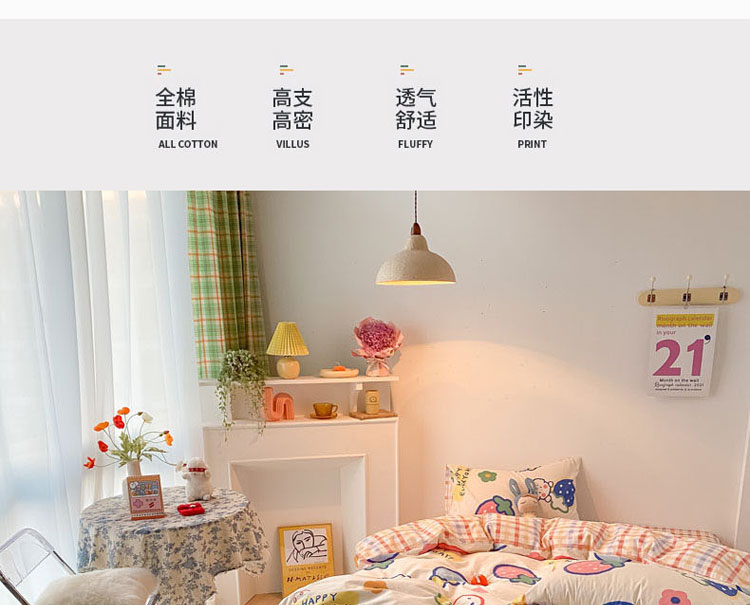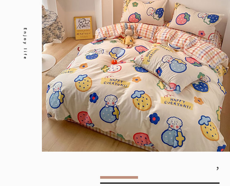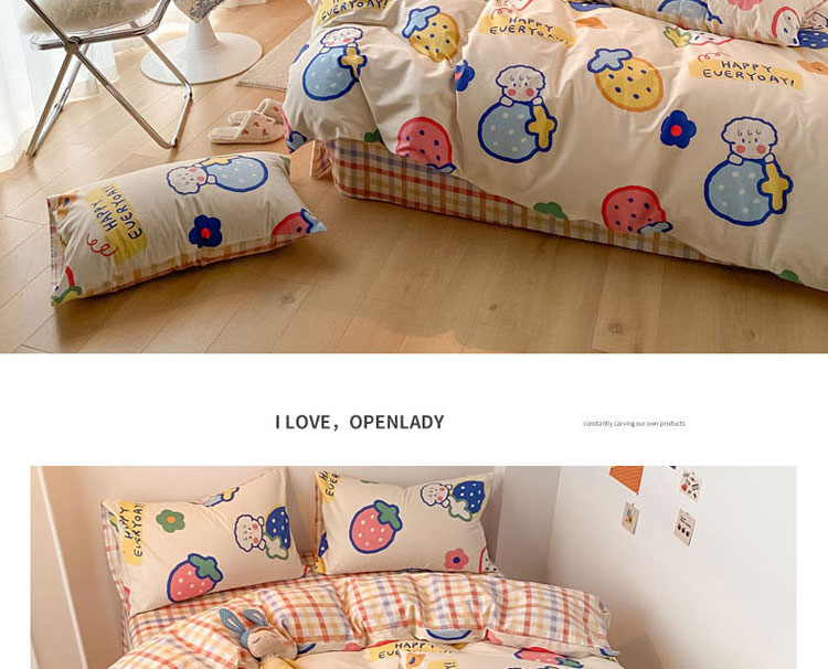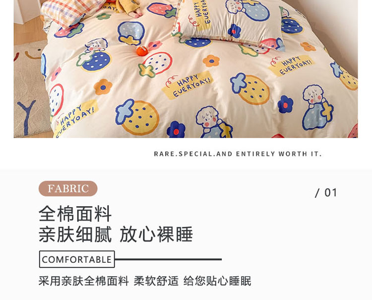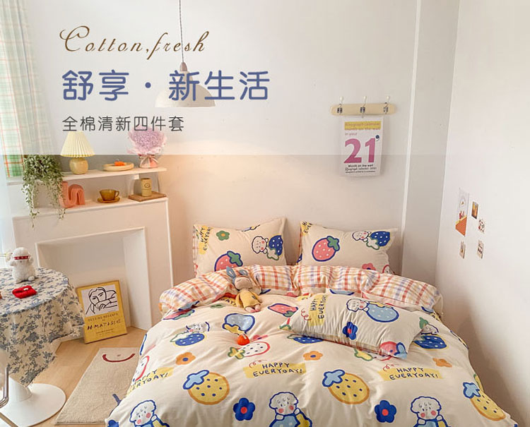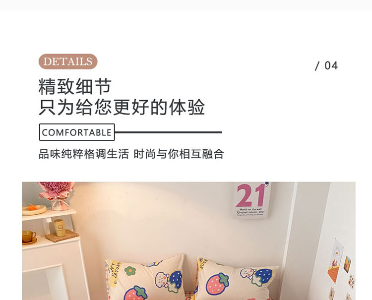 当前位置: 91家纺网 > 商品网购 > 床品套件 > 四件套 > 全棉普通四件套 > 梦家居 2021春季新品全棉小清新四件套 草莓甜心