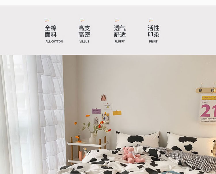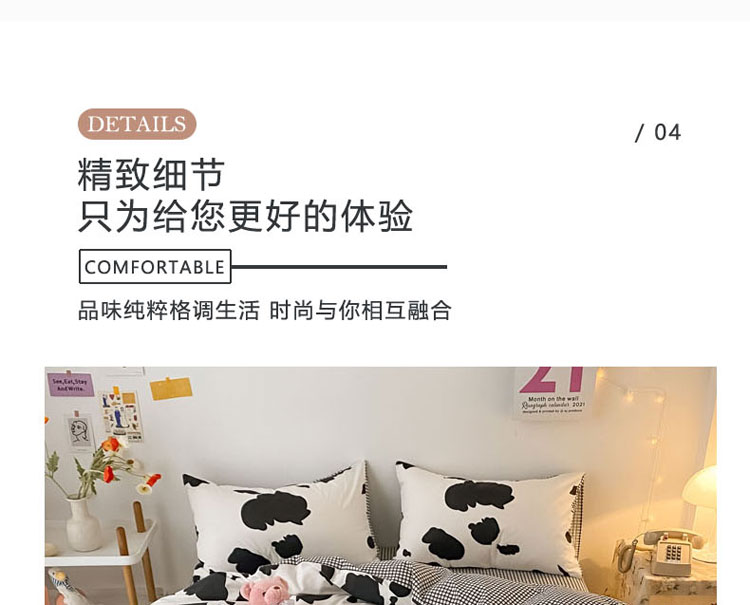 当前位置: 91家纺网 > 商品网购 > 床品套件 > 四件套 > 全棉普通四件套 > 梦家居 2021春季新品全棉小清新四件套 牛奶纹