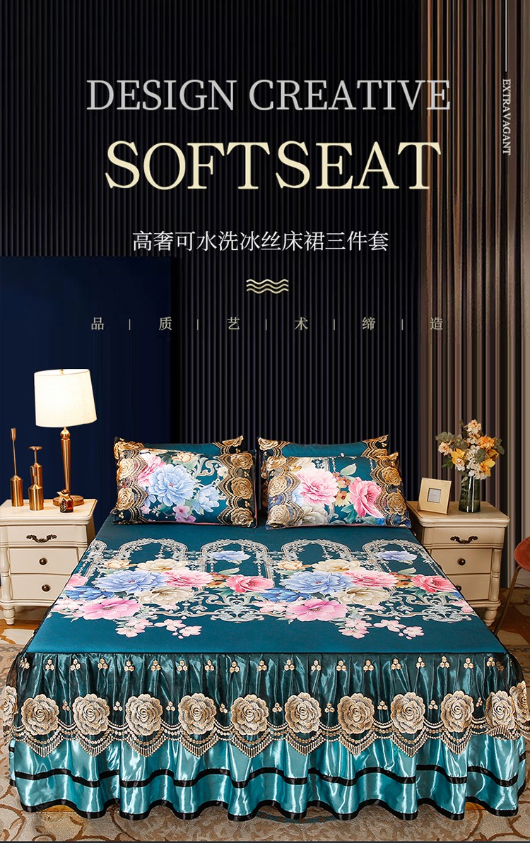 (总)瑞宝 2025新款雕花牛奶绒夹棉床裙三件套-花有约,花有约-粉玉,花有约-青柠绿,花有约-奶油白,花有约-蔚蓝,花有约-卡其,花有约-梦幻紫