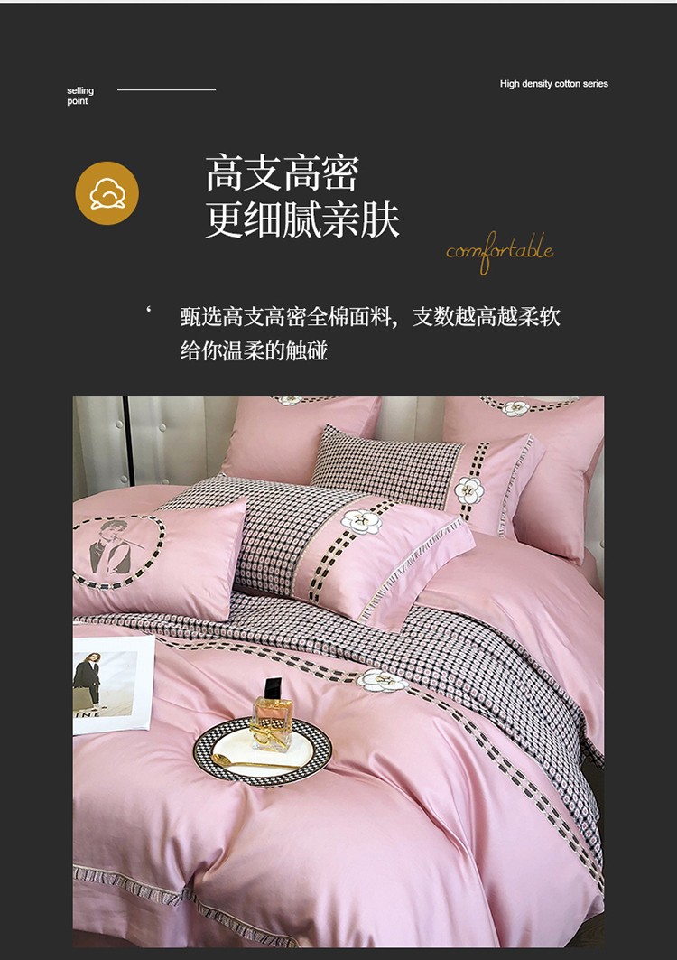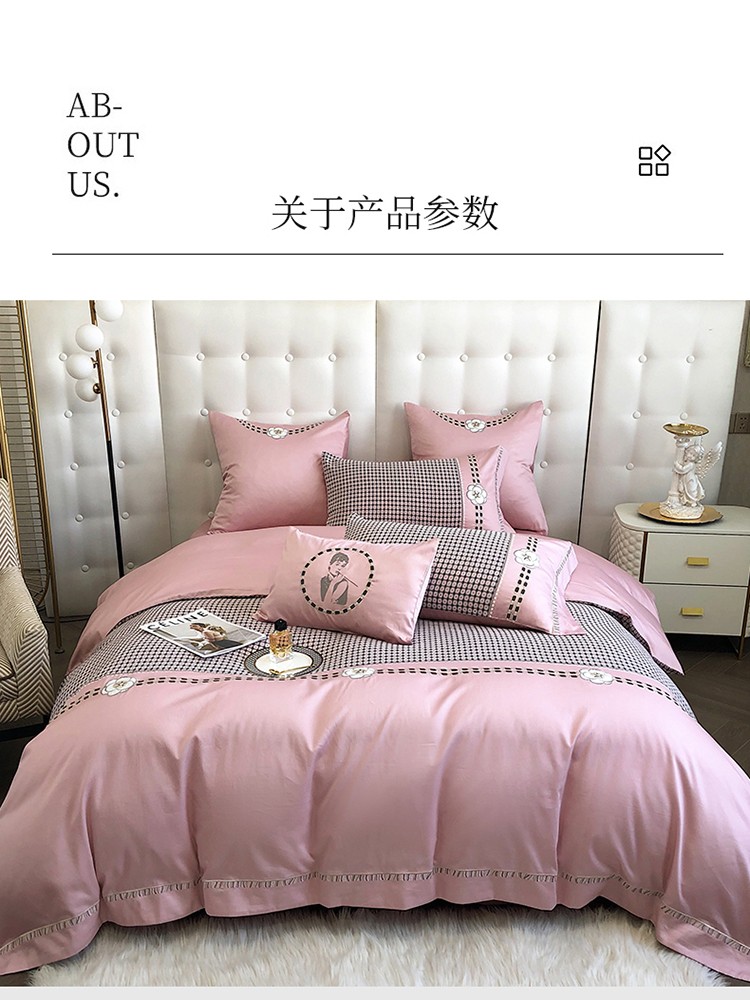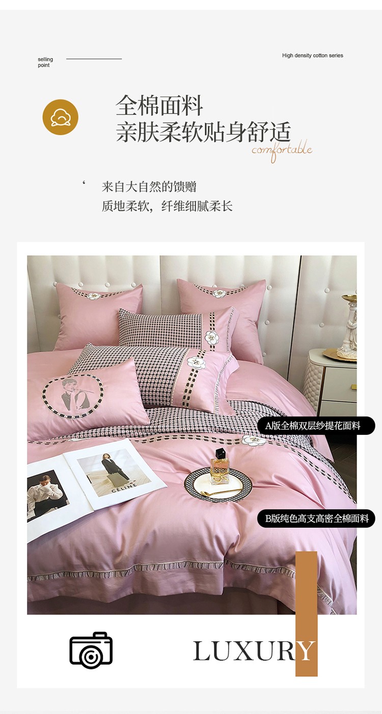 (总)品家居 2025新款180支长绒棉四件套可可系列,可可-粉,可可-蓝,可可-紫