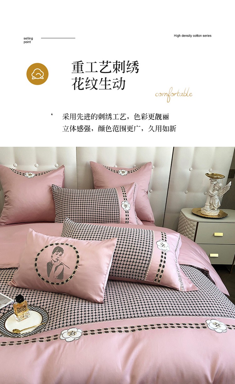 (总)品家居2021新款贝拉花园180支全棉澳棉刺绣四件套,贝拉花园-粉,贝拉花园-蓝