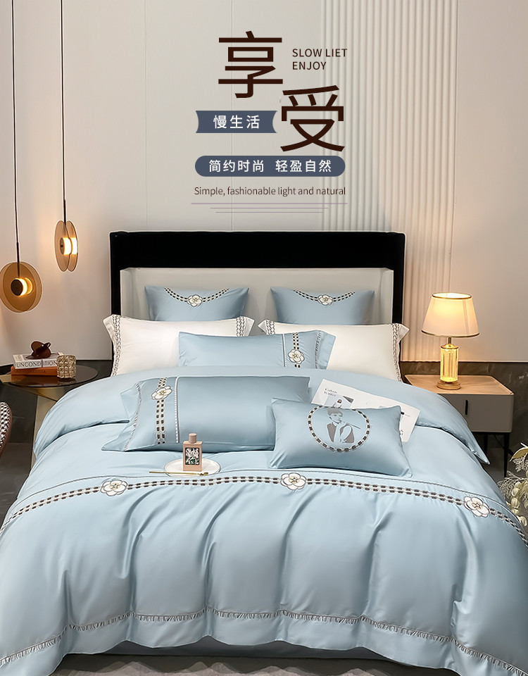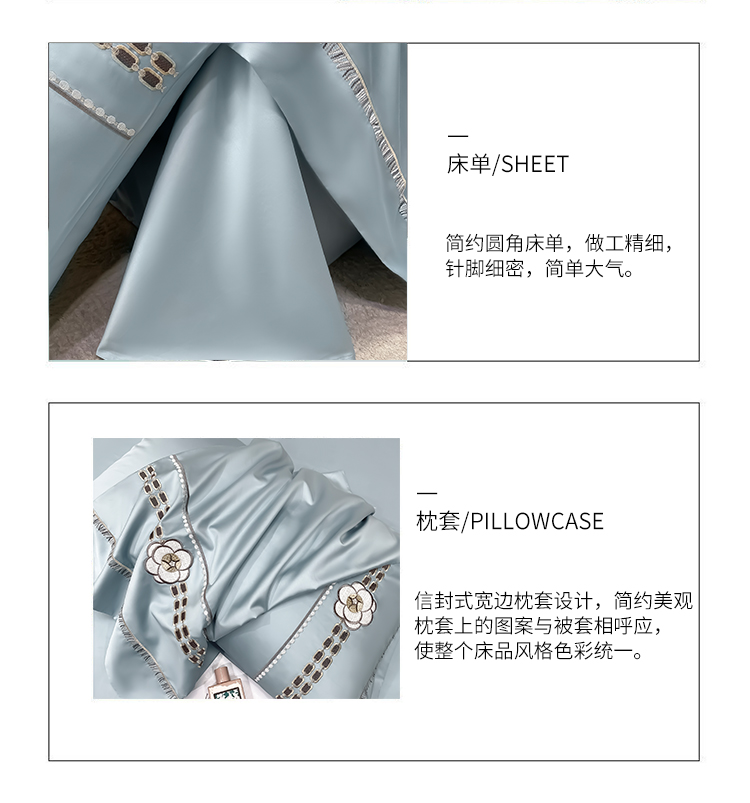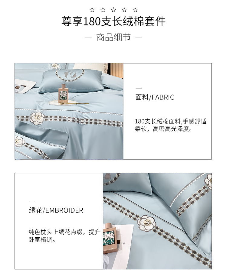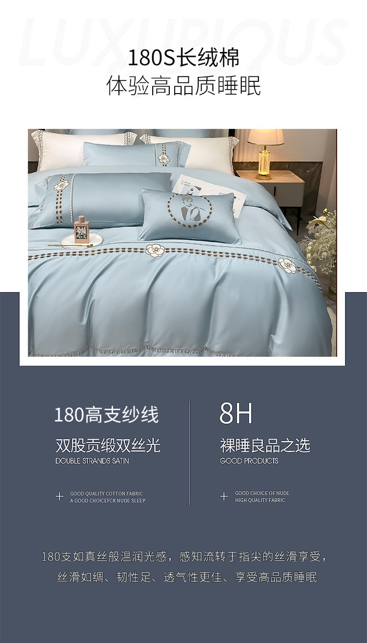 (总)品家居2021新款贝拉花园180支全棉澳棉刺绣四件套,贝拉花园-粉,贝拉花园-蓝