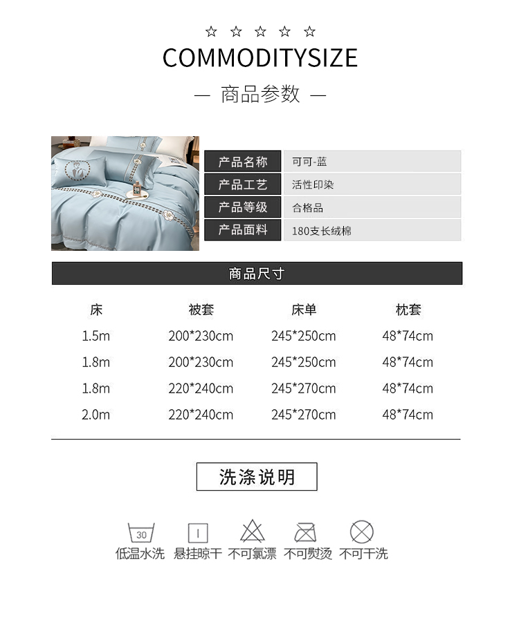 商品名称:品家居 2025新款180支长绒棉四件套可可系列 可可-蓝