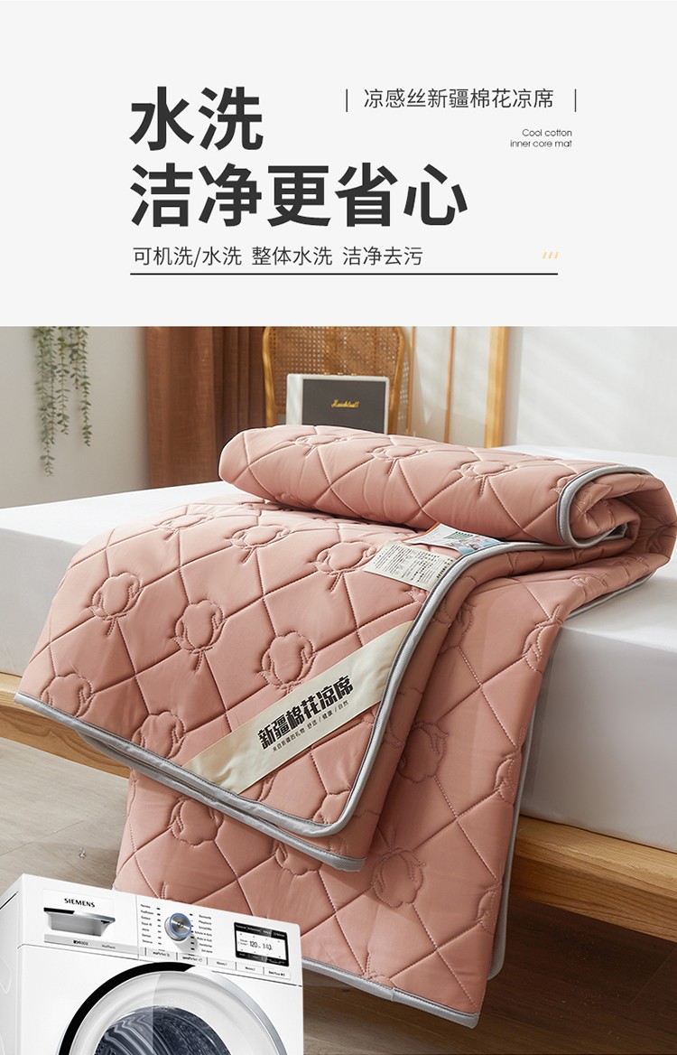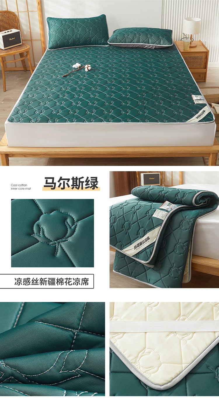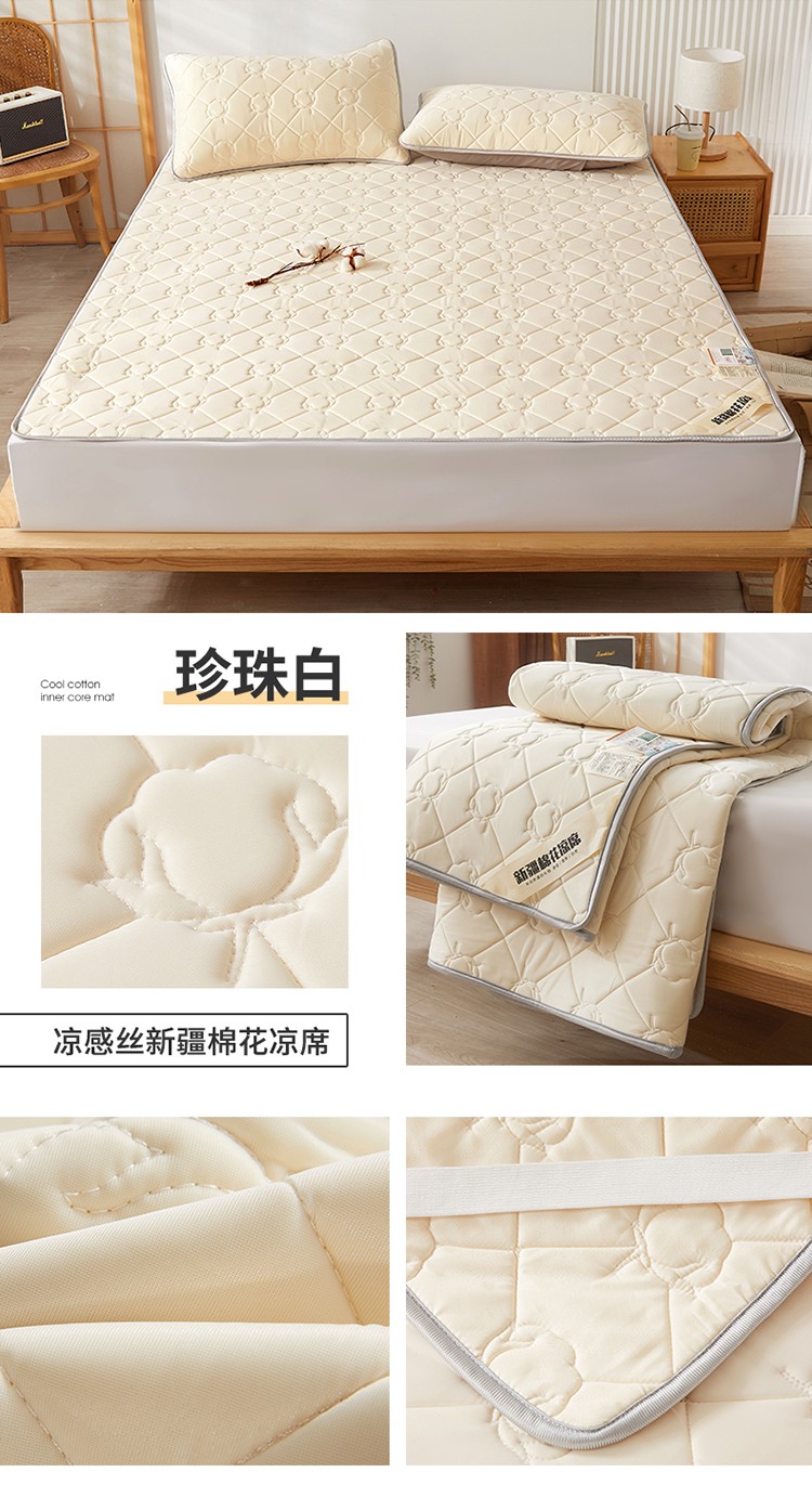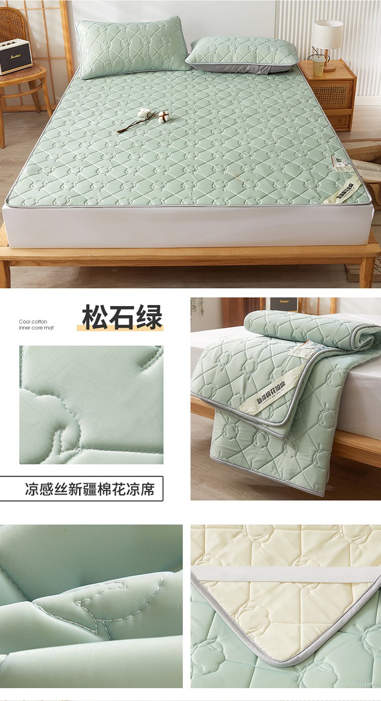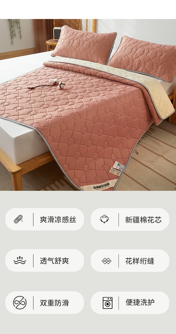 总 西域种棉人 新疆棉花凉席冰丝凉感丝平铺款加厚床单款三件套水洗可折叠