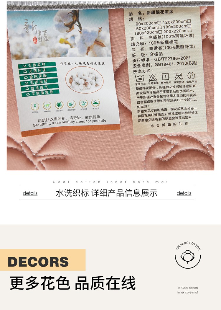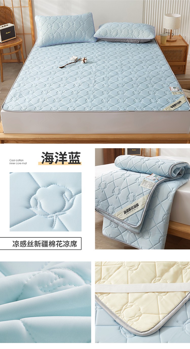 商品名称:总 西域种棉人 新疆棉花凉席冰丝凉感丝平铺款加厚床单款三件套水洗可折叠