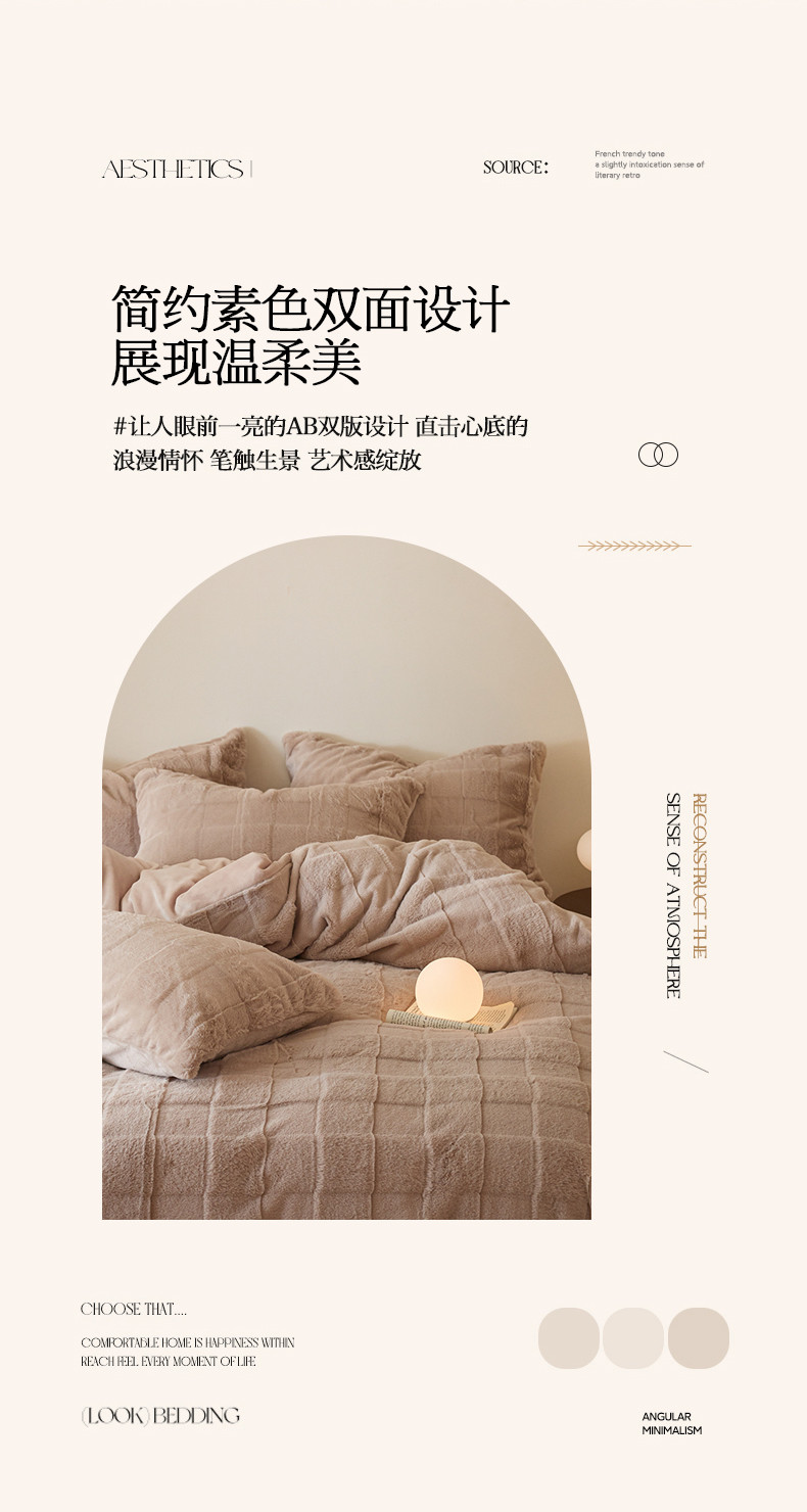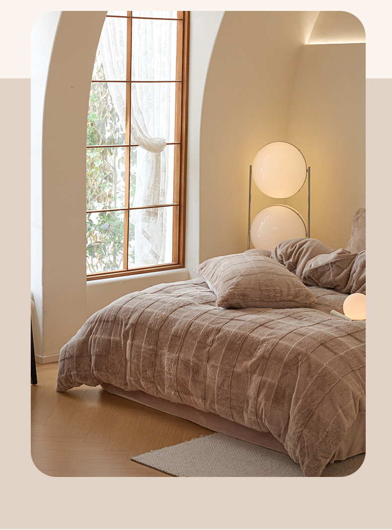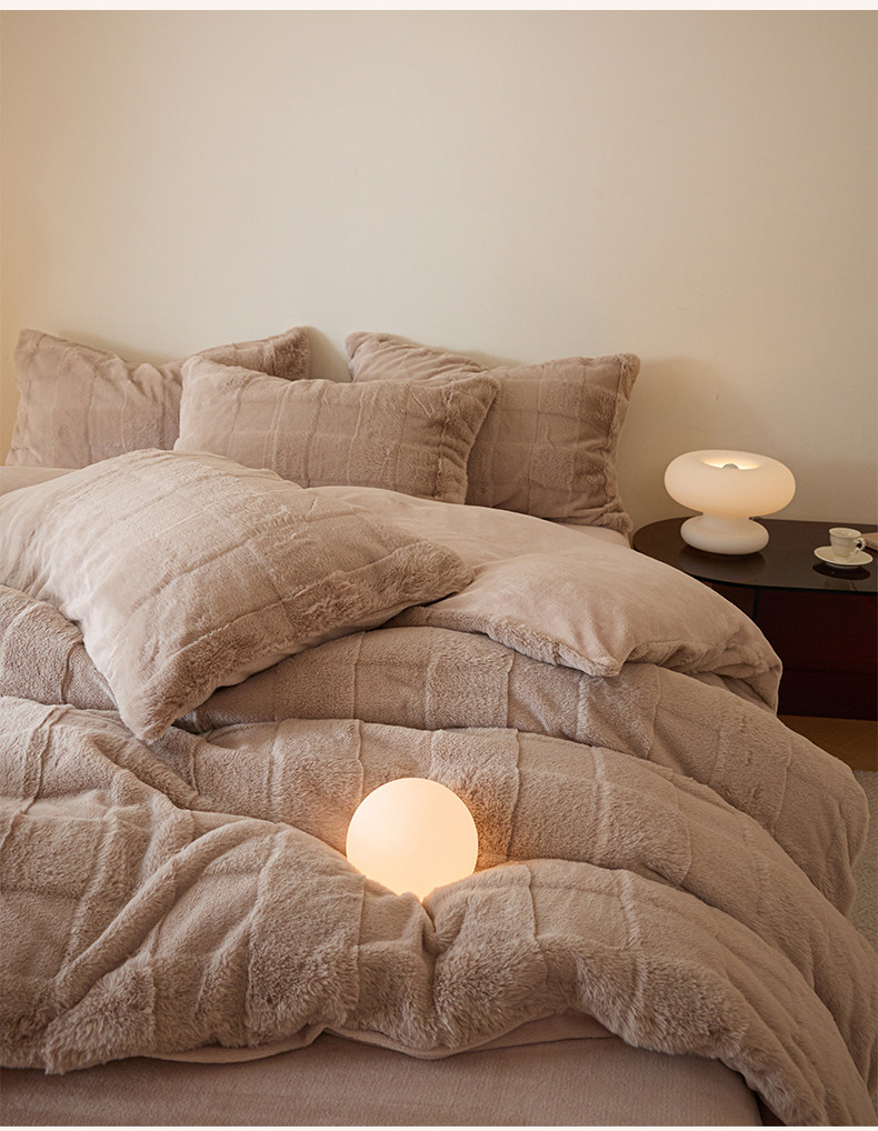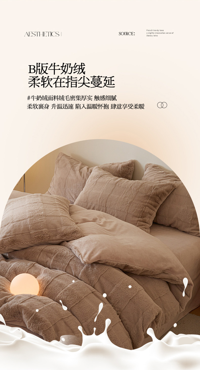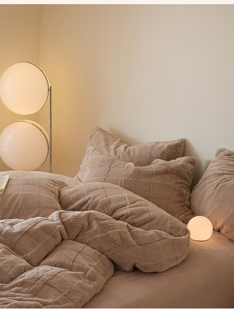 商品名称:沐棉 2023新款秋冬加厚保暖兔毛绒牛奶绒四件套 方格-咖
