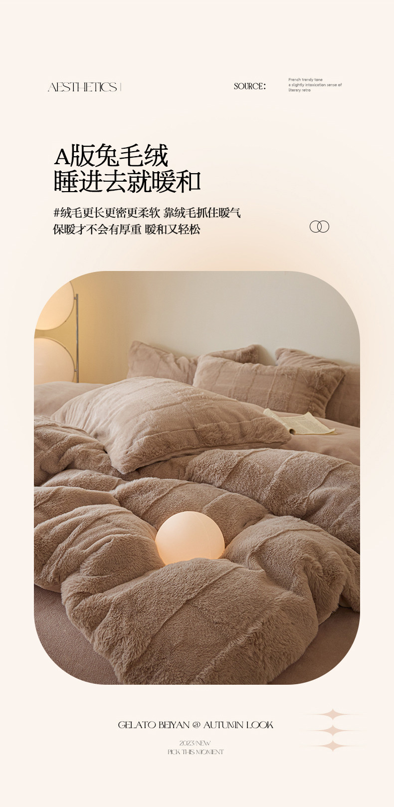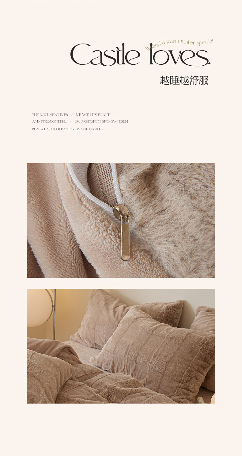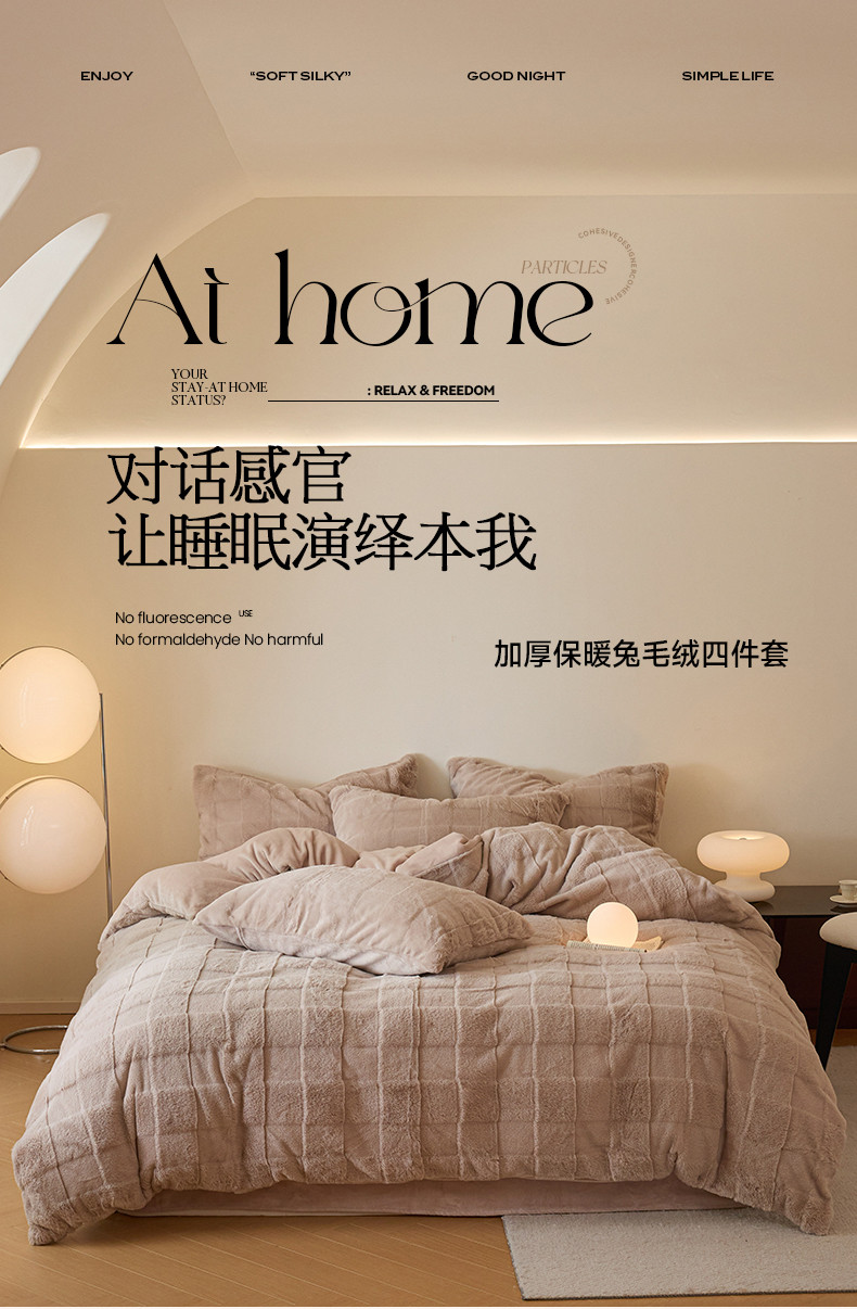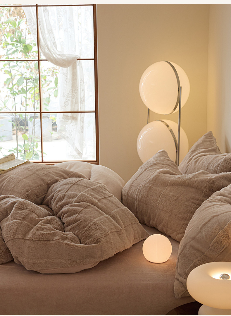 商品名称:沐棉 2023新款秋冬加厚保暖兔毛绒牛奶绒四件套 方格-咖