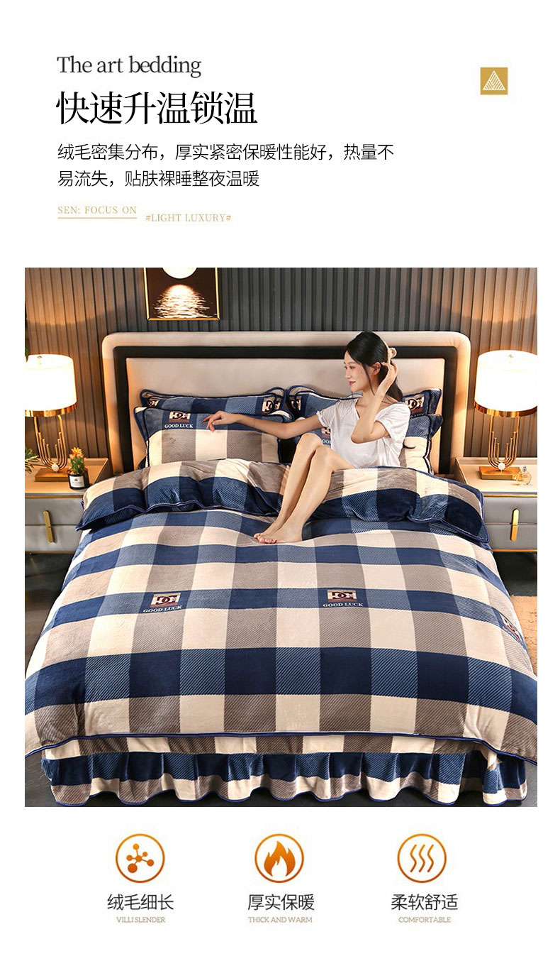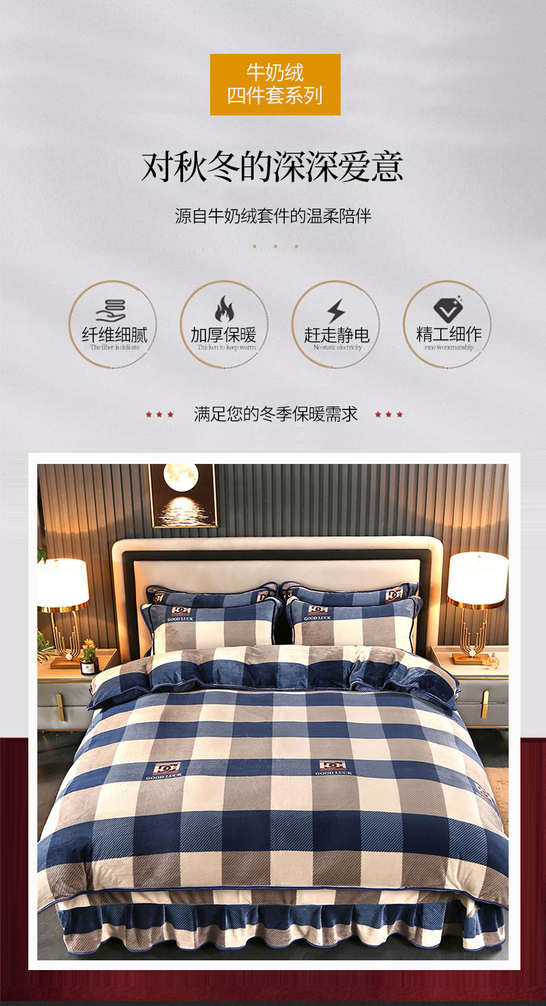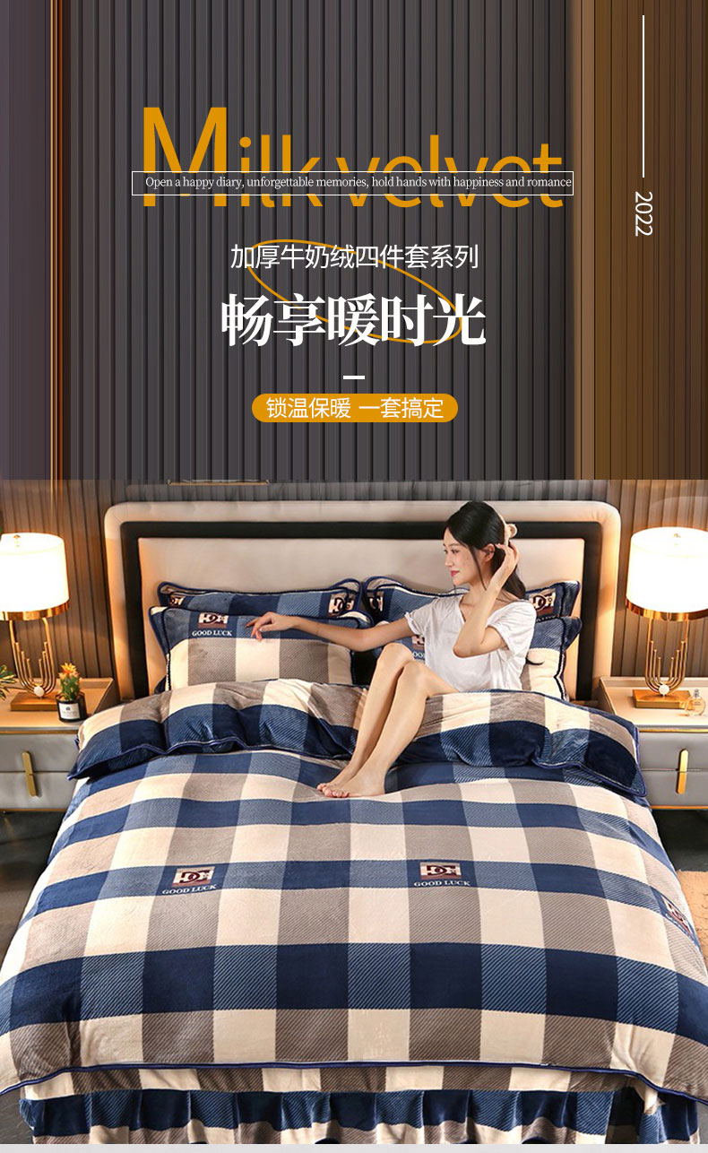 当前位置: 91家纺网 > 商品网购 > 床品套件 > 四件套 > 牛奶绒四件套 > 富之航 2023新款直播爆款8.5斤牛奶绒四件套加厚高克重法莱绒蓝大格