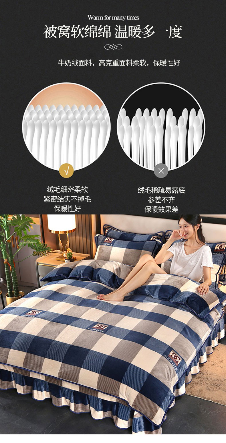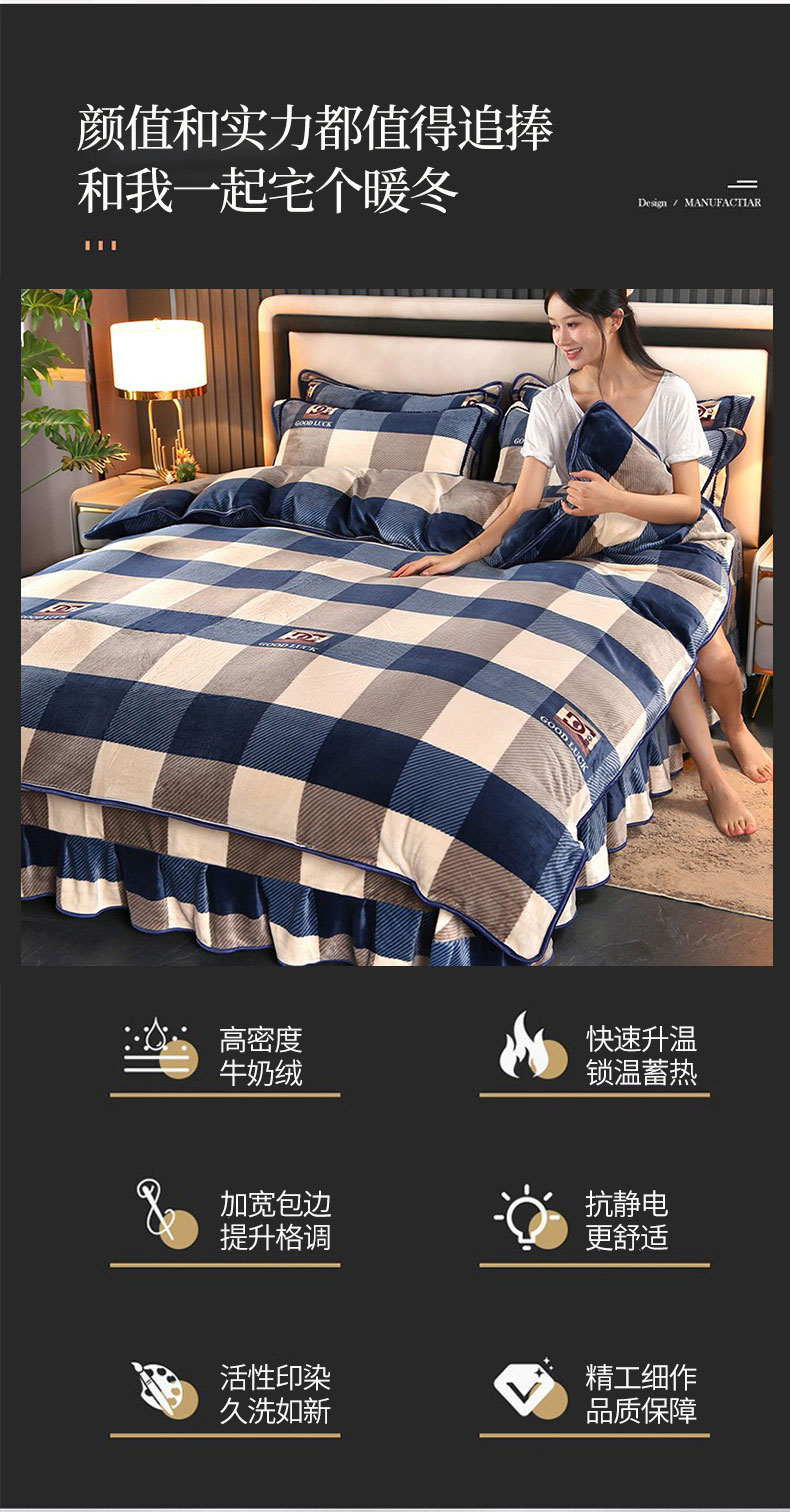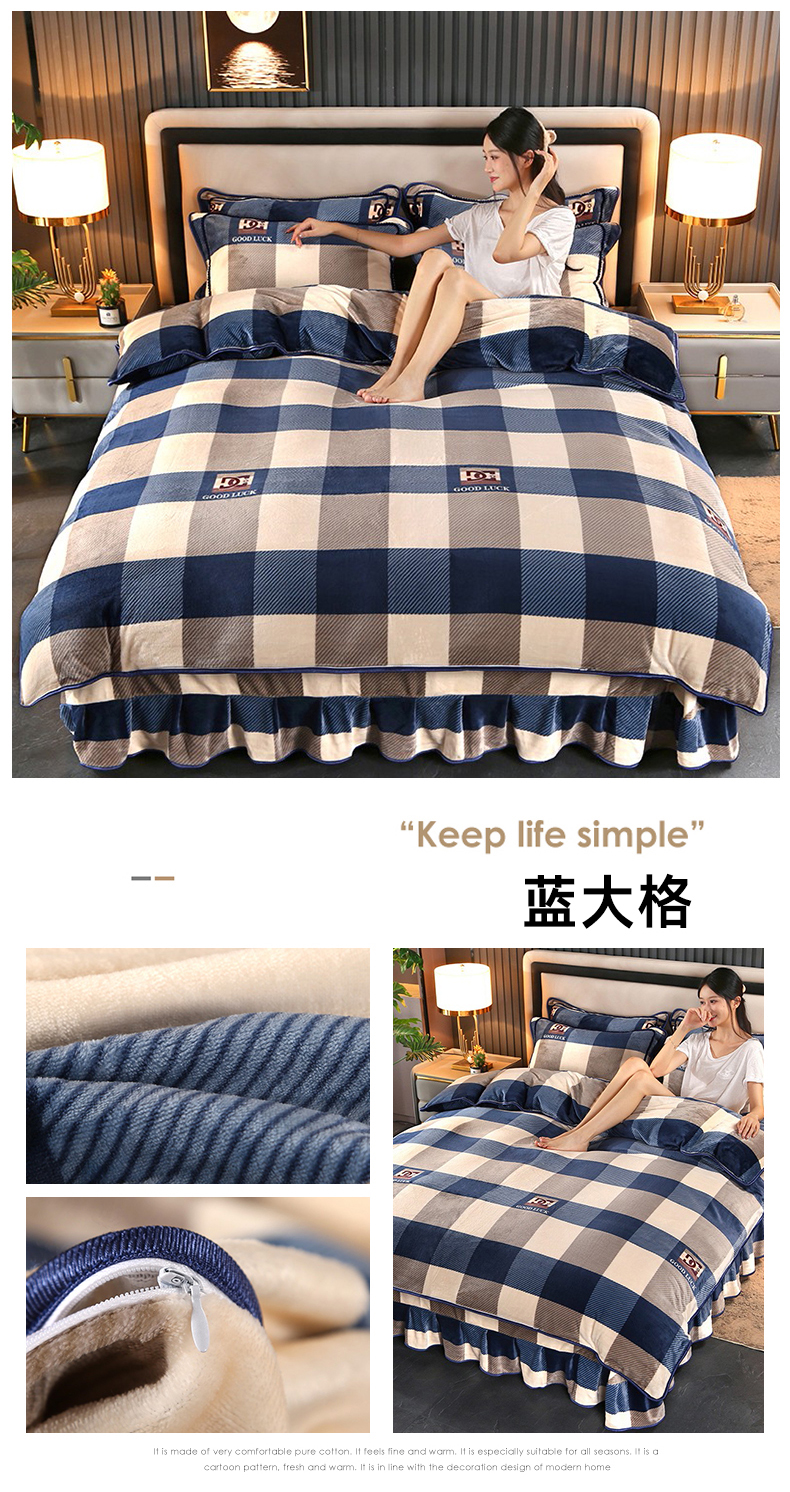 当前位置: 91家纺网 > 商品网购 > 床品套件 > 四件套 > 牛奶绒四件套 > 富之航 2023新款直播爆款8.5斤牛奶绒四件套加厚高克重法莱绒蓝大格