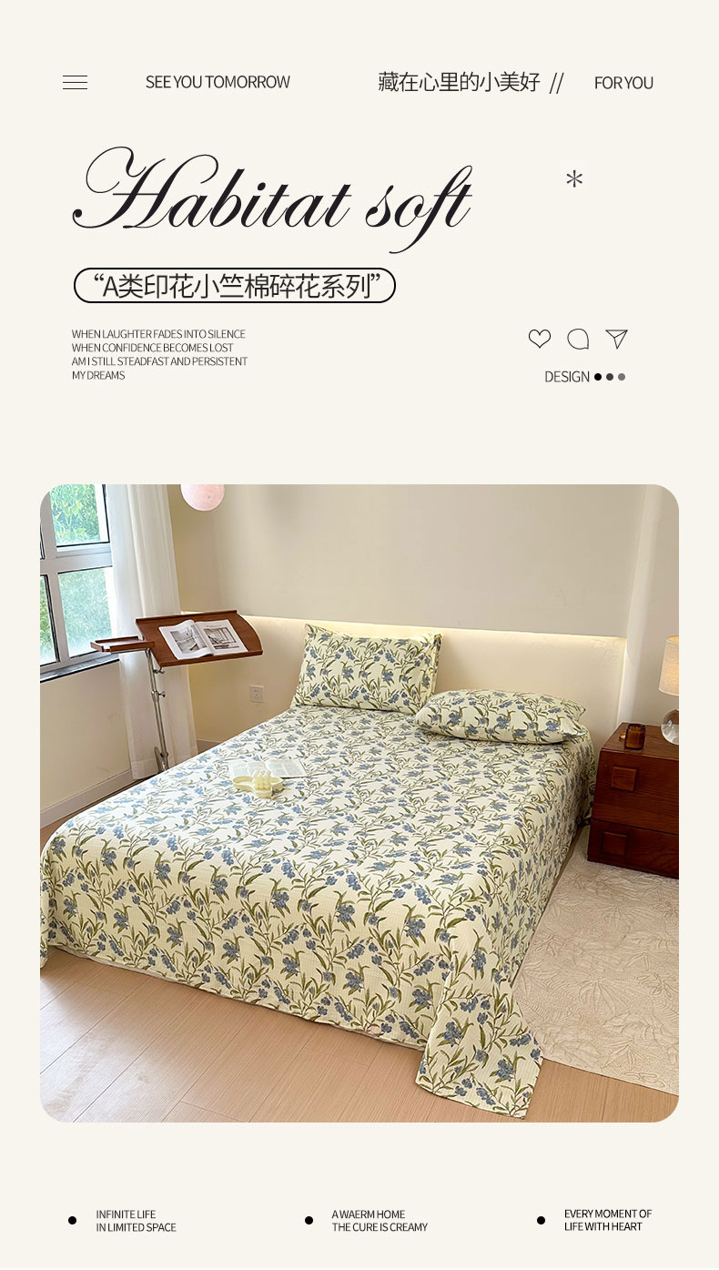 • 91家纺网 家纺一手货源 找家纺 火星时代 2023新款A类有氧提花小竺棉床单水洗棉粗布床单三件套 木野