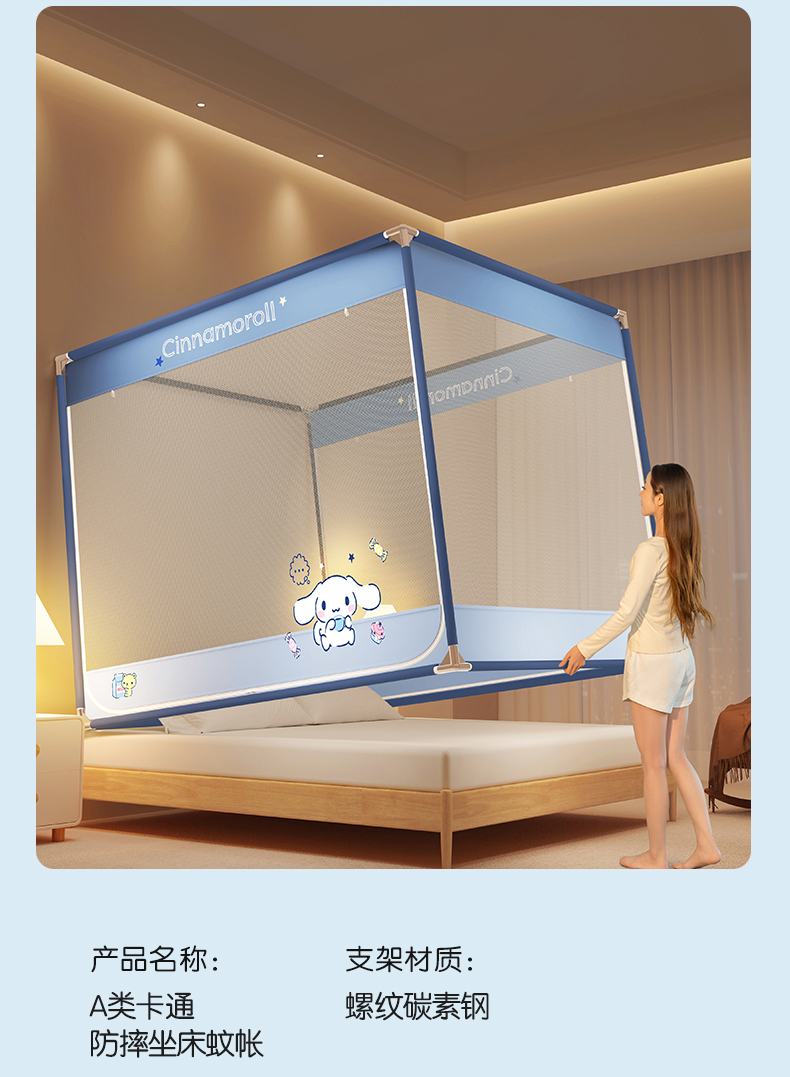 当前位置: 91家纺网 > 商品网购 > 床上用品 > 蚊帐 > 坐床式蚊帐 > 佳梦家纺 2024新款方顶坐床蚊帐系列 三丽鸥系列 糖果玉桂