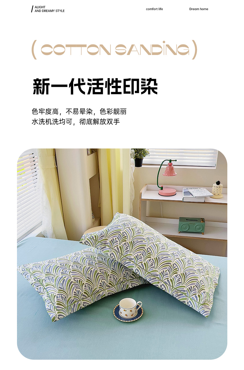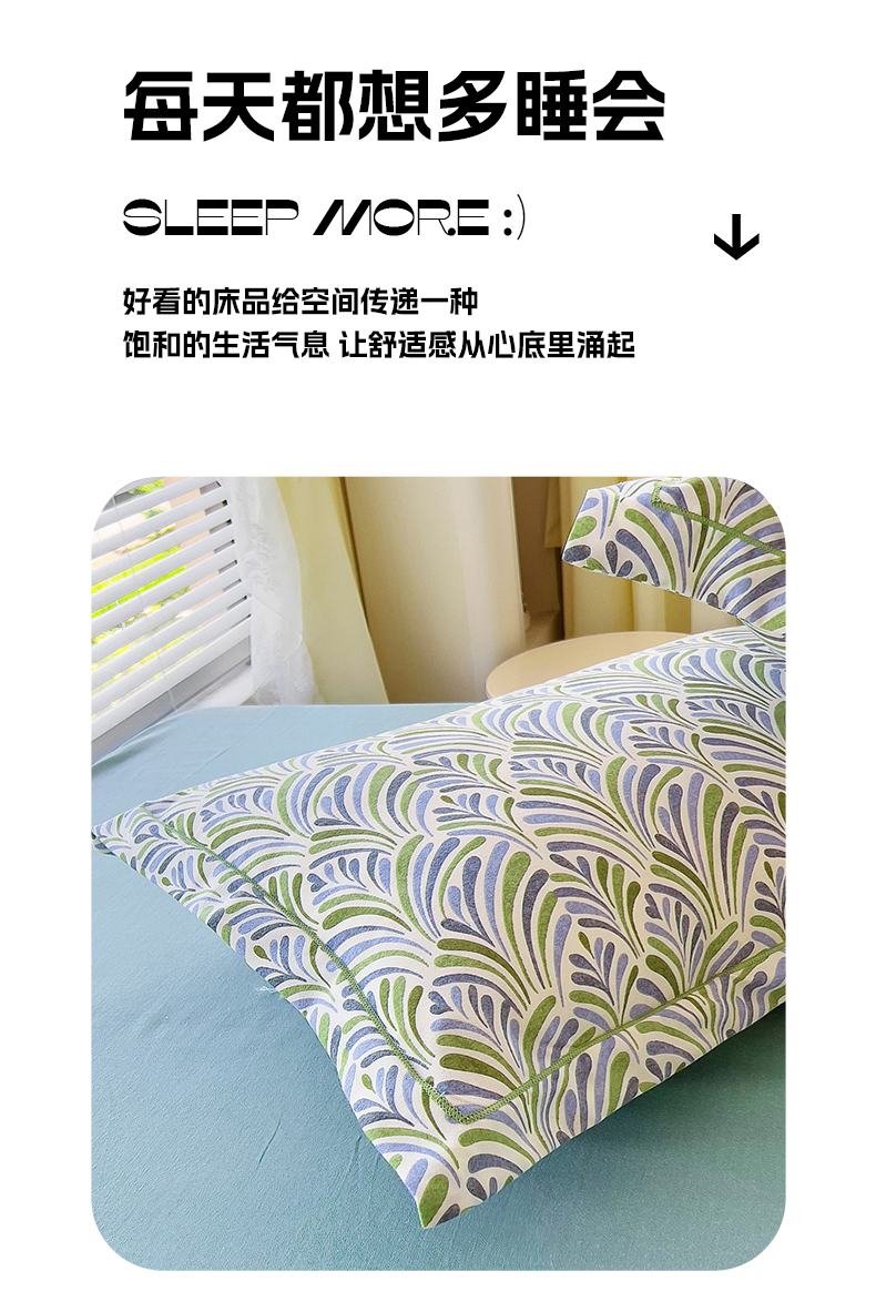 商品名称:优品阁 2024新款全棉磨毛四件套单品系列-单枕套 沐春-绿