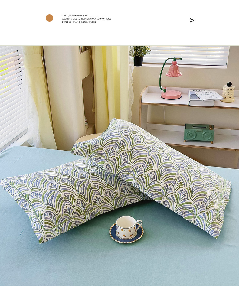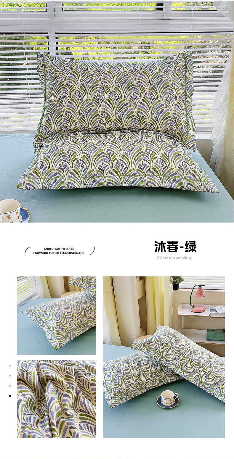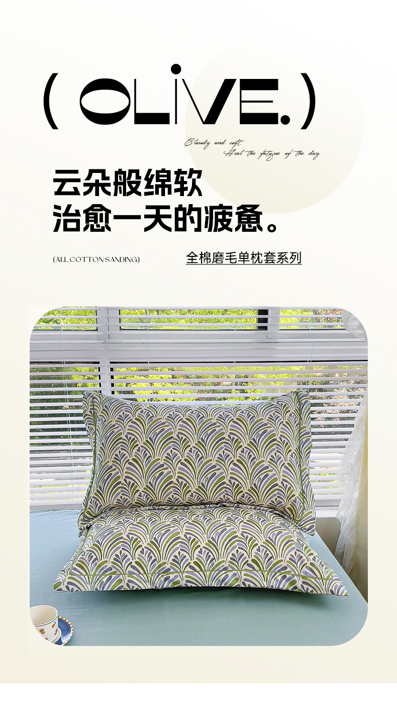 优品阁 2024新款全棉磨毛四件套单品系列-单枕套 沐春-绿
