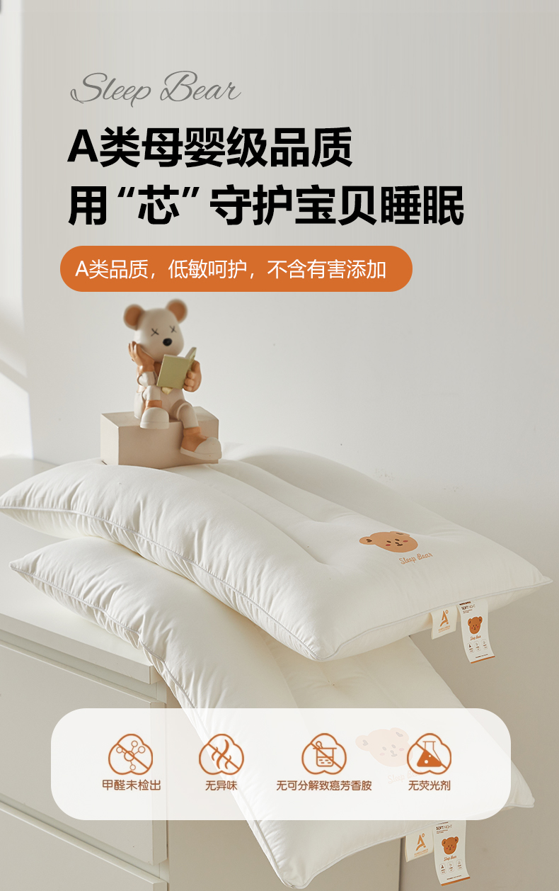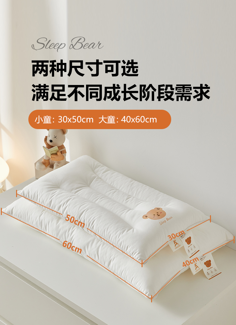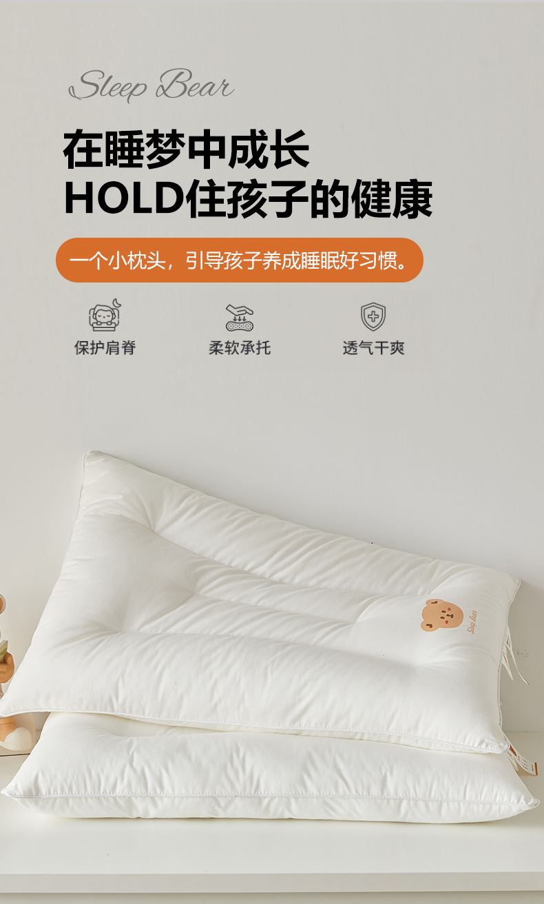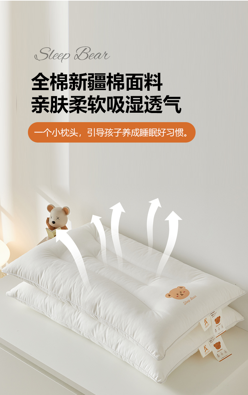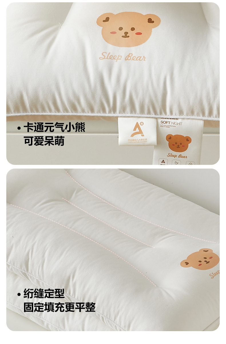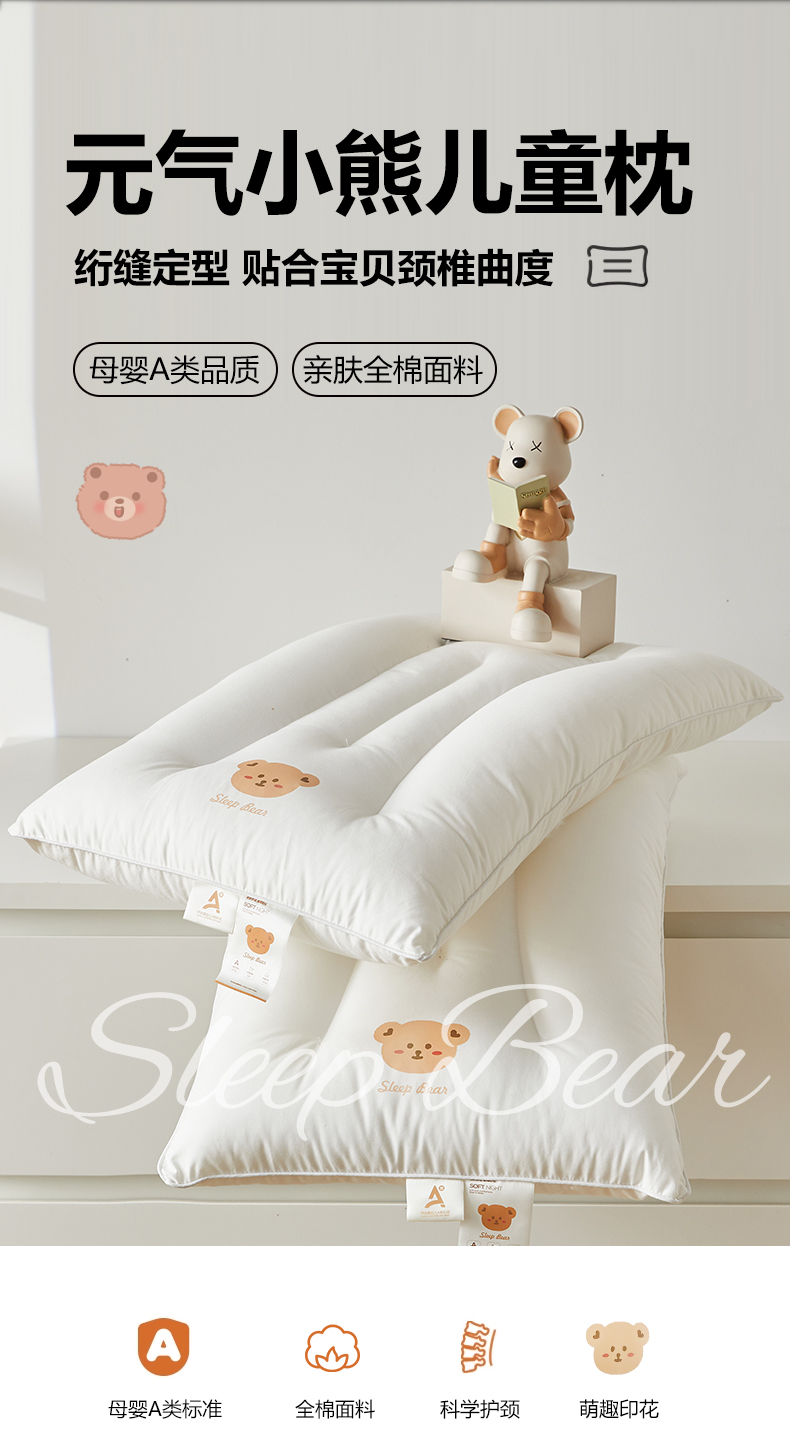 商品名称:(总)乐可 2024新款A类全棉元气小熊儿童枕学生枕头枕芯 风格一